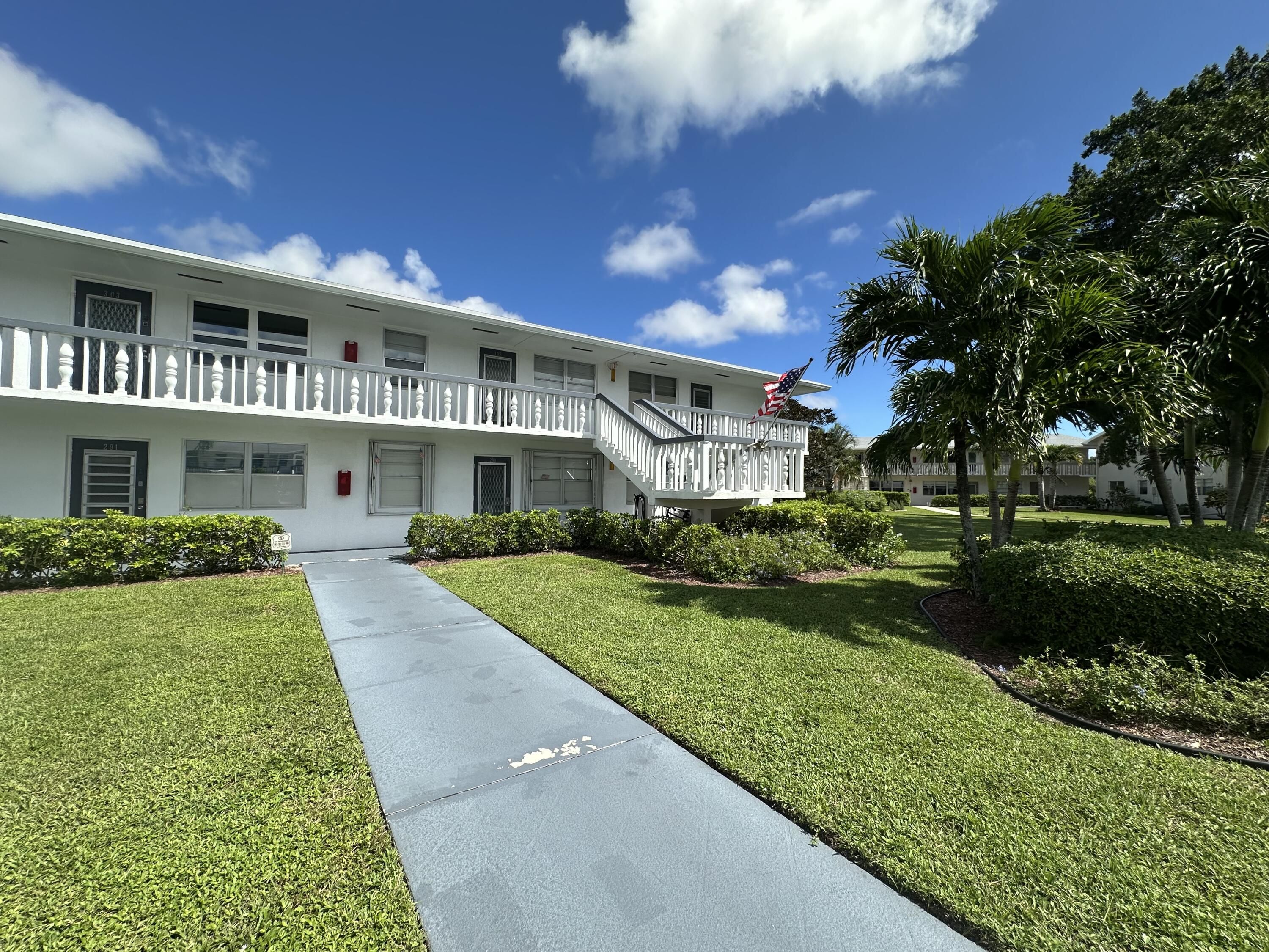 In the heart of DEERFIELD BEACH, this lovely GROUND FLR. CORNER 2 bedrm, 1.5 bath condo is PRICED TO SELL! Unit is very bright & located in the center of the community featuring lg tile flrs in liv areas & carpet in bedrms, updated shower stall w/glass doors in primary bath, freshly painted & A/C 2022. The enclosed patio has a storage closet & overlooks a quiet garden view. Building has a NEW ROOF! This active adult community is gated, 24/7 security, free bus service, lavish clubhouse w/ a 1500 seat theater, state of the art gym, tennis, indoor/outdoor pools, pickleball, putting green, classes of every type, clubs, free movies, shuffleboard, billiards, library & more! Close to shopping, great restaurants, hwys & beach! Easy to show! Don't miss this great opportunity! ASSOC. CLAIMS 55+