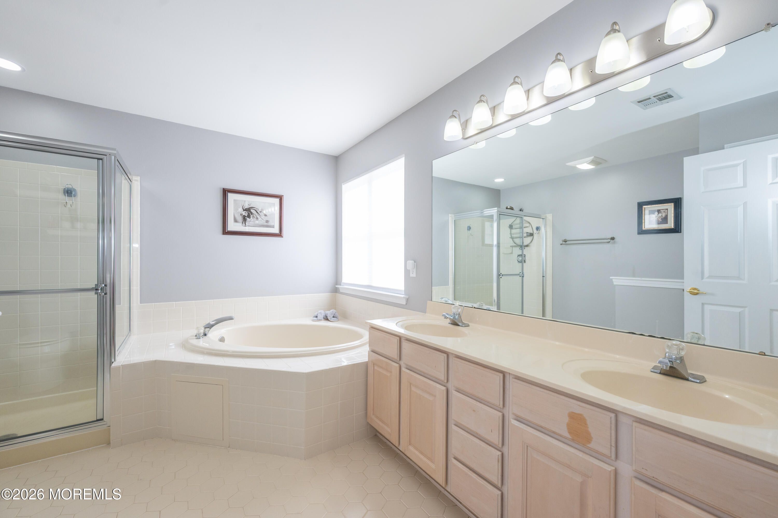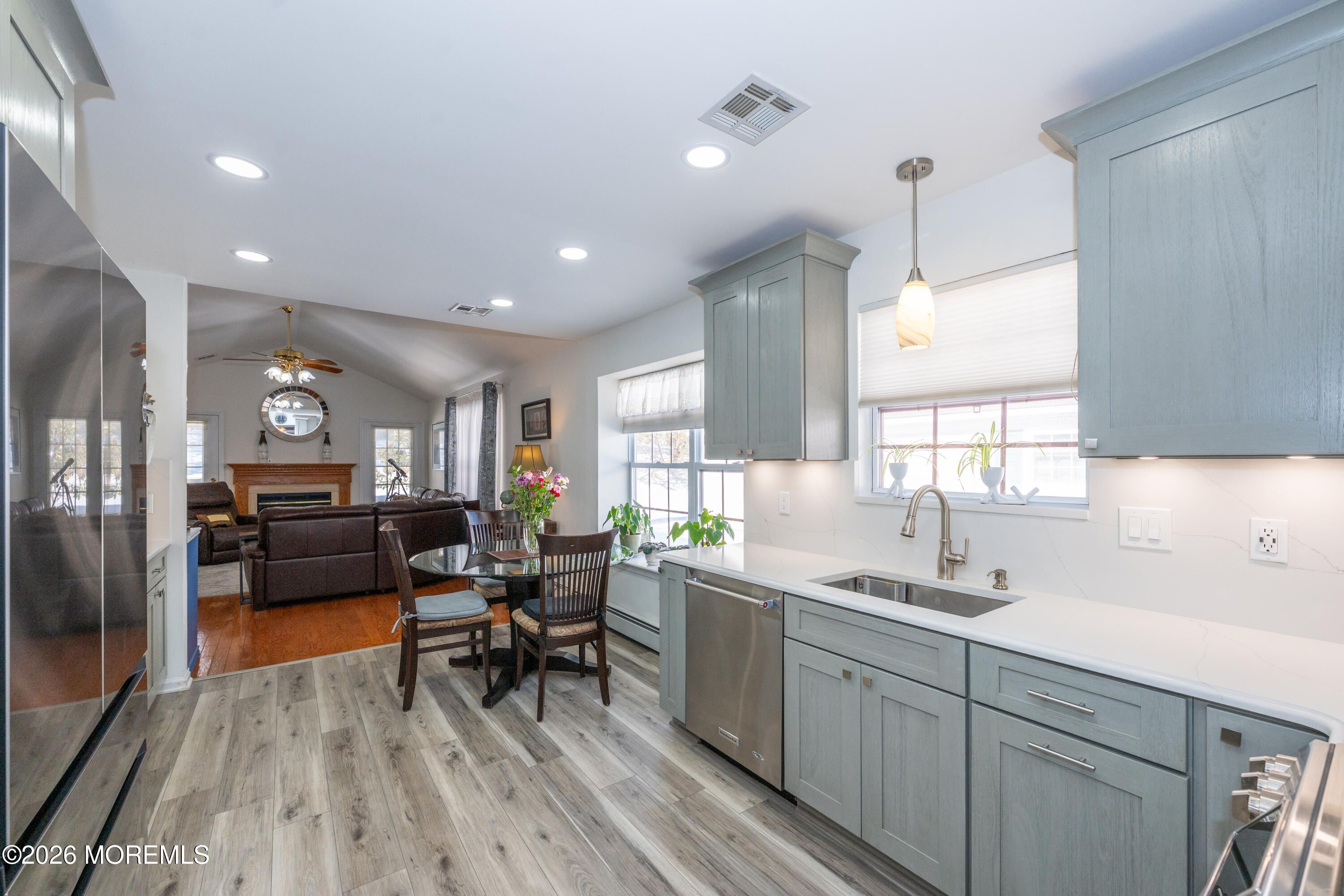 Beautiful 2-bedroom, 2-bath home in the desirable 55+ adult community of Lake Ridge in Toms River, NJ. This 1,814 sq. ft. residence features hardwood flooring, vaulted ceilings, ceiling fans, and a fireplace, creating a bright and open living space. The newly updated kitchen with a dining/eating area opens to the family room with direct access to a private patio. The primary suite offers his-and-hers walk-in closets and a double-sink vanity in the en-suite bathroom.This home includes a 7-year-old roof, furnace, and 5 year old AC, and offers access to indoor and outdoor pools, tennis and pickleball courts, a fitness/exercise area, and a clubhouse. A perfect blend of comfort, convenience, and resort-style living in a vibrant adult community.