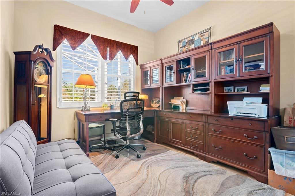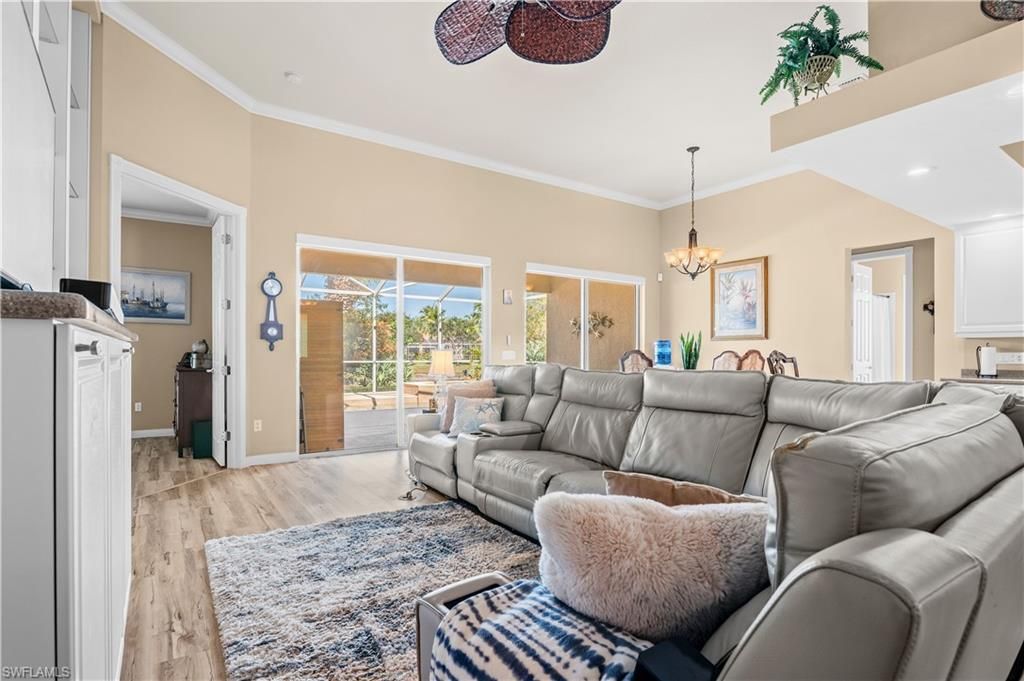 Rarely available Carlyle model situated on a premium oversized lakefront corner lot with additional parking and excellent privacy on a quiet cul-de-sac. This spacious 4-bedroom, 3-bath home features a large front porch that gives the property warm, inviting curb appeal and enhances the charm of this highly desirable floor plan. Updates include newer HVAC (2017), new hot water heater, Kinetico whole-home water system, new pool heater, an energy-efficient variable-speed pool pump, plantation shutters, electric blinds on the sliders, a screened front entry, an infrared sauna, Corian countertops, newer appliances (all updated except the stove), and updated flooring in select areas of the home. The flexible Carlyle layout provides both formal living and dining spaces, a spacious family room, and excellent bedroom separation ideal for families or guests. The screened lanai features a heated pool and hot tub overlooking peaceful long-lake views and an oversized yard that is rarely available in the community. VillageWalk of Bonita Springs offers resort-style amenities including a Town Center, restaurant/market, fitness center, community pool, lap pool, tennis, pickleball, bocce, basketball, car wash, gas pump, miles of walking paths, and low HOA fees with full lawn maintenance included. Plus, a brand-new Town Center is coming close by, bringing future dining, shopping, and everyday conveniences just minutes from your door. Homes with this combination—Carlyle model, oversized lakefront lot, pool and hot tub, extra parking, and cul-de-sac location—are rarely available and highly desirable.