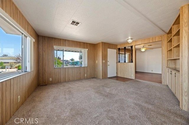 Calling all investors or buyers who love a remodel opportunity! Back on the Market. Buyers loss is your gain. The big-ticket items that have been addressed are roof in 2015, water heater in 2023 and plumbing in 2008. Dates are appx. Buyer should do their own due diligence. This home located in the desirable 55+ Spring Knolls community and offers a solid layout with vintage charm throughout. If you appreciate classic 1970s character, this home is a time capsule with endless potential. Inside, you’ll find an open floor plan filled with natural light, two generously sized bedrooms, including a primary suite, and flexible living spaces that can be used as a formal dining area, office, or additional seating area. Original wood paneling, mirrored closet doors, and retro finishes give the home its authentic style. The bathroom features a vintage soaking tub, large vanity with dual sinks, and abundant storage. The kitchen includes original cabinetry and a classic built-in oven, perfect for those who appreciate retro details or are ready to update to modern finishes. Enjoy additional space in the enclosed Arizona room, ideal for a hobby room, storage, or relaxing retreat. Outside, the low-maintenance gravel yard offers privacy and easy upkeep. A covered patio, handicap-accessible ramp, and exterior storage areas add to the home’s functionality. This home has been lovingly cared for and is ready for your updates and vision. A great opportunity to customize and create the perfect retirement home in an established, sought-after community.