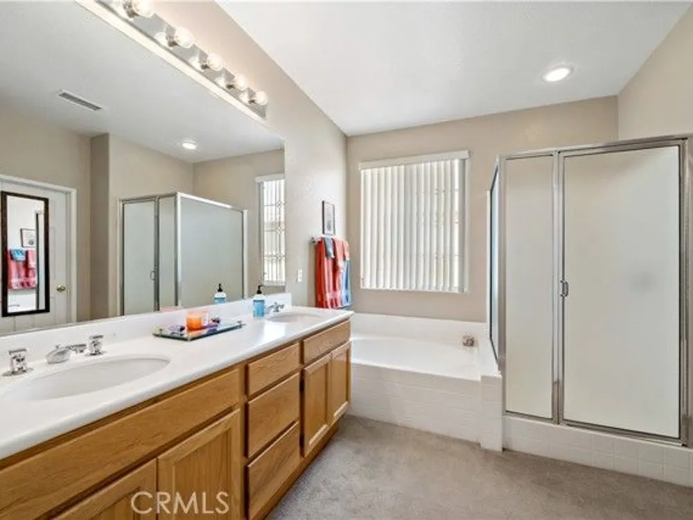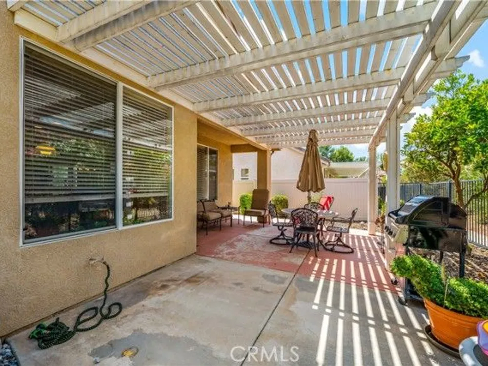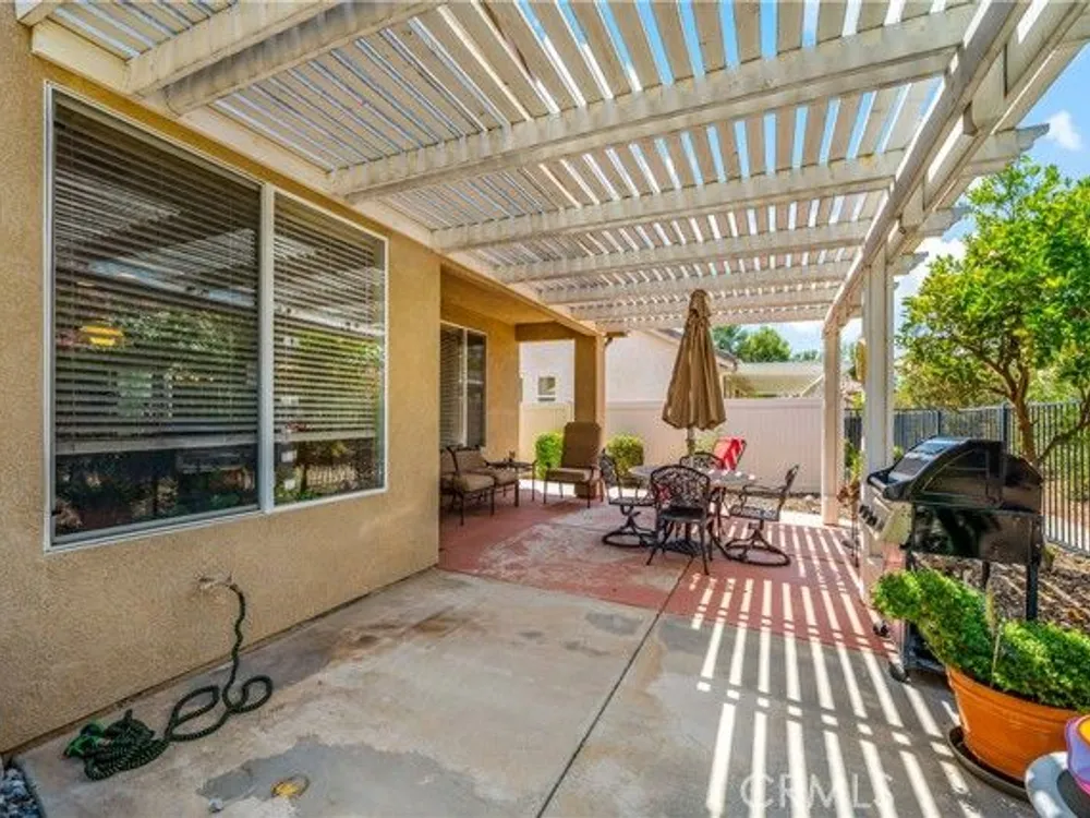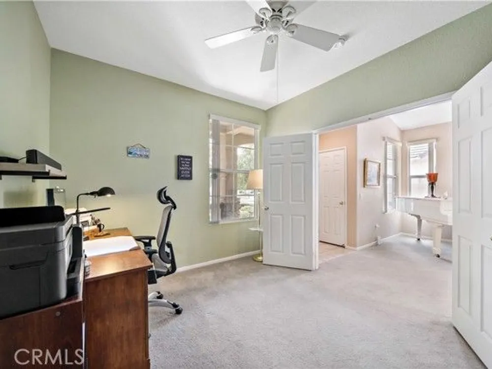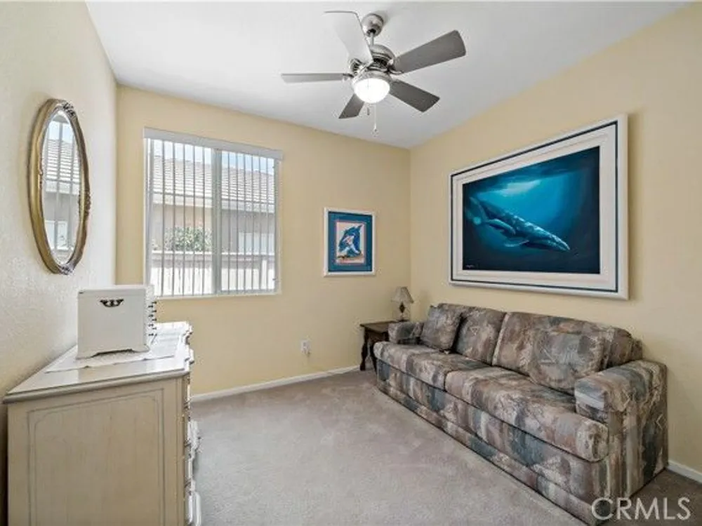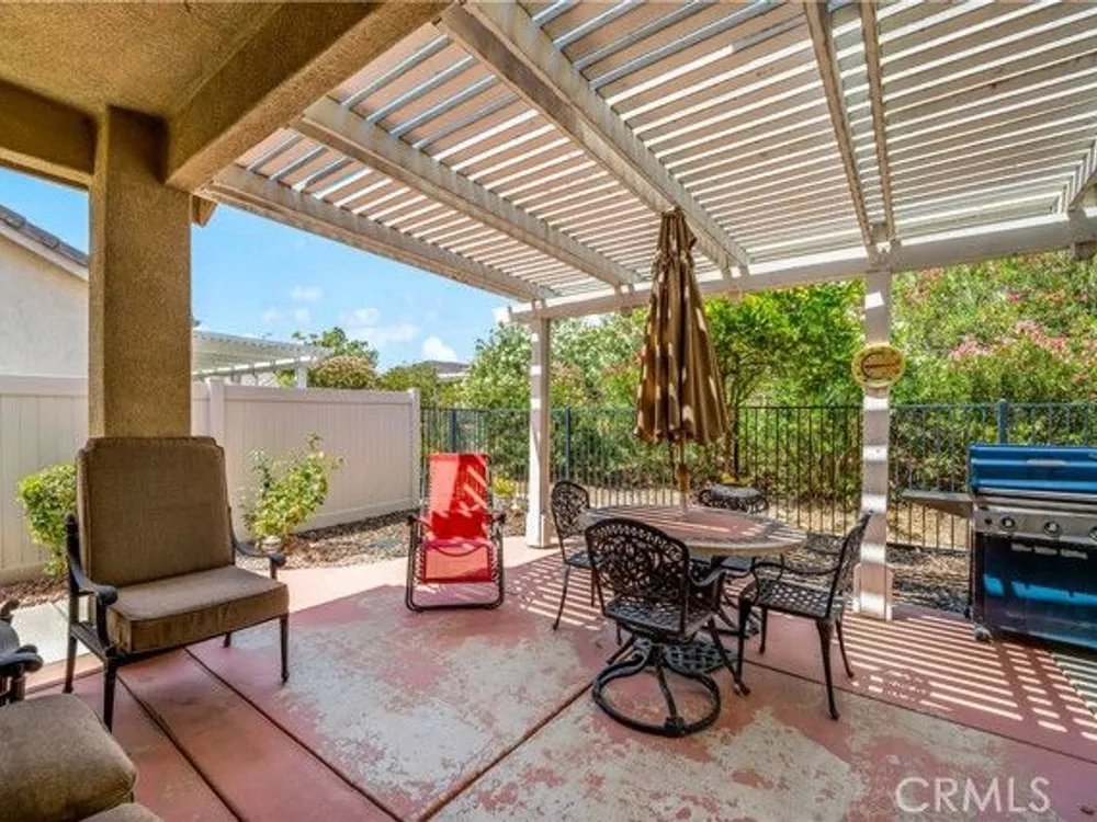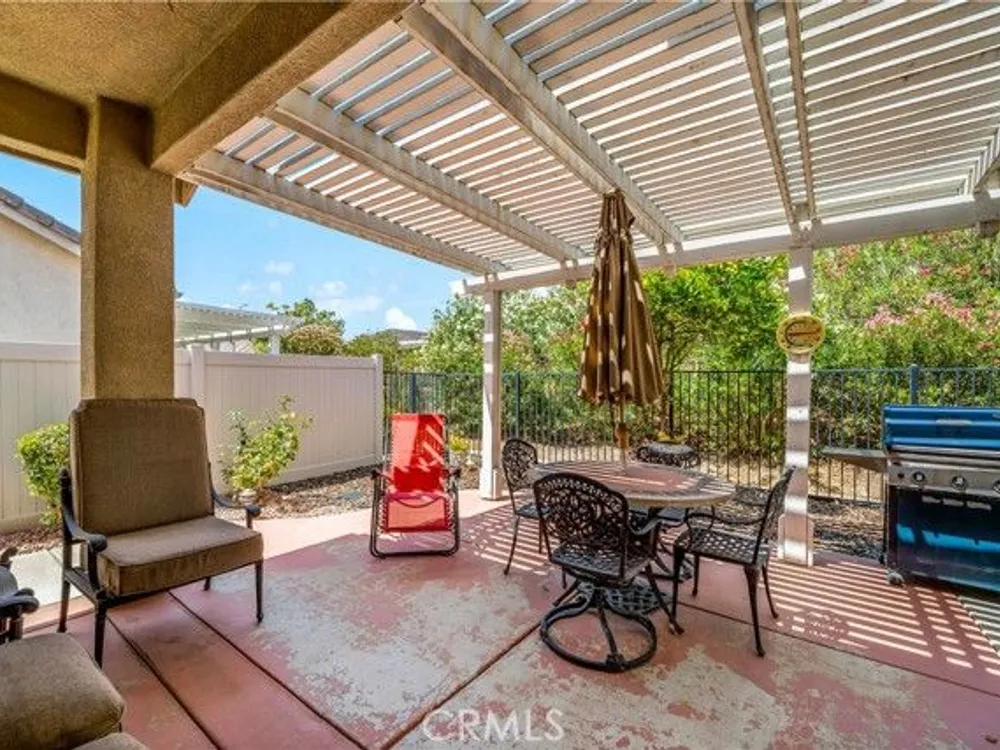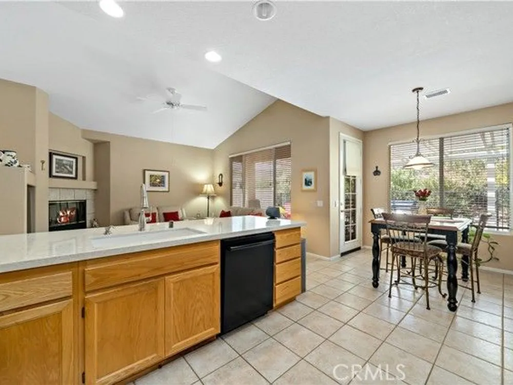 Charming Single-Story Home in the Sought-After 55+ Oasis Community. Welcome to this beautifully maintained 2-bedroom, 2-bathroom, 1,649 sq ft single-story home with an additional office or den that can easily serve as a 3rd bedroom. Located in the highly desirable Oasis community in Menifee, this home offers the perfect blend of comfort, style, and low-maintenance living. Step into a bright and open layout featuring upgraded quartz countertops in the kitchen, newer appliances, and a convenient breakfast bar that flows into the inviting family room. The informal dining area is perfect for everyday meals or casual entertaining. The separate living room also can accommodate a formal dining area or be used as an additional living space or great room. The spacious family room boasts vaulted ceilings, a cozy fireplace, and a French door leading to a serene backyard with a covered patio—ideal for relaxing or hosting guests in a peaceful, easy-care landscaped setting. The generous sized primary suite includes a large walk-in closet and a luxurious en-suite bathroom with dual sinks, a separate soaking tub, and a walk-in shower. Enjoy all the benefits of resort-style living in The Oasis, including a clubhouse, pool, spa, pickleball courts, and a full calendar of social events and activities. Whether you seek tranquility or a vibrant community lifestyle, this home offers it all.
