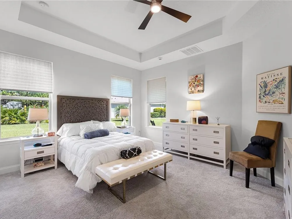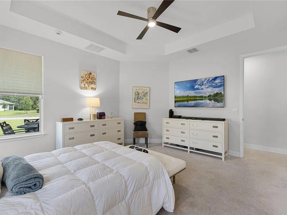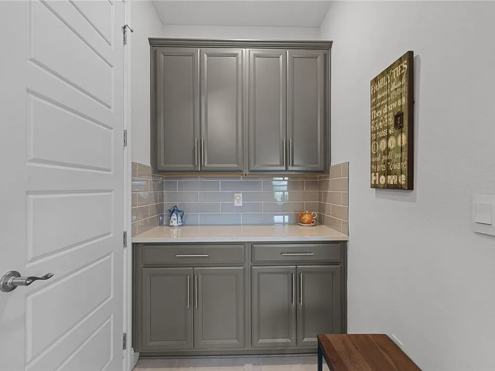 - Built-in Features, Ceiling Fan(s), Eat-in Kitchen, High Ceilings, Living/Dining Room, Open Floorplan, Main Level Primary, Smart Home, Solid-Wood Cabinets, Split Bedrooms, Thermostat, Tray Ceiling(s), Walk-In Closet(s), Window Treatments
