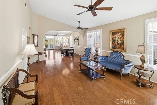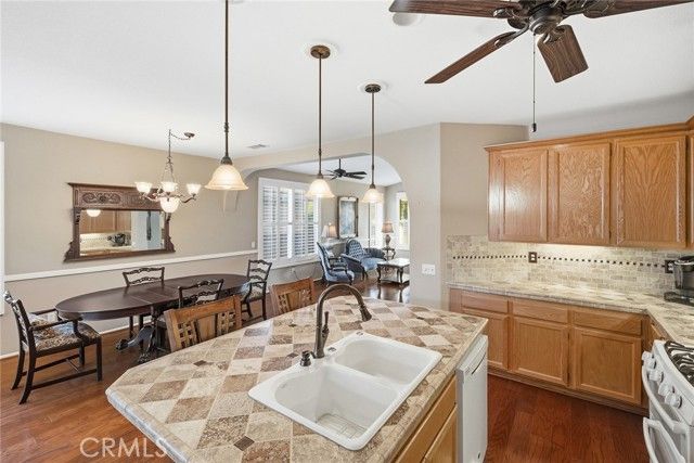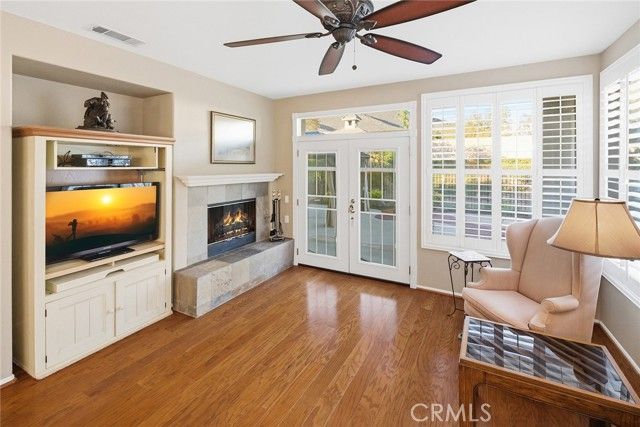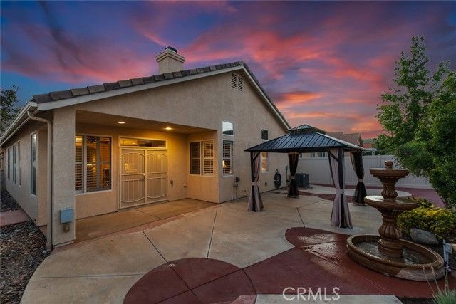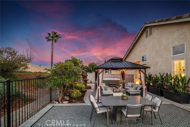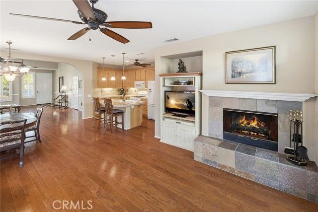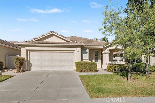 Embrace a life of comfort, connection, and relaxation in this beautifully maintained home located in The Oasis, one of Menifee’s most sought-after 55+ gated communities. Bright, open living spaces flow effortlessly for everyday enjoyment and easy entertaining, while the private backyard offers a peaceful retreat complete with 220-volt power ready for your spa—perfect for unwinding beneath the stars. This inviting home features thoughtful details throughout, including a cozy gas fireplace, central heating and air conditioning, and ceiling fans for year-round comfort. Plantation shutters, Bruce hardwood flooring, and custom transom and French doors add an elegant touch. The well-appointed kitchen includes custom countertops, under-cabinet lighting, a like-new dishwasher and double oven, and plenty of space to cook, dine, and gather. A tankless water heater ensures efficiency, and generous walk-in closets provide ample storage. Step outside to enjoy the newly enhanced backyard featuring an electrified pergola with mosquito netting and privacy curtains—ideal for relaxing afternoons or hosting friends. A gentle fountain adds a touch of tranquility, while new drip sprinklers and a fully fenced yard keep the outdoor space lush and low-maintenance. The two-car garage includes custom cabinets, offering convenience and organization for tools and hobbies. Both front and back security doors provide peace of mind. At The Oasis, neighbors become friends and every day feels like a getaway. The vibrant clubhouse offers a fitness center, library, hobby rooms, billiards, and a ballroom for community events. Outdoors, residents enjoy a sparkling pool and spa, barbecue area, tennis and pickleball courts, and beautifully landscaped walking paths. Enjoy a carefree lifestyle with front-yard care and common-area maintenance included—giving you more time to explore local golf courses, nearby wineries, and scenic mountain trails. Conveniently located close to shopping, dining, medical services, the Menifee fire station, and the community dog park, this home offers the best of Southern California’s relaxed and welcoming lifestyle.