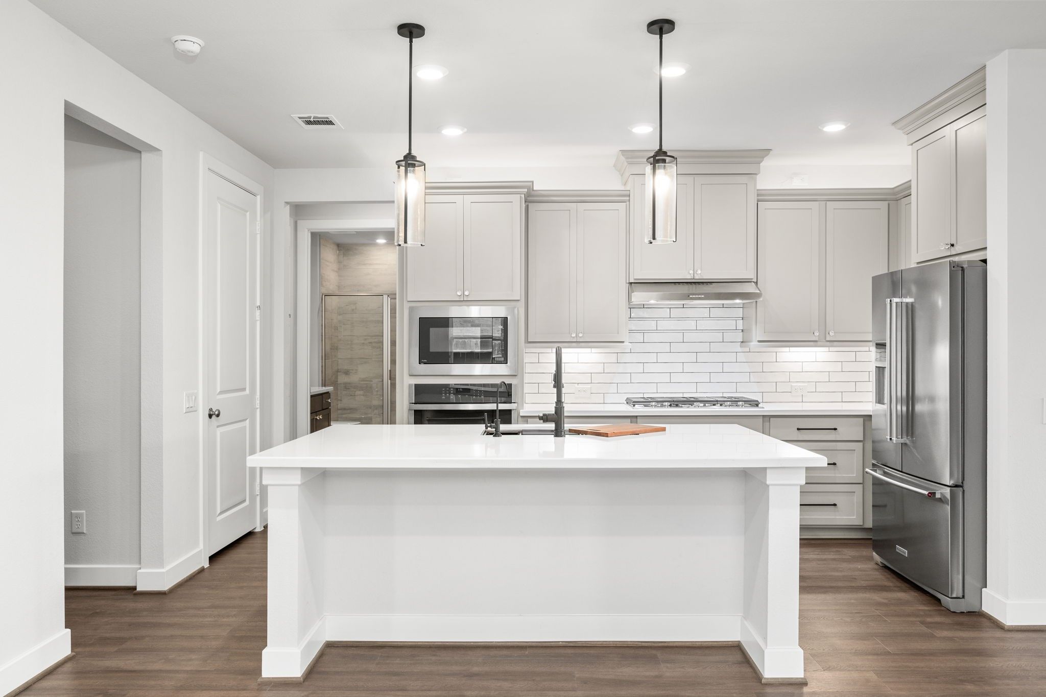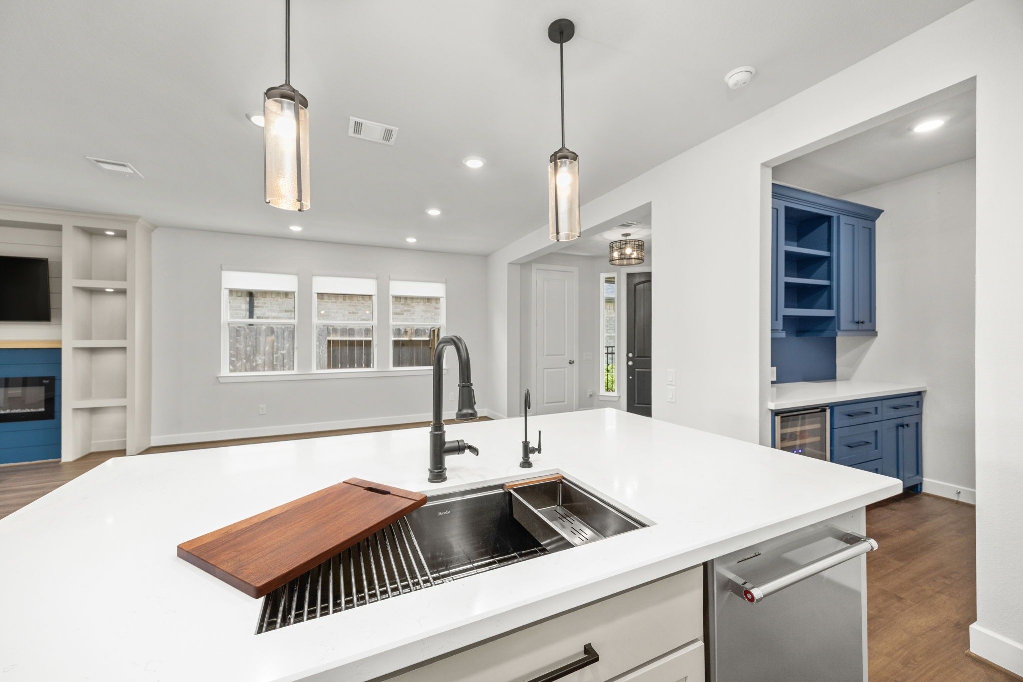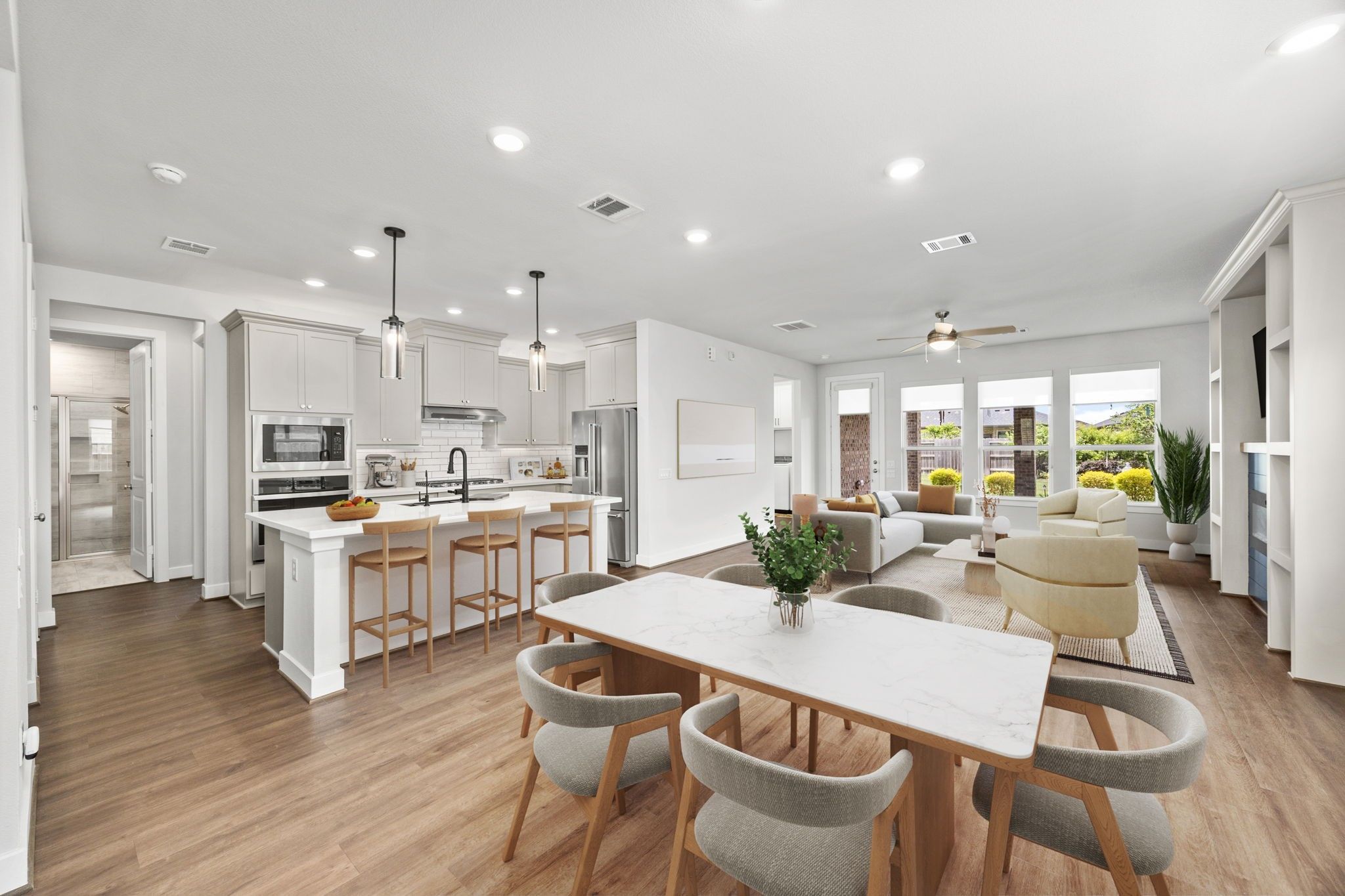 - Breakfast Bar, Butler Pantry, Dry Bar, Double Vanity, Entrance Foyer, High Ceilings, Kitchen Island, Kitchen/Family Room Combo, Pots & Pan Drawers, Pantry, Quartz Countertops, Self-closing Cabinet Doors, Self-closing Drawers, Makeup/Vanity Space, Walk-In Pantry, Window Treatments, Ceiling Fan(s), Kitchen/Dining Combo, Programmable Thermostat