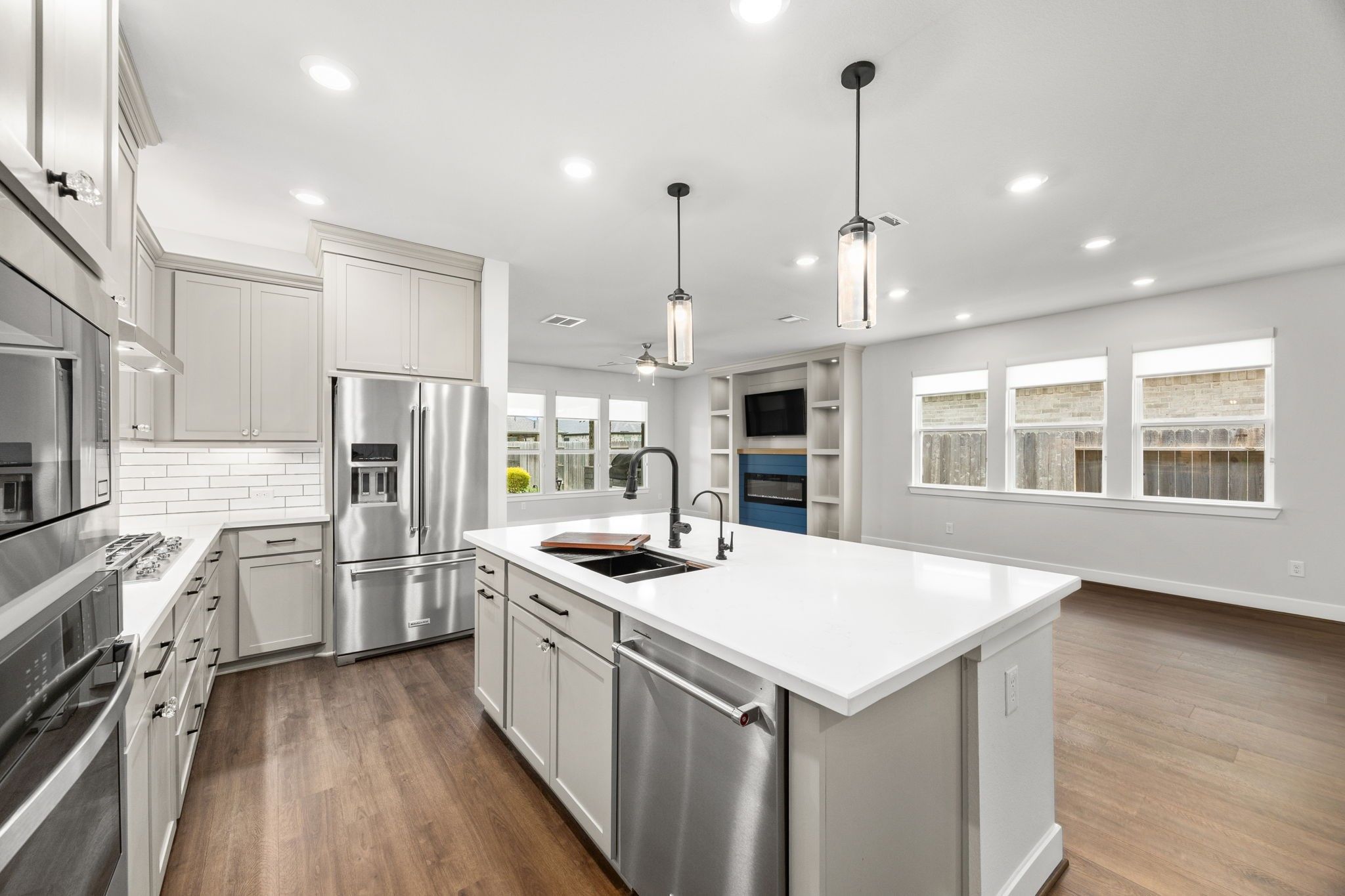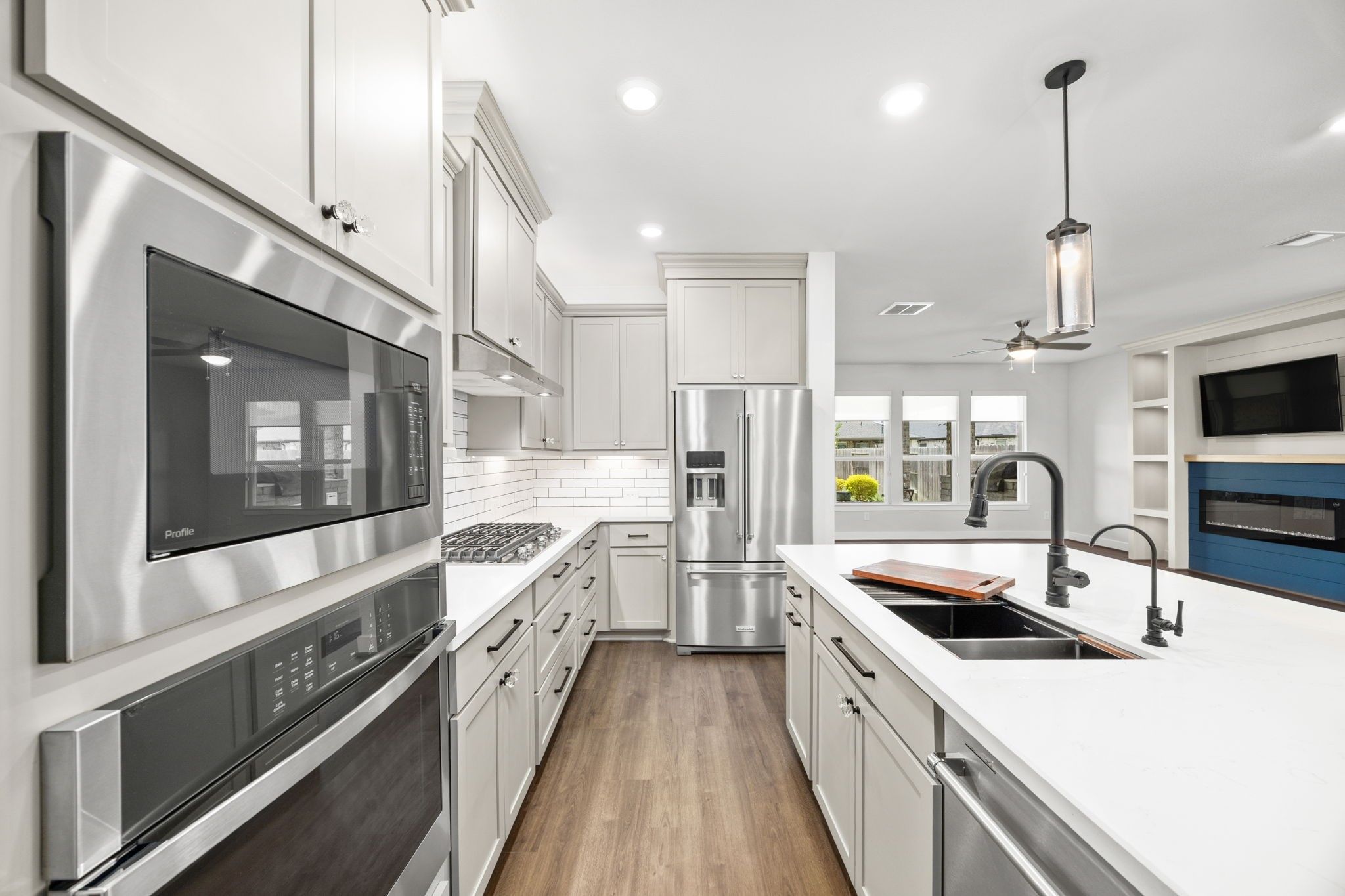 - Dishwasher, Disposal, Gas Oven, Gas Range, Microwave, ENERGY STAR Qualified Appliances, Tankless Water Heater, Wine Refrigerator