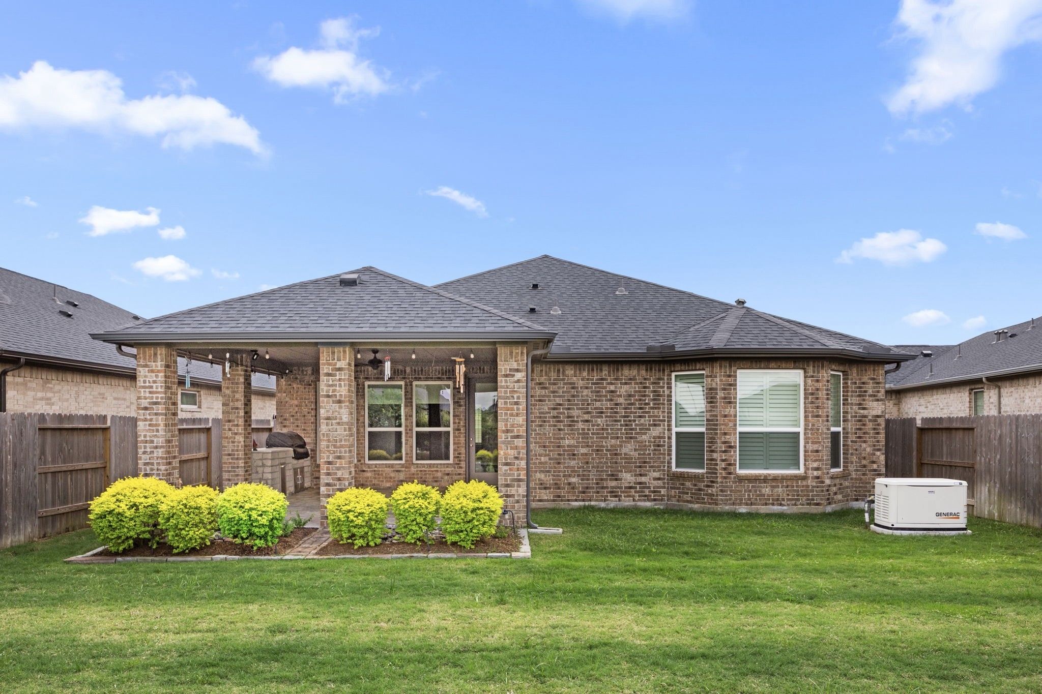 SO MANY UPGRADES! Custom features & premium builder upgrades throughout. An open floorplan providing generous living spaces & abundant natural light w/ luxury finishes throughout. A gourmet kitchen featuring quartz counters, high-end appliances, oversized island, pantry w/ custom spice rack, upgraded cabinetry & a custom designed wine bar/butler’s pantry. Large family room boasts a cozy fireplace & beautiful custom designed built-ins. Expansive primary suite w/ upgraded bay windows & plantation shutters. Private study/flex room brightened by large windows. A backyard customized with extended travertine patio, summer kitchen w/gas grill, lush landscape, garden fountains & ample yard space. Positioned on a QUIET block - no road noise. Meticulously maintained. Retire in style where every day feels like a vacation! Bonterra is a 55+ community w/ exciting amenities & luxuries. GENERATOR (Generac, gas), TANKLESS WATER HEATER, SURGE PROTECTOR & more. FEATURES & UPGRADES list in docs.