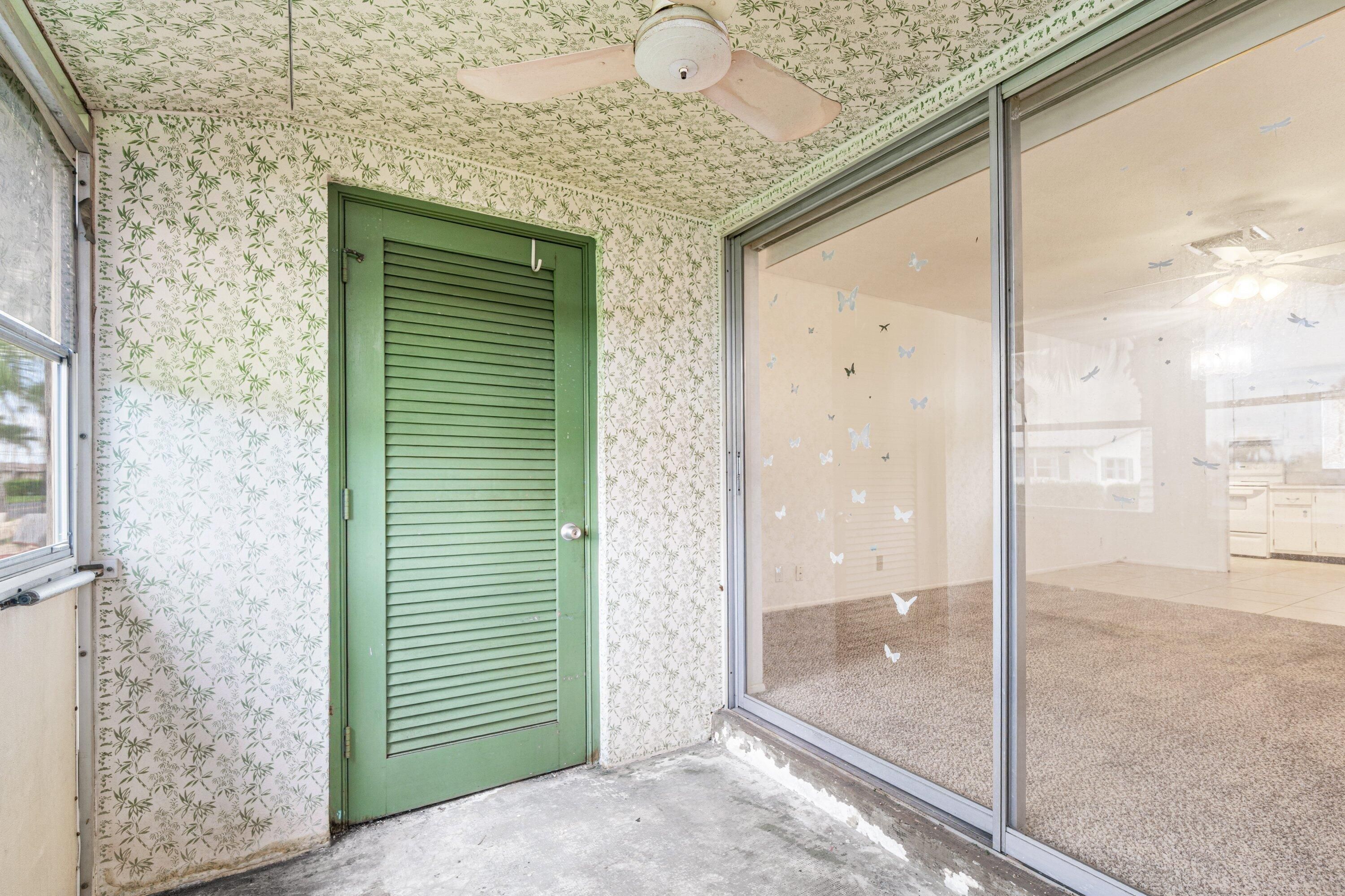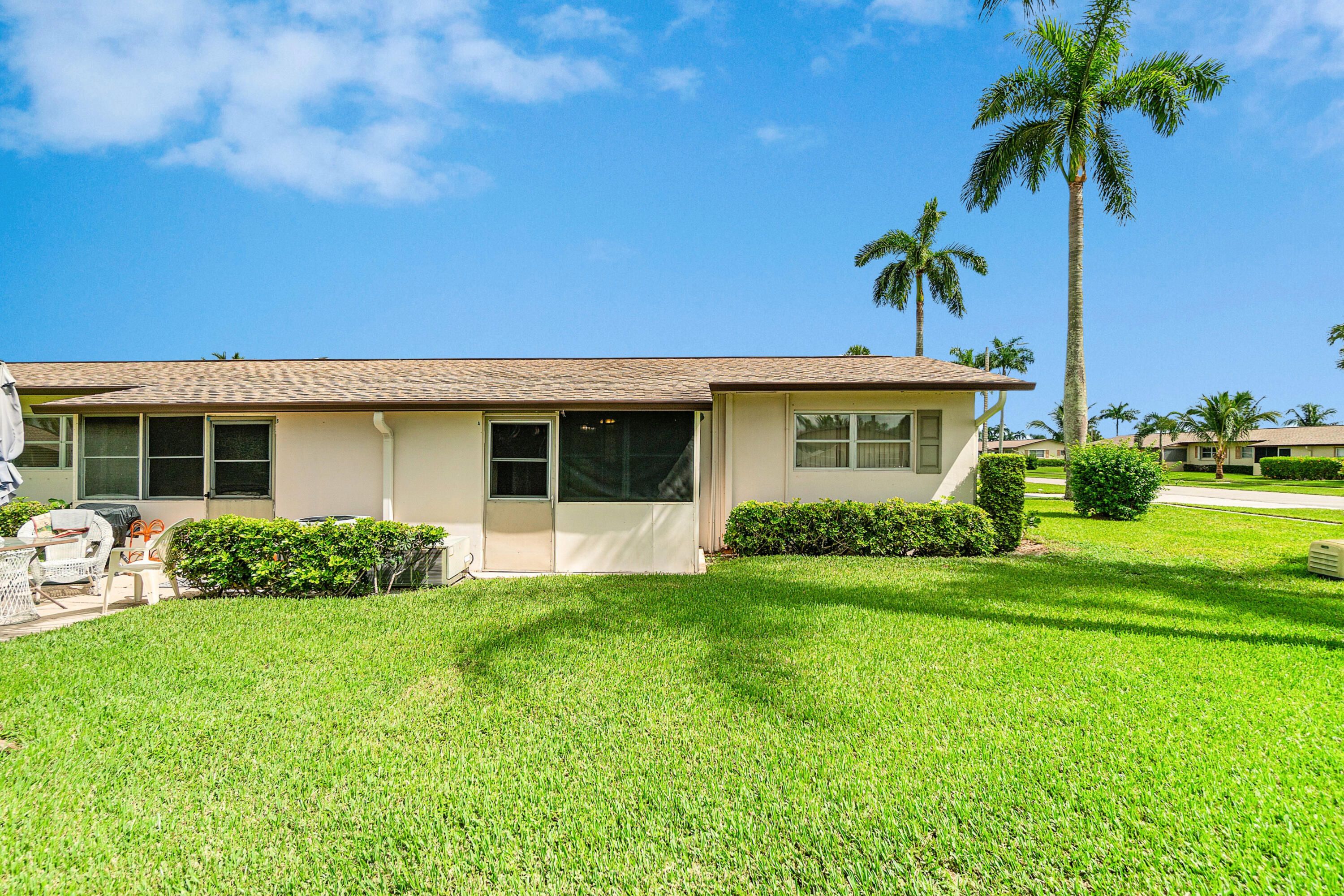 Rarely available end-unit for sale in Crosley at Cresthaven Villas! This 1-bedroom, 1-bathroom condo offers the ease of one-story living in one of the most sought-after 55+ communities. Loaded with potential, the layout includes an open living and dining area with sliding glass doors that lead out to a covered and enclosed patio that offers a large storage closet. The entryway, kitchen, and dining area feature beautiful, large-format tile. The bedroom is filled with natural light thanks to extra windows only found in end units. The updated bathroom features a step-in shower, and an additional feature includes a walk-in utility closet providing even more storage space. New electrical panel (2023), and water heater (2012) Crosley at Cresthaven Villas, located on the south side of Cresthaven Boulevard east of Jog Road and west of Haverhill Road, is a vibrant active adult community offering an array of amenities, including a saltwater pool, sauna, shuffleboard, bocce ball, fitness center, billiard room, wood shop, card room, library, auditorium, and more. Residents can also enjoy a variety of activities such as bingo, dances, live shows, and catered holiday events. Assigned parking and on-site laundry facilities add convenience, while the monthly condo dues cover basic cable, water, exterior building insurance, on-site management, and use of all amenities. Dining, shopping, and entertainment are nearby, along with easy access to public transportation. This end-unit condo is a fantastic opportunity for full-time or seasonal living.