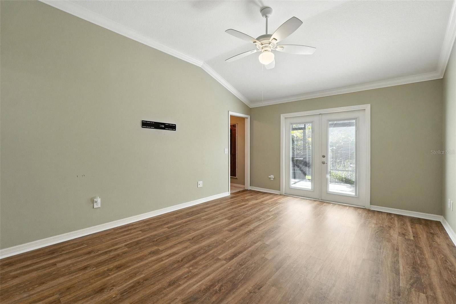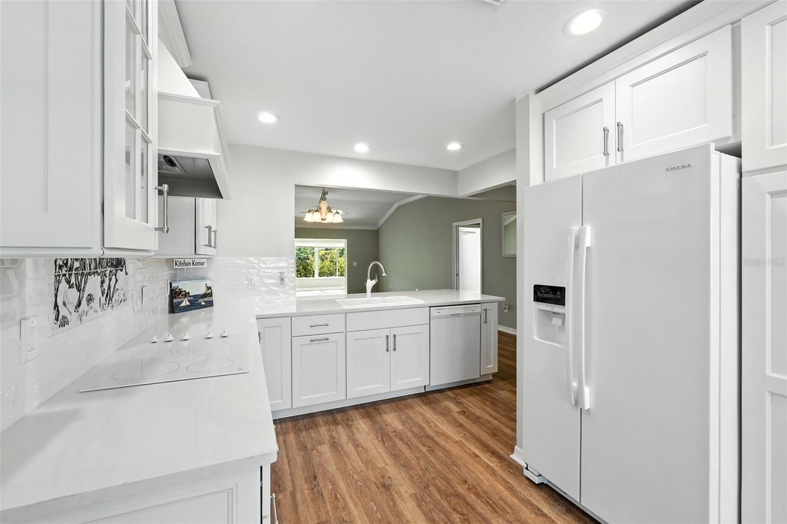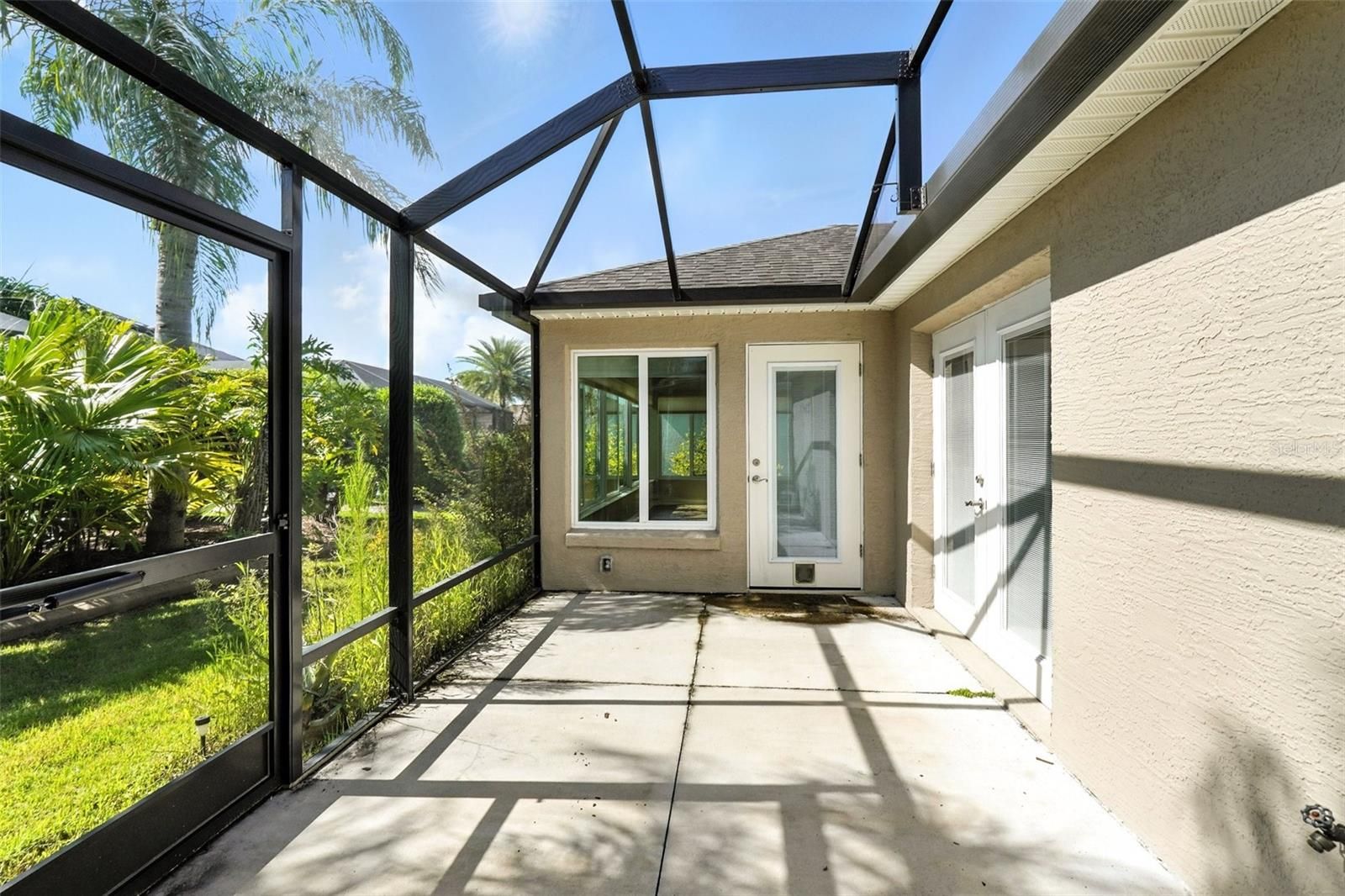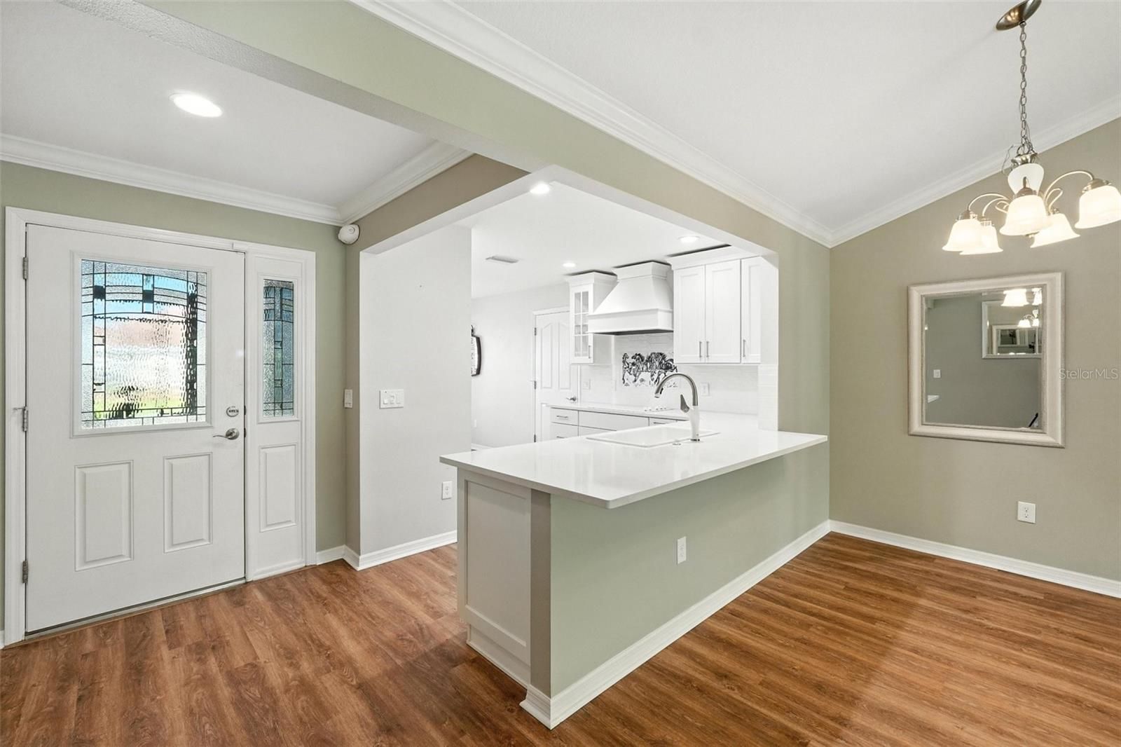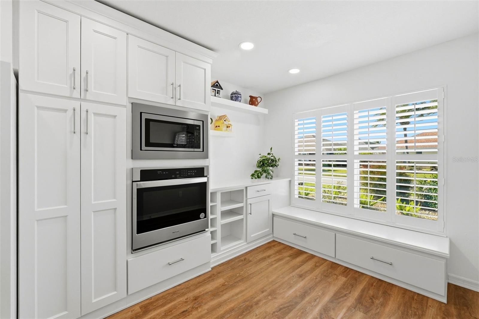 Beautiful 3 bedroom 2 bath home with enclosed sunroom. This Jasmine model has beautiful upgrades. The kitchen was remodeled with light cabinetry installed to the ceiling and accented with crown molding, custom designed hood, pull out shelving and tile backsplash. Additional kitchen features include a built in oven, cooktop, solid surface countertops, eat in space and a custom coffee bar area. The glass enclosed sunroom features heat/air to enjoy year-round. The primary suite features a large custom walk in closet with built in features that include cabinet doors for that enhanced look. Primary also has French doors leading to a private outdoor patio. The En-suite bath features double sinks & a large walk in shower! The split floorplan gives guests privacy with two bedrooms and a secondary bathroom. This home features an outdoor 10' x 16' screened lanai to enjoy year-round Florida weather. Additional features ncludie luxury vinyl plank flooring, water filtration system, built in cabinets and sink in the laundry room. The Garage boasts built in cabinetry and work bench.. This home is a must see!