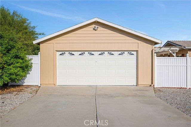 This is the home you’ve been waiting for! With key upgrades already handled, including a newer roof (approx. 6 years), fresh exterior paint (approx. 5 years), and a brand new sewer line from the house to the cleanout, you can move in with peace of mind. The attic fan keeps things cool, and the corner lot adds both privacy and standout curb appeal. What truly sets this home apart is the rare oversized detached two-car garage and a spacious 12,000+ sq. ft. lot with low maintenance landscaping offering the perfect balance of space, ease, and flexibility for your lifestyle. Nestled at the end of a quiet cul-de-sac in a friendly 55+ community, this charming 3-bedroom, 2-bath residence offers more than most. While similar homes feature two bedrooms and a single-car garage, this one gives you that coveted third bedroom ideal for guests, hobbies, or a home office—along with extra room for storage or your dream workshop. With approximately 1,850 sq. ft. of living space, the open and inviting floor plan creates a natural flow from room to room. Step outside and enjoy your very own outdoor haven complete with mature fruit trees that add shade, beauty, and a touch of sweetness. This home is a true gem and well-maintained, thoughtfully upgraded, and full of potential. Come see it for yourself and imagine the next chapter of your story here.
