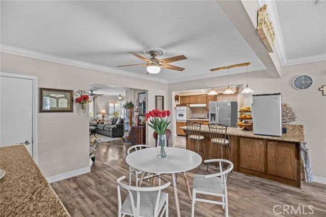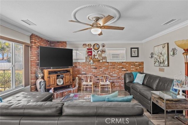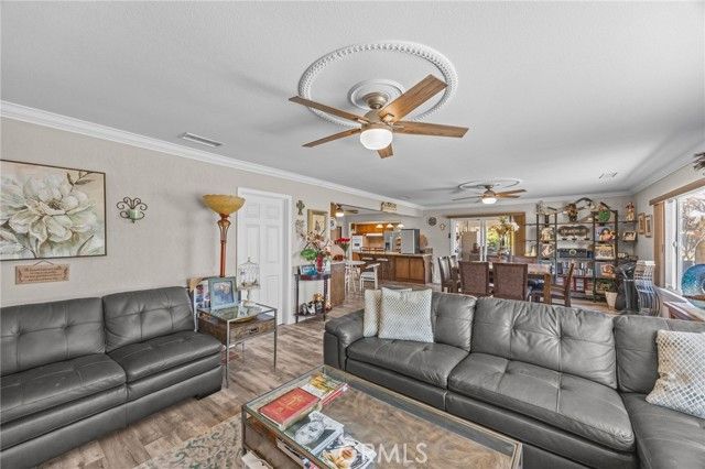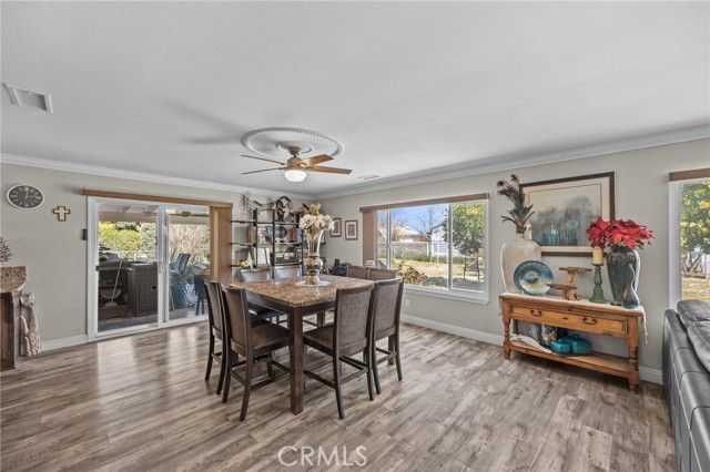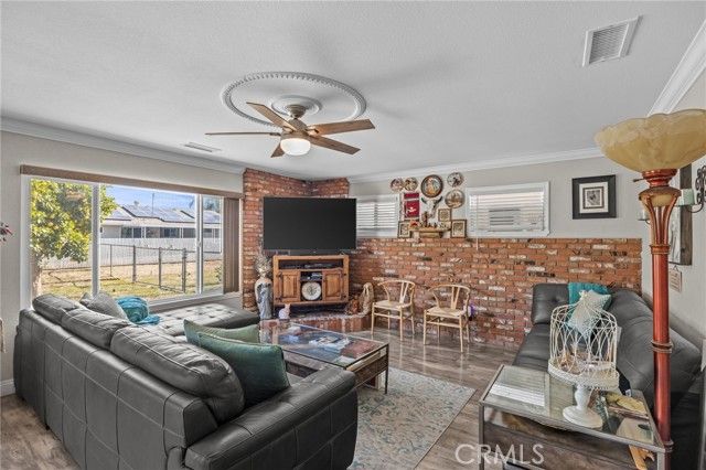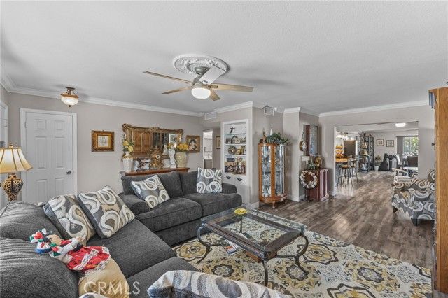 PRICED TO SELL...Fabulous and Spacious 4 bedroom, 2 bath home in the 55+ Sun City Civic Association neighborhood. This sprawling 1,985 Sq Ft single story home sits on an expansive 15,682 sq ft lot with an attached 2 car garage and plenty of parking on the driveway. There is also space on the side yard for possible RV parking. New AC unit installed last year, New Electrical Panel installed last year and new duct work in the family room. Covered backyard patio, storage shed and fruit trees adorn this large pie shaped backyard on a small and quaint cul-de-sac. The interior is open and spacious with a total of 4 good size bedrooms (3 bedrooms and 2 bathrooms on one end of the house and a fourth bedroom at the other end of the house). New window coverings throughout, double pane windows, laminate flooring, crown molding and ceiling fans in every room. The kitchen offers a pantry, granite counter tops and lots of cupboard space. . There is an oversized living room, built in buffet counter in the dining room, formal living area, and upgraded baseboards throughout.