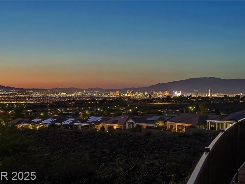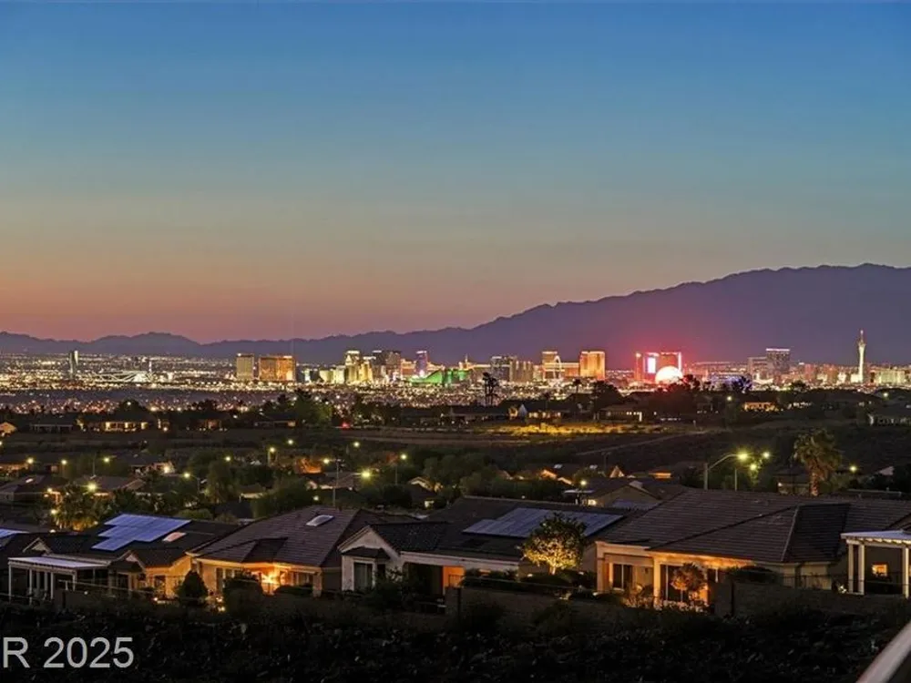 BEAUTIFUL LEXINGTON MODEL ON OVER A THIRD OF AN ACRE ELEVATED LOT WITH PANORAMIC VIEWS INCLUDING STRIP, DOWNTOWN, AND MOUNTAIN VIEWS. THE HOME HAS A GREAT OPEN FLOOR PLAN WITH FORMAL LIVING/DINING ROOMS, A LARGE GOURMET KITCHEN WITH A SKYLIGHT GIVING THE KITCHEN AND FAMILY ROOM LOTS OF NATURAL LIGHT. THIS ELEGANT HOME FEATURES CROWN MOLDING, SHUTTERS, SURROUND SOUND, WOODLIKE FLOORING, AND MUCH, MUCH MORE.