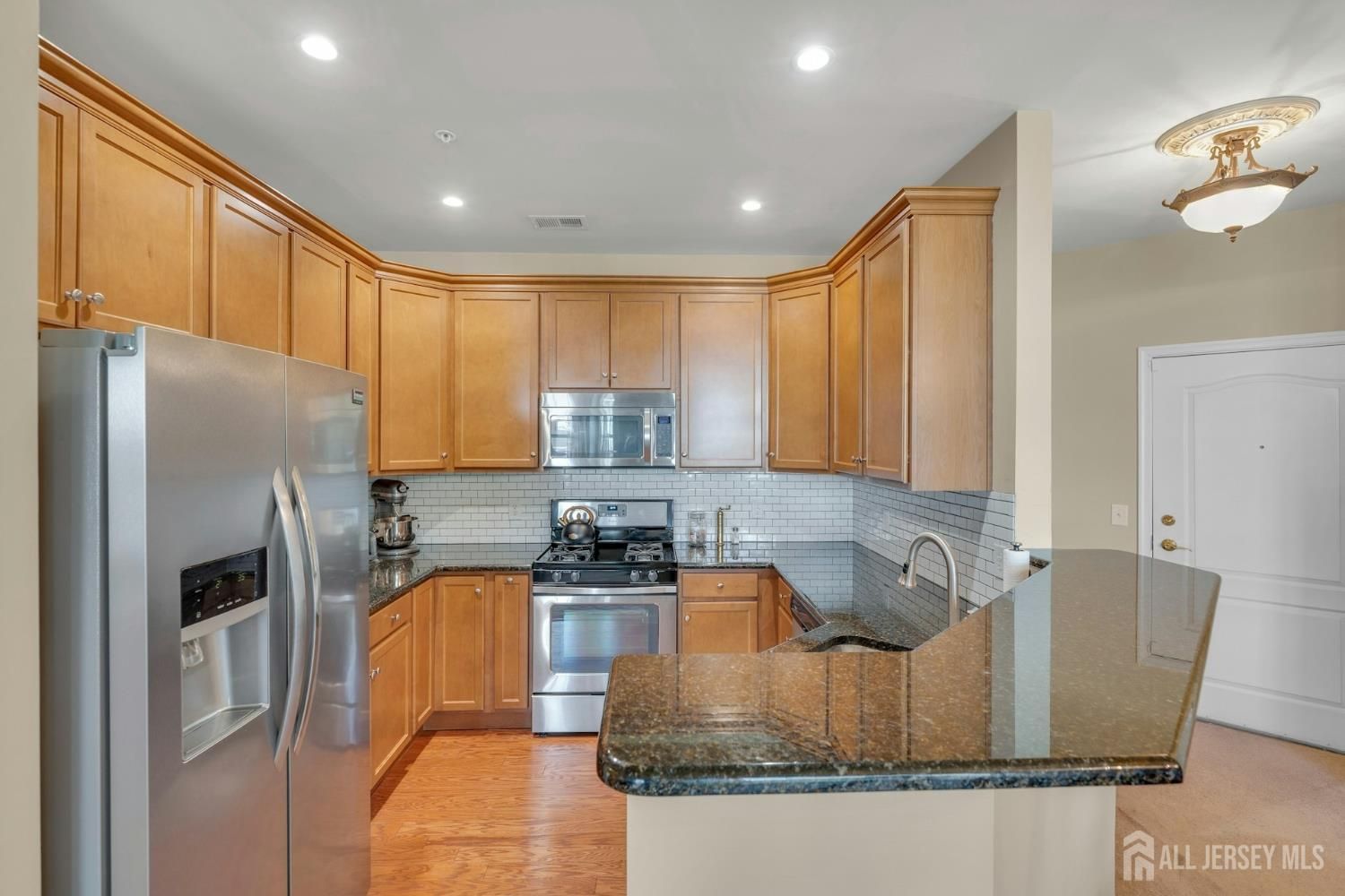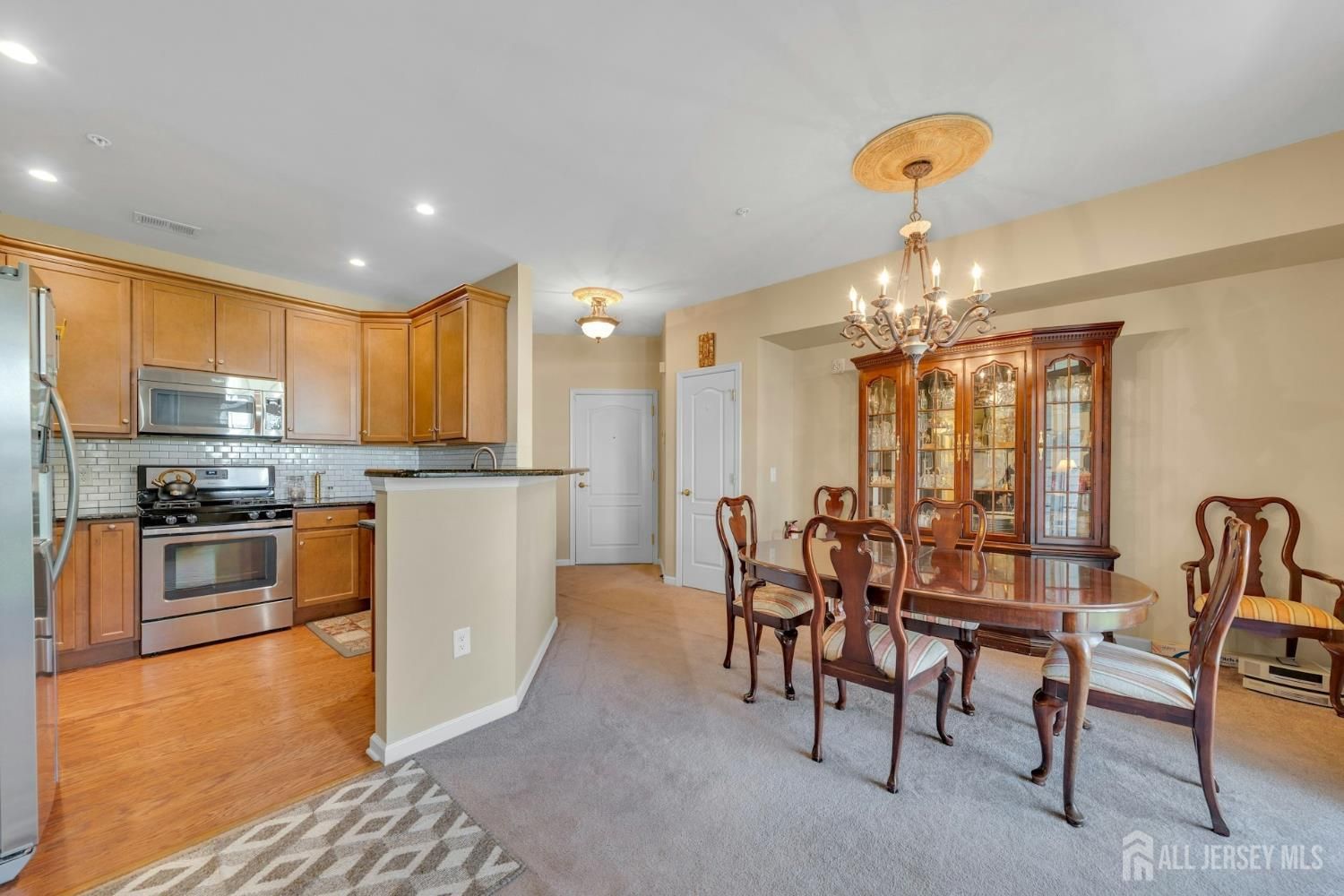 Discover your ideal haven in this stunning condo, nestled within a secure gated community that perfectly balances convenience and luxury at an exceptional value. This inviting and meticulously maintained home is ready for you to move right in and start creating beautiful memories. Step inside to find a spacious layout recently refreshed with soothing neutral tones. The kitchen is a chef's dream, featuring elegant granite countertops, 42'' cabinetry, and modern stainless steel appliances. Relax in the bright living room, enhanced by charming bay windows, or gather around the dining table in the formal dining room that opens to a delightful balcony. The well-appointed laundry room offers ample storage and pantry space, while the primary bedroom boasts a generous walk-in closet and a private full bath for your comfort. Designed with accessibility in mind, this home includes an elevator and an assigned underground parking space for added convenience. Positioned close to shopping, dining, major roadways (Rt. 18 & 9), NYC bus routes, and nearby hospitals, this location is as functional as it is desirable. Enjoy a wealth of amenities, including a clubhouse with a library, a fully equipped exercise room, four regulation tennis courts, and a spectacular swimming pool perfect for relaxation and recreation. Come and see for yourself why this condo is the perfect place to call home. Showings Start 5/2