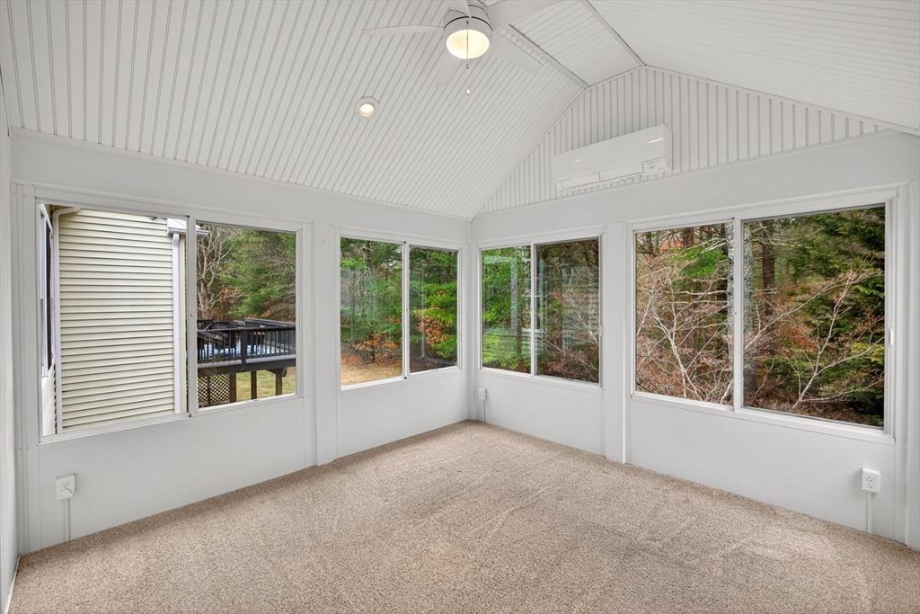 Perfect, ready-to-downsize single floor living - Very popular "Franklin" floorplan in the Great Island Neighborhood at The Pinehills. And just in case you need it there is 21' x 31' freshly painted, heated bonus room in the lower level walkout with sliders and two windows - lots of natural light. One owner home. HVAC updated 2013 & regularly serviced. Screen porch updated to 4 season room with a mini spilt 2018. Kitchen w/granite counters, newer fridge & dishwasher, pantry and plenty of cabinets. Separate dining room. Cozy breakfast nook surrounded by windows flows into the living room w/gas fireplace. Primary bath with double vanity sinks, soaking tub and step in shower. Spacious walk-in closet. 2nd bedroom feels like an en-suite. Located on a single loaded street which adds to the privacy. The all-inclusive Great Island "Del Webb" neighborhood has it all, state-of-art clubhouse offering endless activities, tennis and pickle ball courts, bocce courts, fitness center & indoor pool.