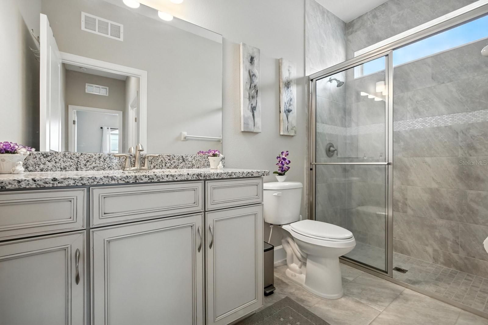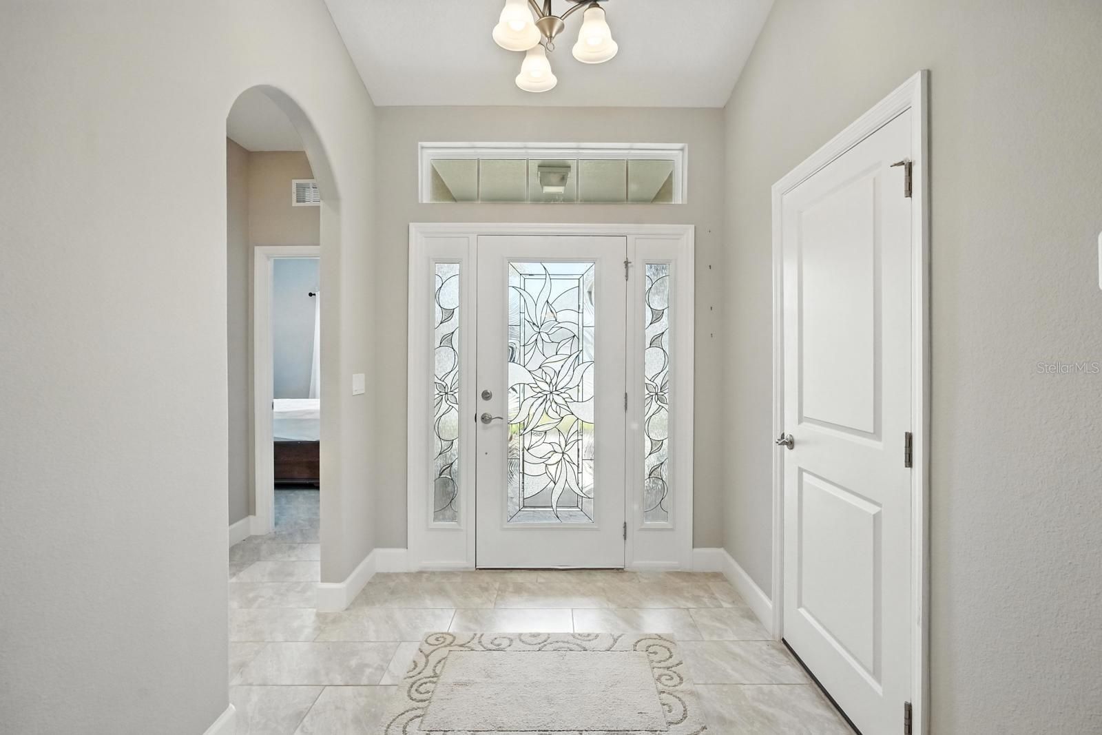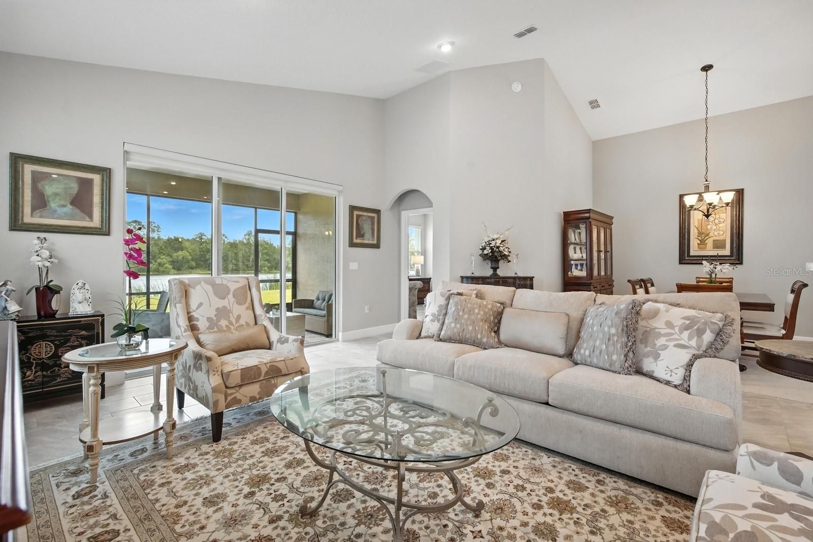 Discover the charm of Florida waterfront living in this beautifully appointed 2-bedroom, 2-bath home with a dedicated office/den, perfectly situated in the desirable 55+ gated community of Matanzas Lakes. The open-concept design highlights soaring ceilings, elegant tile floors throughout, and a chef-inspired kitchen with quartz counters, tile backsplash, 42” cabinetry, and a large center island—ideal for casual meals or entertaining friends. Wake up to peaceful water views from the private owner’s suite, complete with a walk-in closet, dual vanities, and a luxurious walk-in shower. A versatile office/den provides the perfect space for working from home, hobbies, or quiet reading, while the guest bedroom enjoys its own nearby bath, conveniently located steps from the laundry room. Step outside to the covered and screened-in patio overlooking the water—perfect for morning coffee or evening cocktails. Thoughtful touches include a paver driveway and walkway, an irrigation system powered by a private well, and a complete set of appliances (including washer and dryer). Residents enjoy gated security, underground utilities, and resort-style amenities such as a sparkling community pool, tennis and pickle ball courts, outdoor grill, and shaded seating areas. Absolutely gorgeous and move-in ready, this home offers the perfect blend of comfort, convenience, and low-maintenance 55+ Florida living.