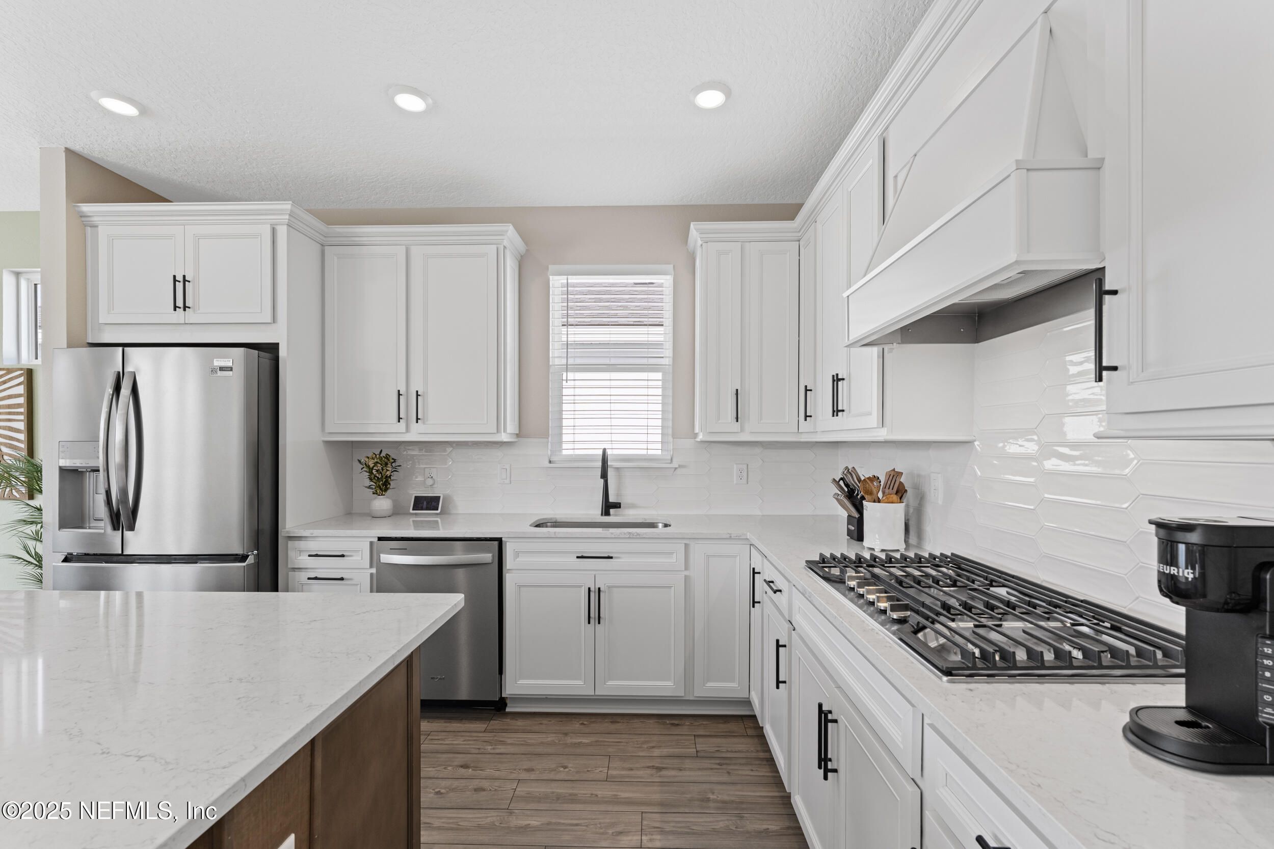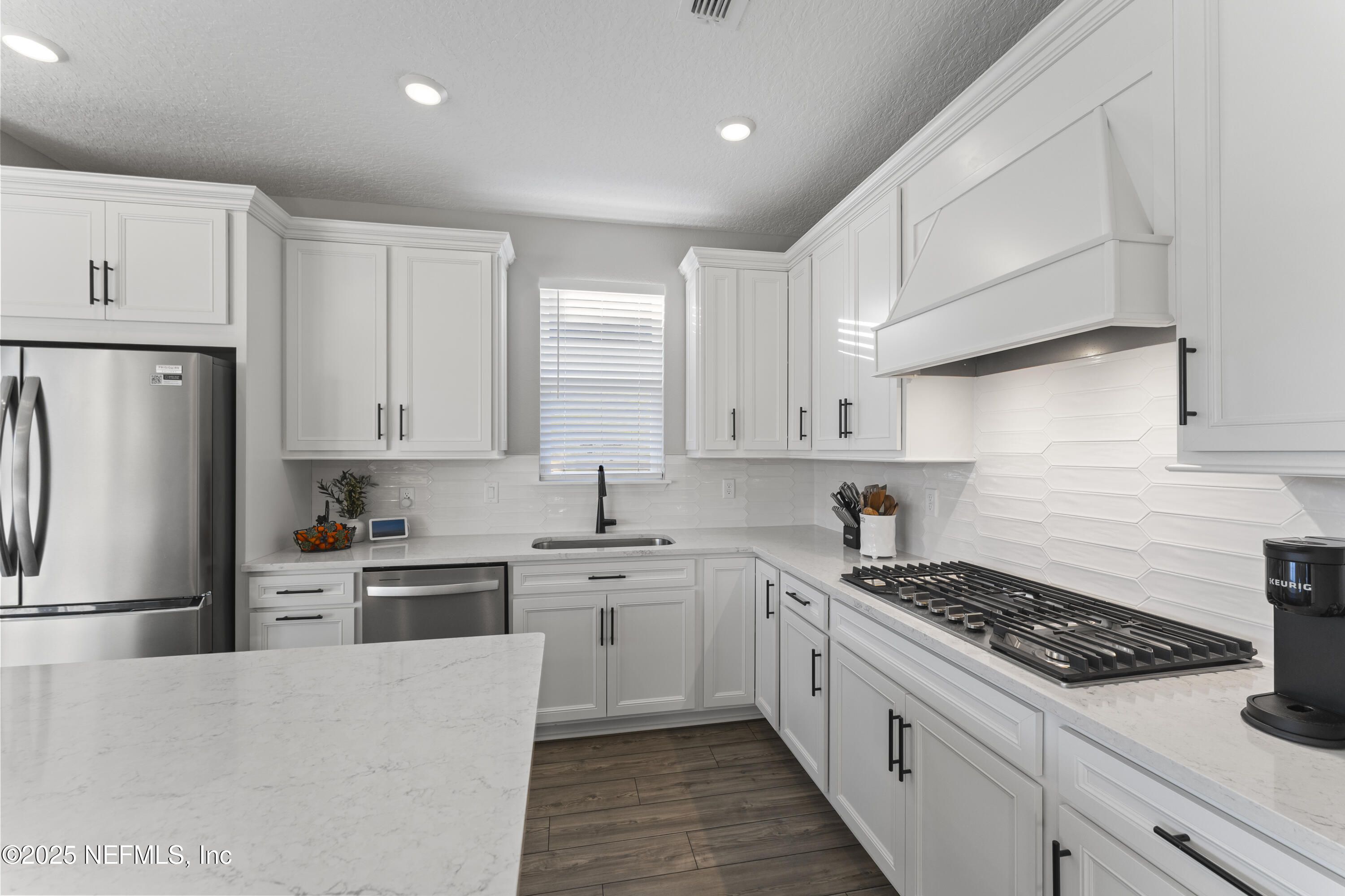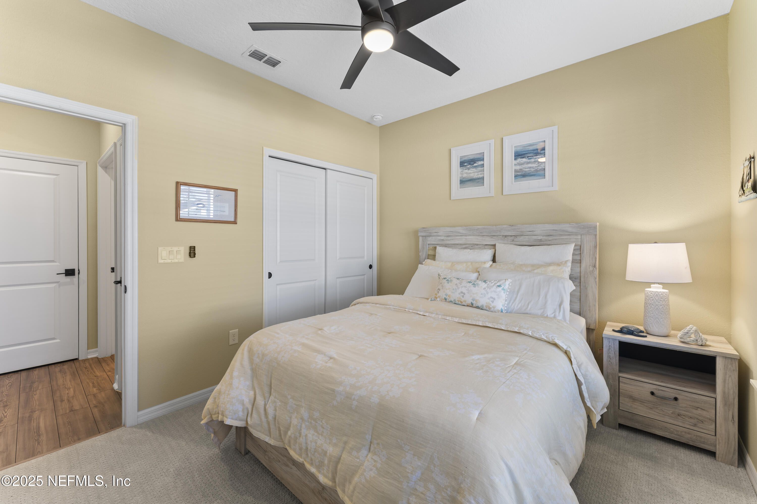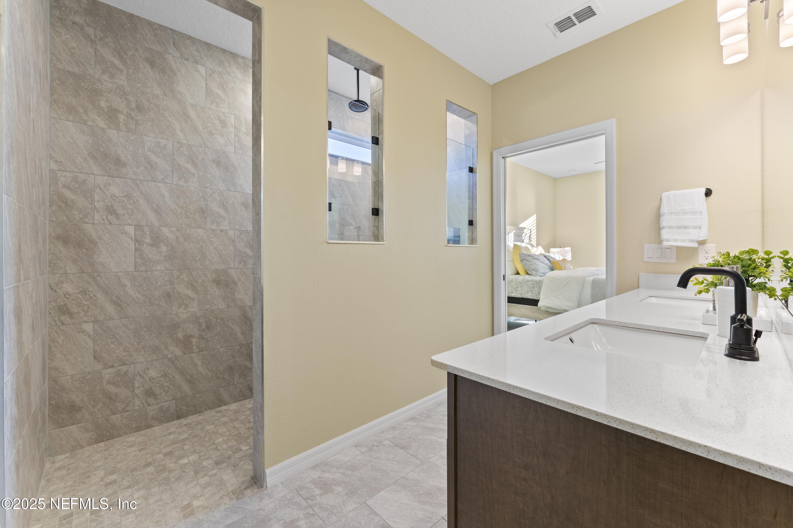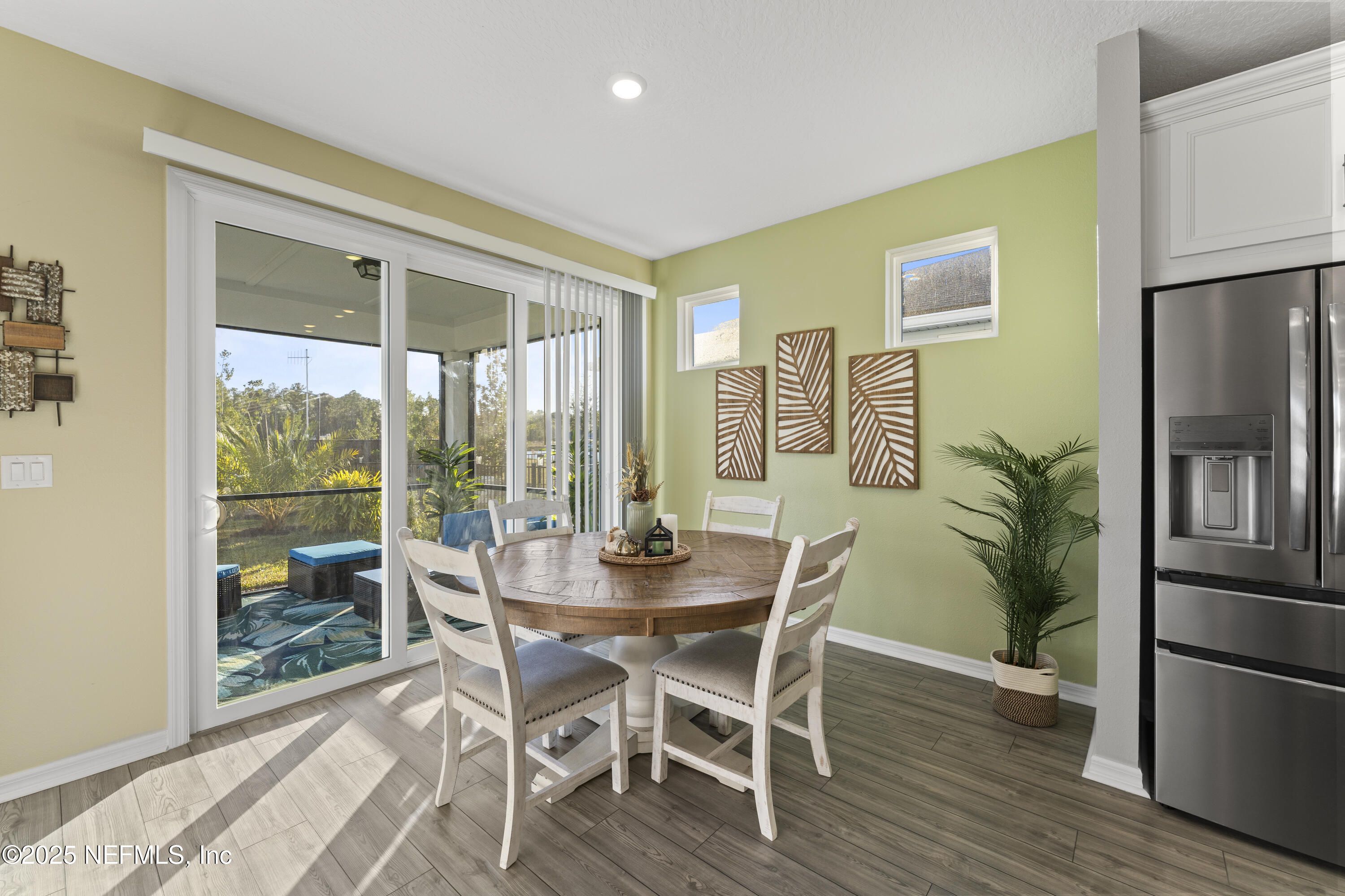 This beautifully designed Pulte Prosperity floor plan sits on a premium corner lot and offers 2 bedrooms, 2 baths, and a versatile flex room ideal for an office, gym, or potential 3rd bedroom. Surrounded by lush landscaping, the home provides excellent privacy while being steps from resort-style amenities including a pool, fitness center, pickleball courts, and a dog park. The gourmet kitchen features stainless appliances, 42'' soft-close cabinets, quartz countertops, and a sleek white backsplash, while luxury vinyl plank flooring flows through the main living areas. Pocket sliding doors open to a screened lanai with peaceful pond views, creating seamless indoor/outdoor living. The owner's suite offers a large walk-in shower, dual-sink vanity, and a spacious walk-in closet. Furniture is negotiable, making this a move-in-ready home where you can enjoy the exceptional Summer Bay lifestyle. Ideal location, close to the highway, major shopping, including the St. Augustine Outlets, Publix, Costco, and Home Depot.