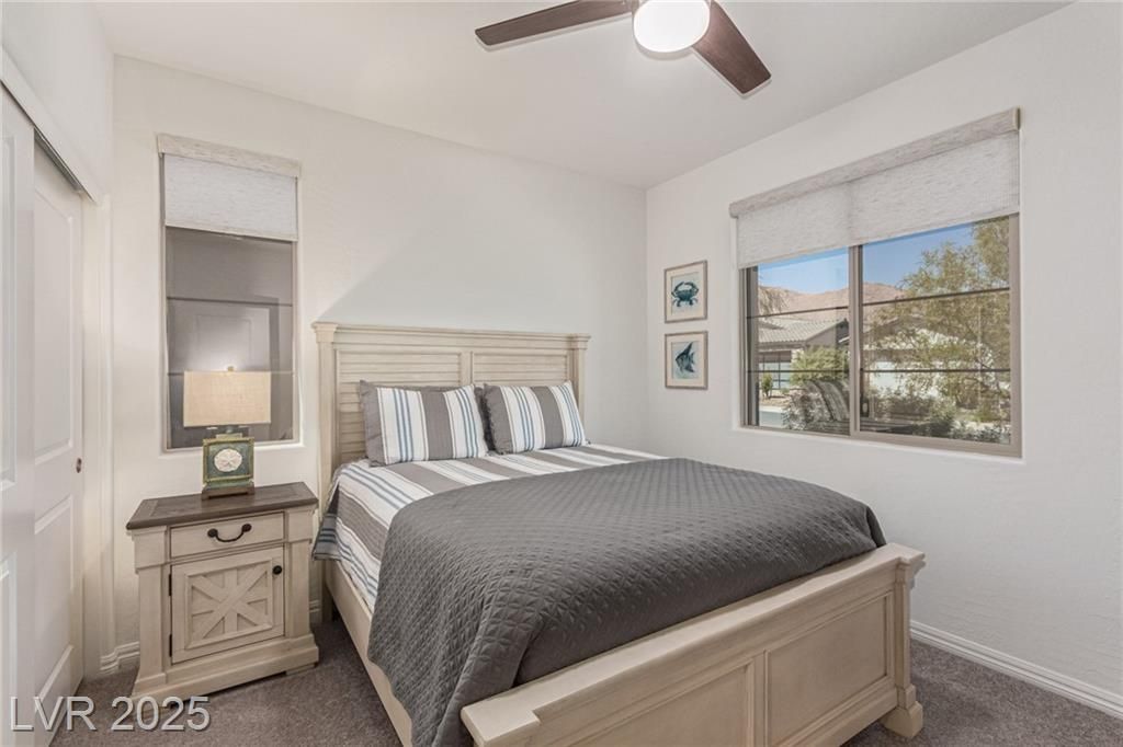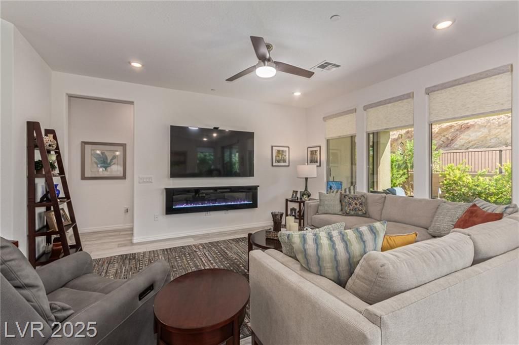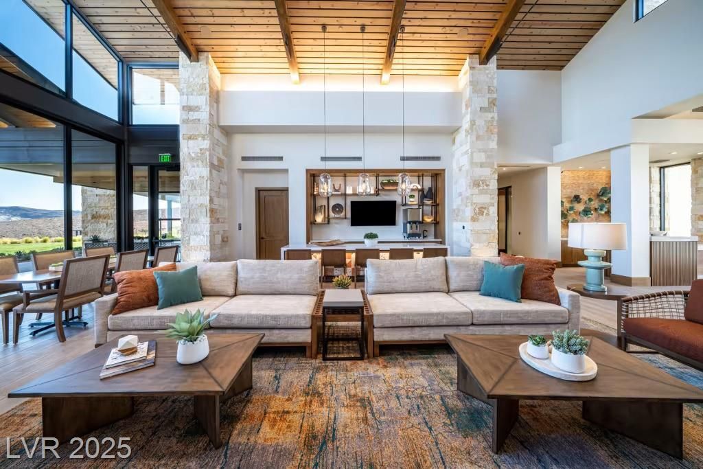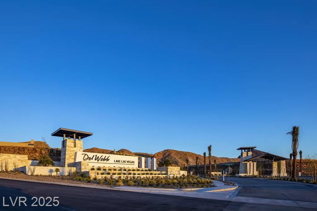 Discover refined living in this one-of-a-kind single-story home at Del Webb Lake Las Vegas, the premier 55+ active community. Perfectly positioned against a natural mountain bluff, this residence offers unmatched privacy and breathtaking views. Nearly brand new, it showcases over $100,000 in non-standard builder upgrades with no expense spared. The open-concept design features a gourmet kitchen with quartz counters, upgraded cabinetry, stainless steel appliances, and a modern horizontal window that frames the outdoors with natural light. The expanded primary suite, and extended patio, a rare builder addition, enhances comfort and elegance. Designer landscaping highlights a personal putting green for resort-style relaxation. Inside, enjoy custom window coverings, a sleek electric fireplace, and a versatile den used as a guest room/office. With 2 bedrooms, 2 baths, and impeccable finishes throughout, this is the ultimate expression of luxury living—truly the home you’ve been waiting for.