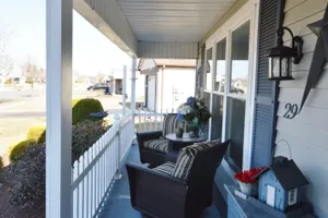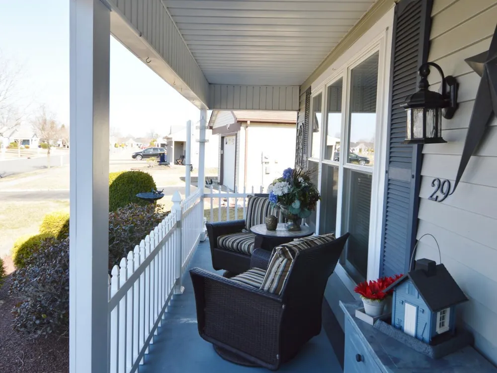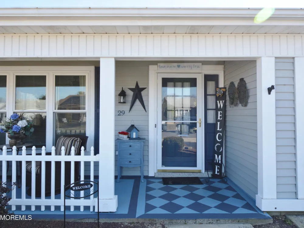 Hurry! Don't miss this wonderful opportunity to be the new owners of 29 Saint Paul Pl. ~ Highly Desired Fairfax Model with many updates ~ Lovely Rocking Chair front porch ~ Beautiful laminate floors throughout the home for easy living ~ Large Living Room with some newer windows, ceiling fan and recessed lights ~ Nice sized Dining Room with laminate floors ~ Kitchen with granite countertops with bar seating, newer appliances include an LG ''Smart Mirror Insta-View Door Refrigerator, a Double Oven and, Microwave ~ adjacent bonus eating area with recessed lights, a propane fireplace with a brick surround and sliding doors that lead to the oversized patio and a BONUS 12' x 9'8'' storage room ~ Large Primary Bedroom with French Doors, ceiling fan, an ensuite bath with a newer vanity and a walk in closet. Nice sized guest bedroom with a triple wide closet and an updated guest bath with a tub ~ Laundry room with extra cabinets for storage and a direct entry one car garage with pull down stairs for addition attic storage ~ Carrier A/C installed in 2021 and the Hot Water Heater in 2023, the Leased SOLAR PANELS are only $112.45 per month ~ Leisure Knoll offers a Lovely Clubhouse with a Heated Pool, Fitness Center, Tennis, Pickleball, Bocce, Shuffleboard, Many Social Clubs and Activities, something for everyone. Hurry, you do not want to miss this beautiful home!