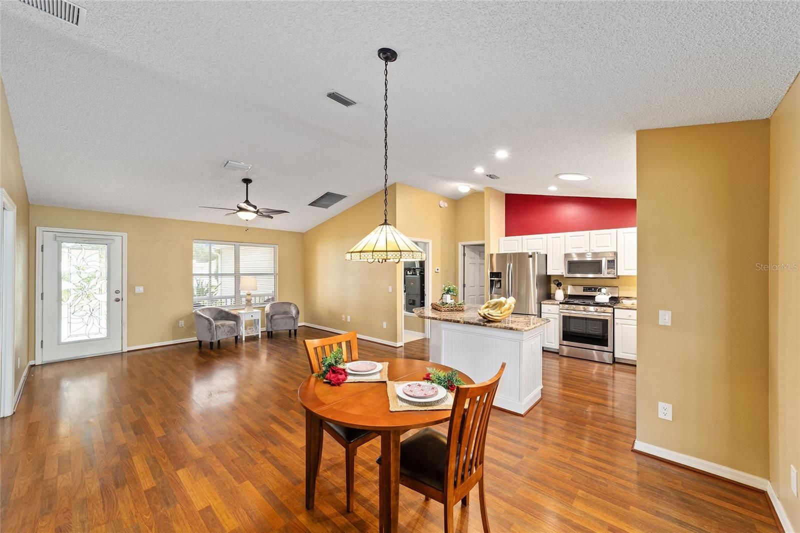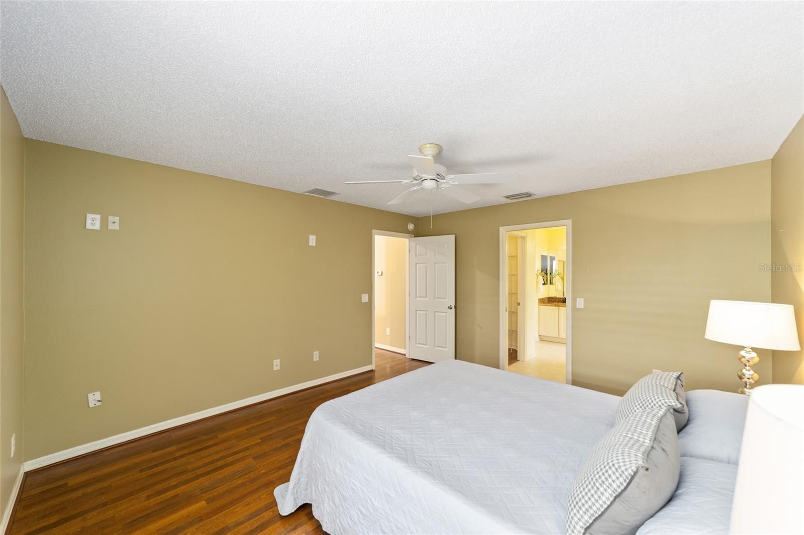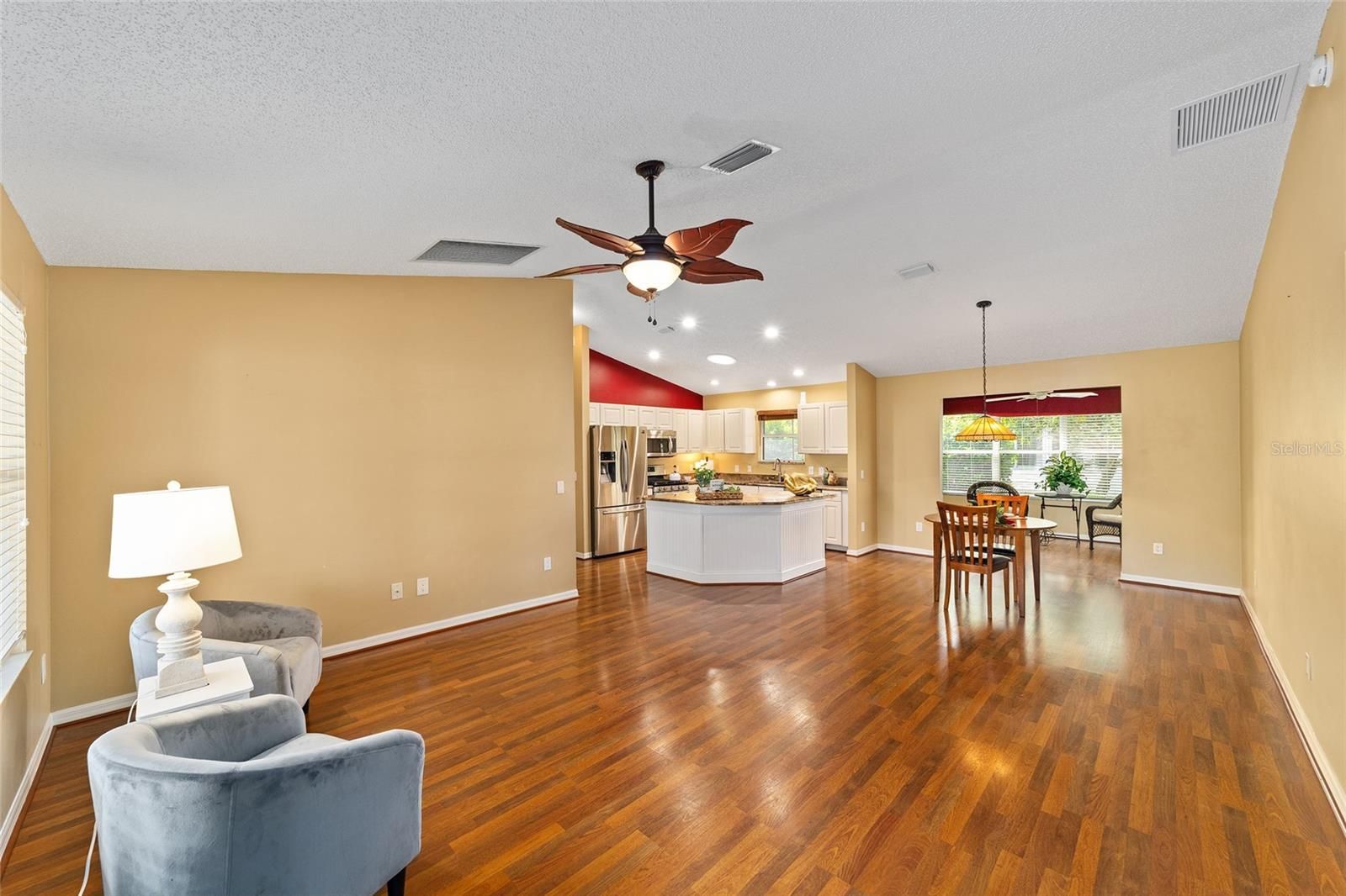 - Ceiling Fan(s), Living/Dining Room, Open Floorplan, Main Level Primary, Thermostat, Vaulted Ceiling(s), Walk-In Closet(s)