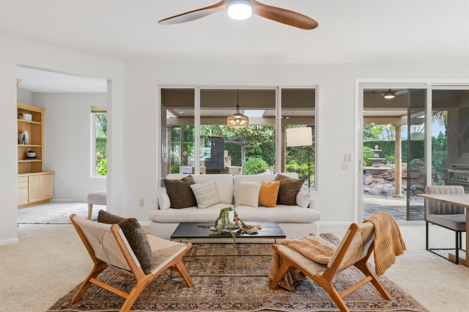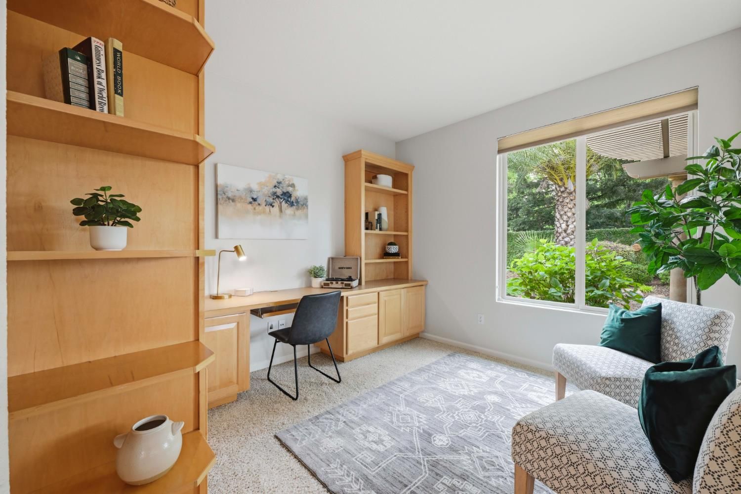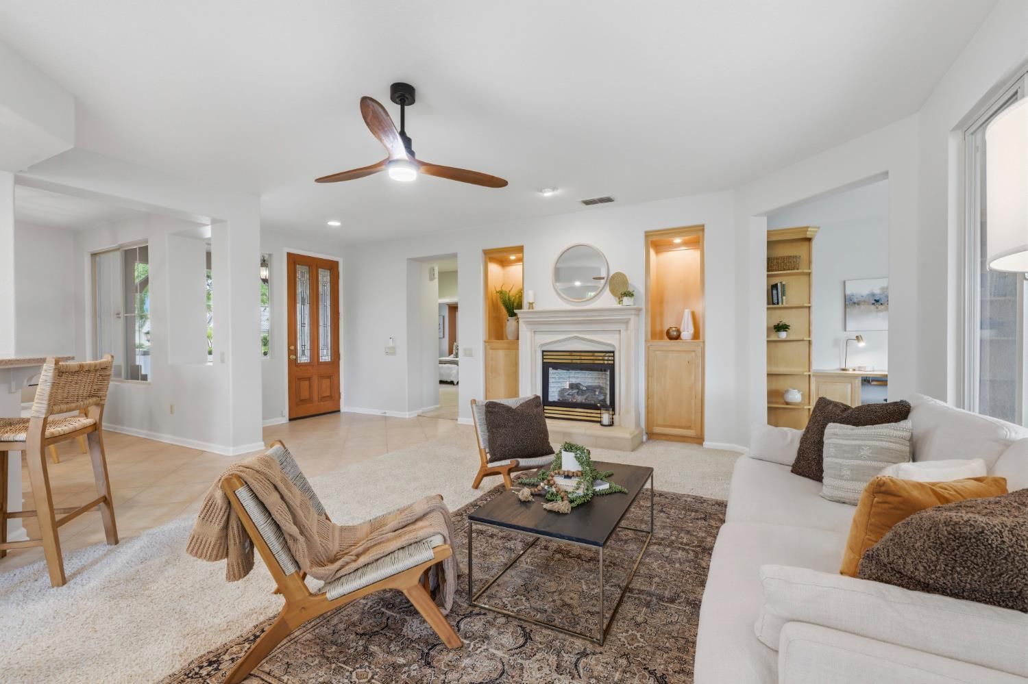 Stunning Tahoe Model on expansive .25-acre lot in Sun City Lincoln Hills is ready to welcome its next owner. Situated on an expansive .25-acre lot, this beautifully maintained 2-bedroom, 2-bath home offers 1,791 square feet of comfortable, light-filled living. The home has been thoughtfully updated with new interior paint and modern lighting, creating a fresh, move-in-ready feel throughout. The inviting great room is filled with natural light from numerous windows, creating a warm and comfortable space for everyday living or entertaining. The chef's kitchen is both functional and stylish, featuring granite countertops, a built-in cooktop, ample cabinetry, a pantry, and a cozy breakfast nook perfect for casual dining. The spacious primary suite includes a builder-upgraded boxed window that adds extra square footage and natural light. The ensuite bathroom features dual sinks, a large soaking tub, and a generous walk-in closet. The guest bedroom offers added versatility with a built-in Murphy bed, ideal for accommodating visitors while maximizing everyday space. Step outside to enjoy the oversized covered patio overlooking a park-like backyard complete with mature landscaping and decorative hardscape ideal for relaxing, gardening, or hosting gatherings. With its thoughtful upgrades, generous lot size, and move-in-ready condition, this home truly has it all. Don't miss this exceptional opportunity to enjoy the lifestyle and amenities of Sun City Lincoln Hills.