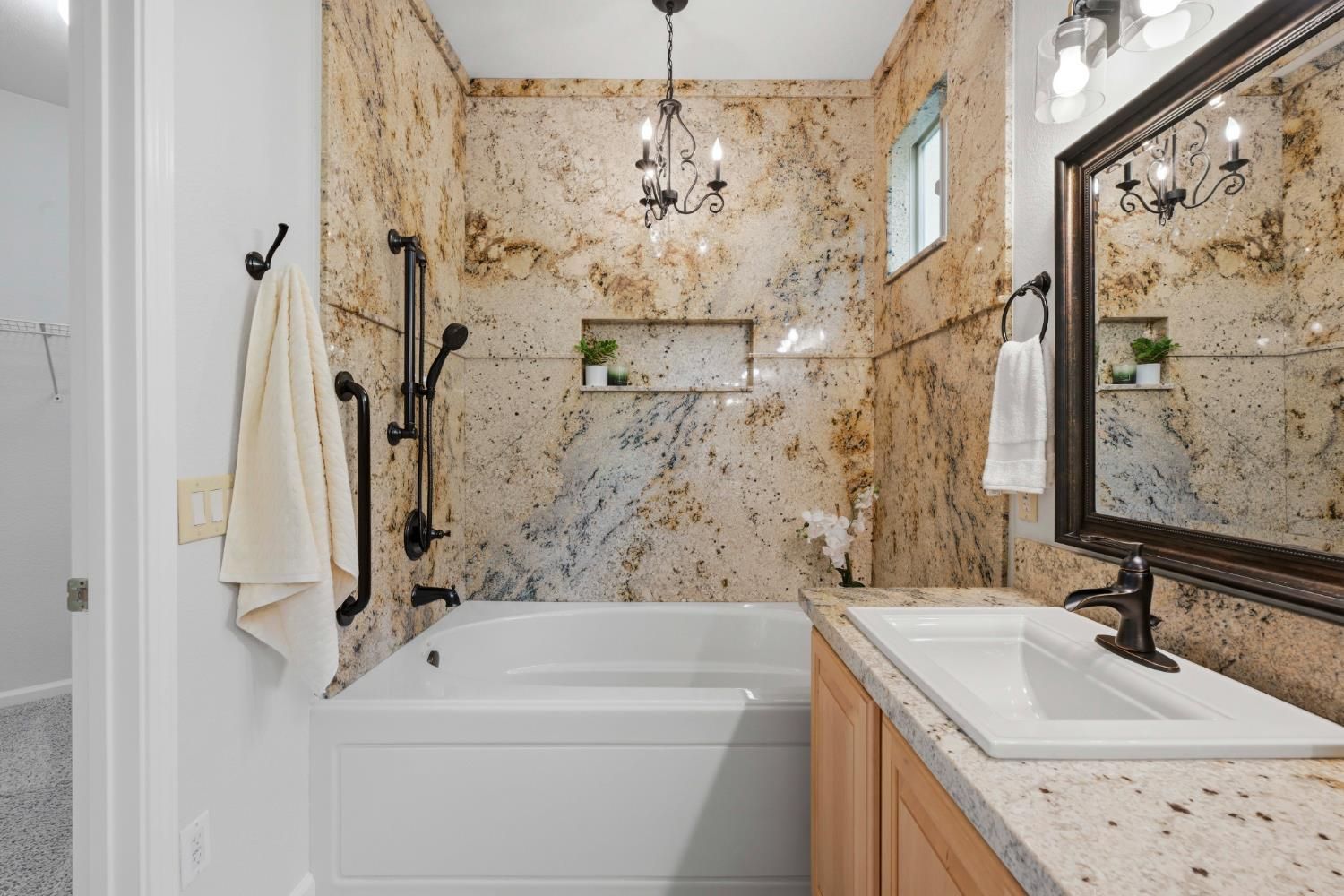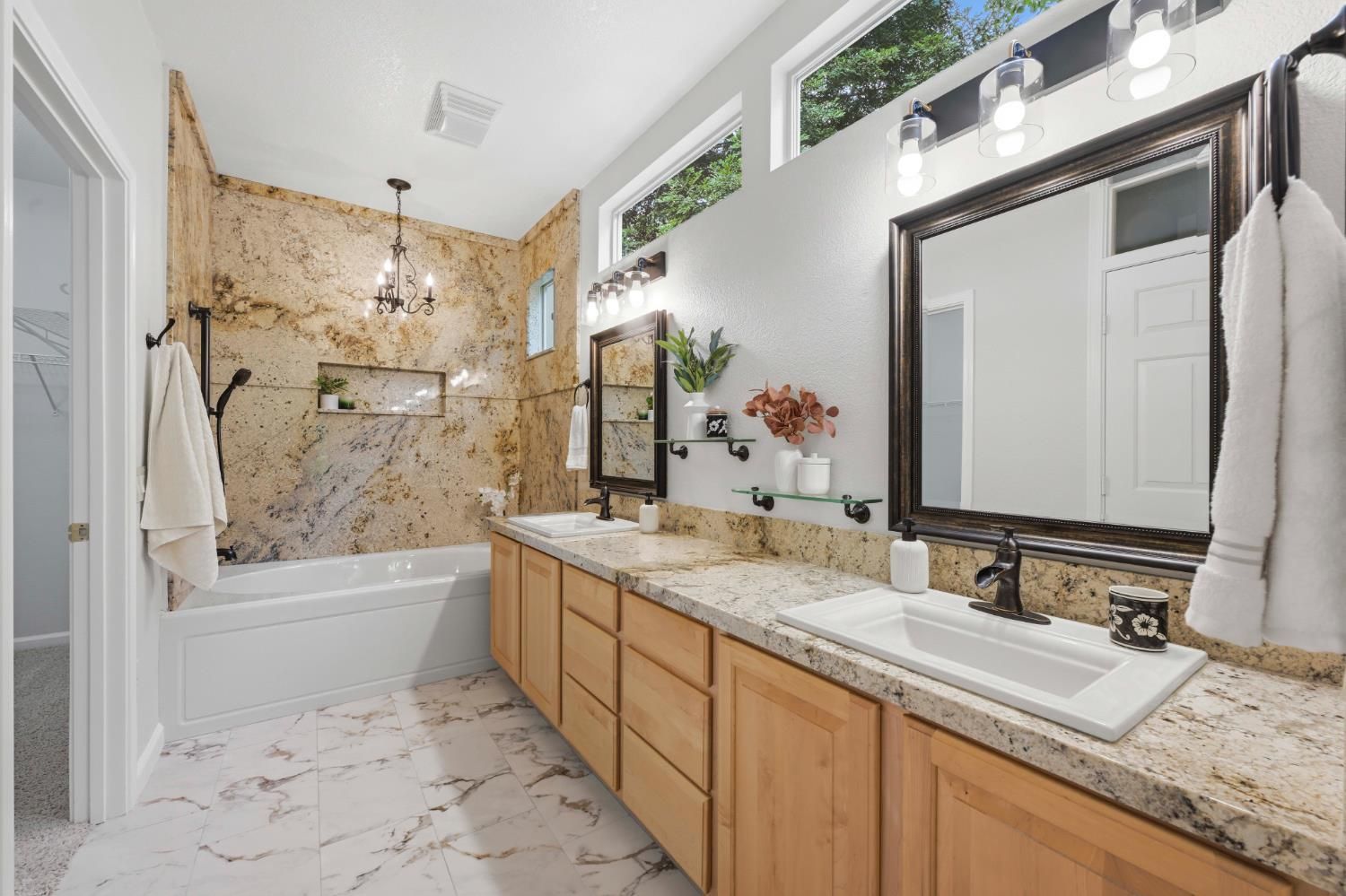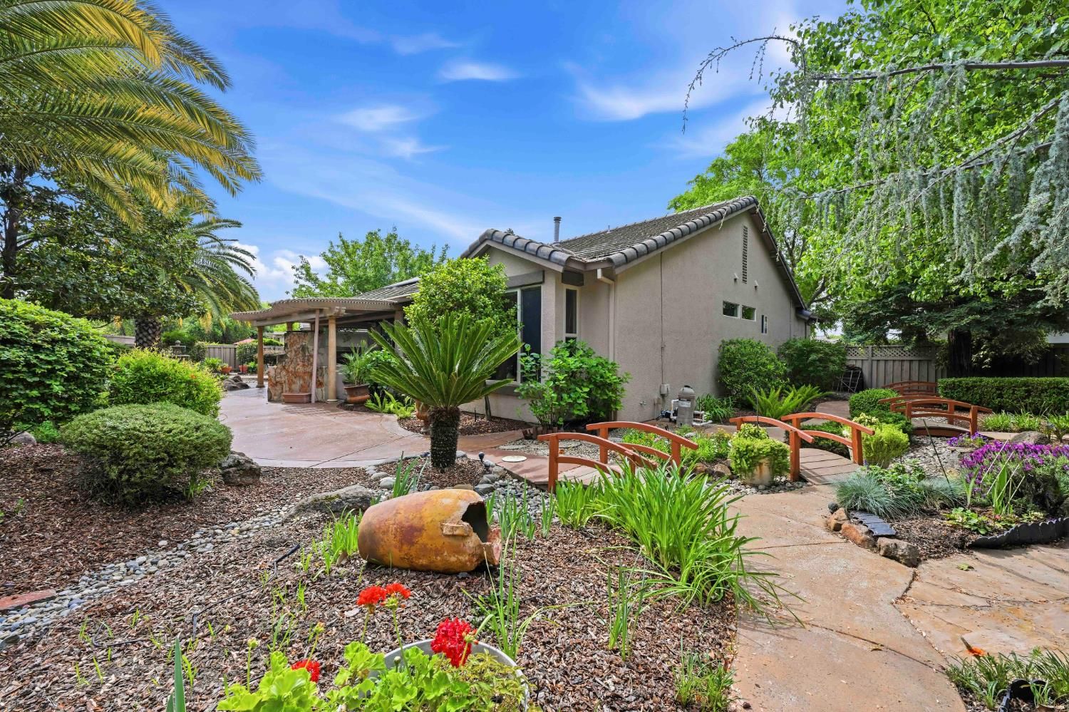 Stunning Tahoe Model on expansive .25-acre lot in Sun City Lincoln Hills is ready to welcome its next owner. Situated on an expansive .25-acre lot, this beautifully maintained 2-bedroom, 2-bath home offers 1,791 square feet of comfortable, light-filled living. The home has been thoughtfully updated with new interior paint and modern lighting, creating a fresh, move-in-ready feel throughout. The inviting great room is filled with natural light from numerous windows, creating a warm and comfortable space for everyday living or entertaining. The chef's kitchen is both functional and stylish, featuring granite countertops, a built-in cooktop, ample cabinetry, a pantry, and a cozy breakfast nook perfect for casual dining. The spacious primary suite includes a builder-upgraded boxed window that adds extra square footage and natural light. The ensuite bathroom features dual sinks, a large soaking tub, and a generous walk-in closet. The guest bedroom offers added versatility with a built-in Murphy bed, ideal for accommodating visitors while maximizing everyday space. Step outside to enjoy the oversized covered patio overlooking a park-like backyard complete with mature landscaping and decorative hardscape ideal for relaxing, gardening, or hosting gatherings. With its thoughtful upgrades, generous lot size, and move-in-ready condition, this home truly has it all. Don't miss this exceptional opportunity to enjoy the lifestyle and amenities of Sun City Lincoln Hills.