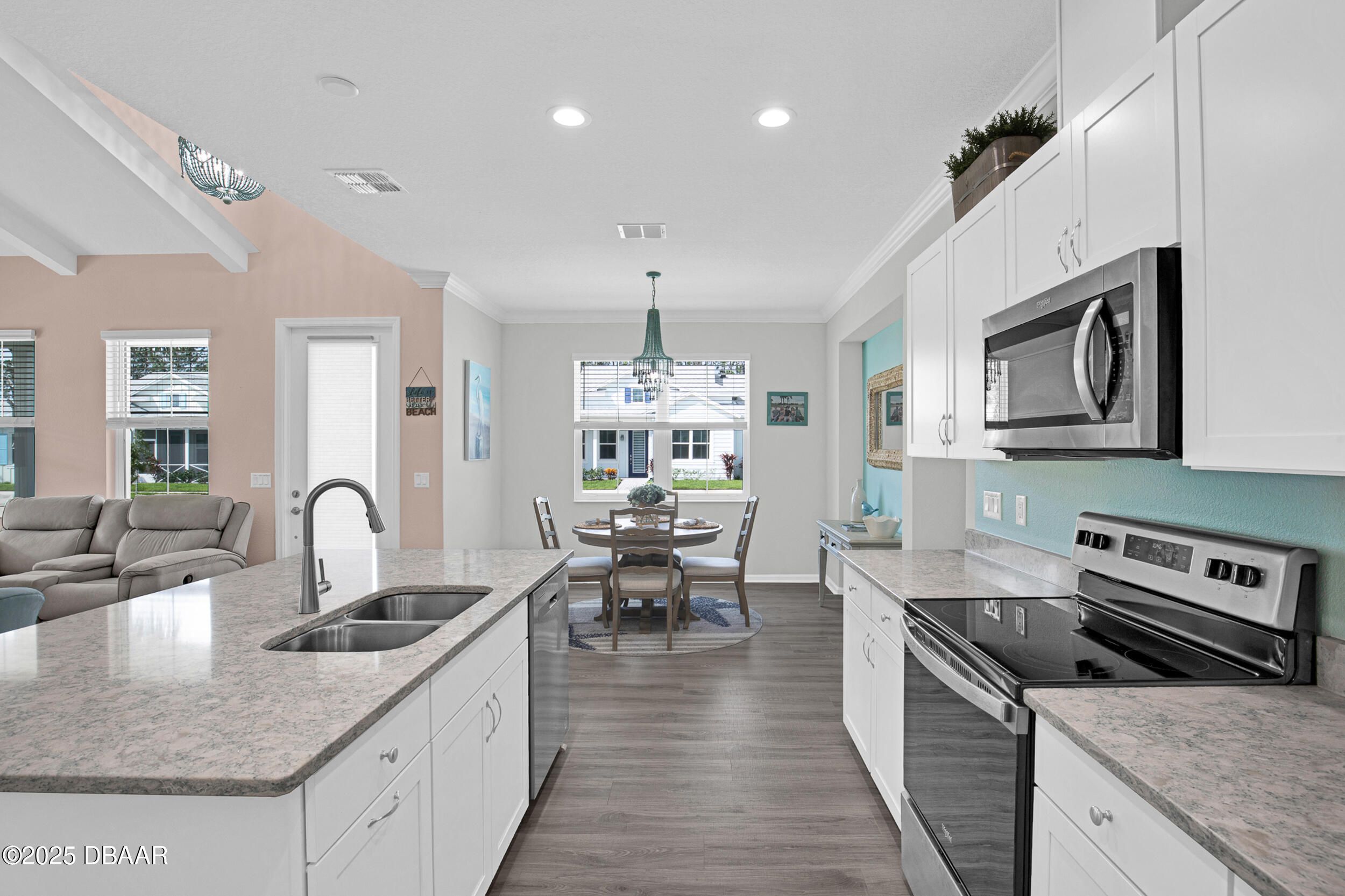 Check out this Dreamy Dreamsicle!*Sought after location in Phase 7, walking distance to Blue Guitar Park*The eye catching, beamed ceiling really gives this cottage that beachy cottage feel*Coastal colors await you as you enter this open floor plan*The VAULTED ceilings and end location allow for maximum light*You will LOVE the LAMINATE, Plank flooring throughout the home*White kitchen cabinets and beautiful QUARTZ counter tops are just some of the upgrades*CROWN molding and ceiling FANS already in place* *Everything that you need to start enjoying this RELAXING lifestyle TODAY! Why wait? Latitude Margaritaville is a 55+, private, gated community. 3 heated pools including the resort style main pool, 1 indoor lap pool, and outdoor sports pool. You Will LOVE the PRIVATE BEACH CLUB! Live music every afternoon at the Bar and Chill Restaurant. Enjoy the poolside SANDBAR restaurant! State of the art Fins Up Fitness Center, Mango Theater, dog park, PICKLEBALL, and TENNIS. Come visit this FINtastic community.