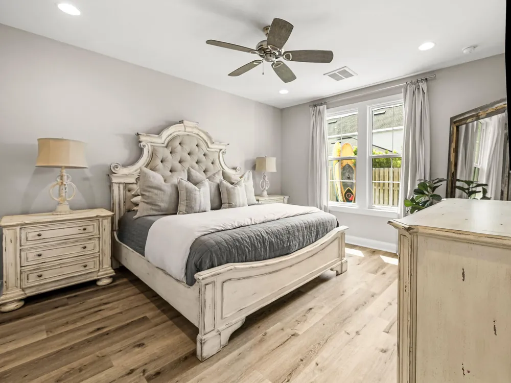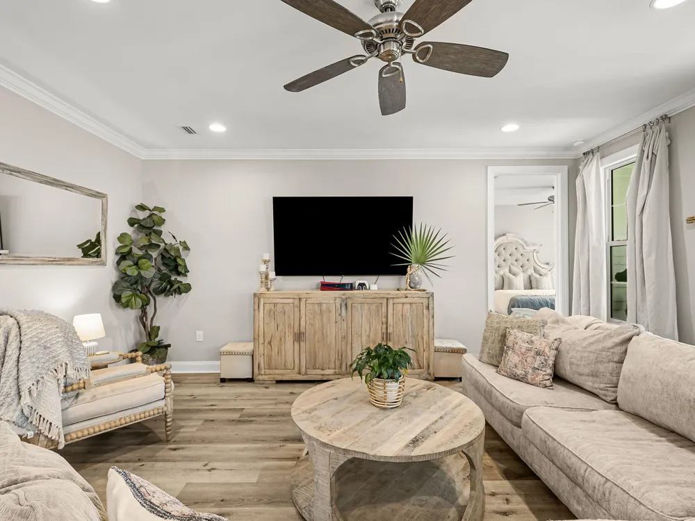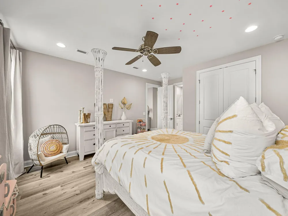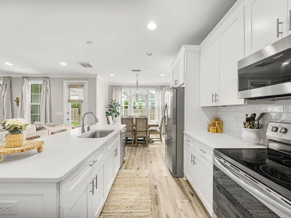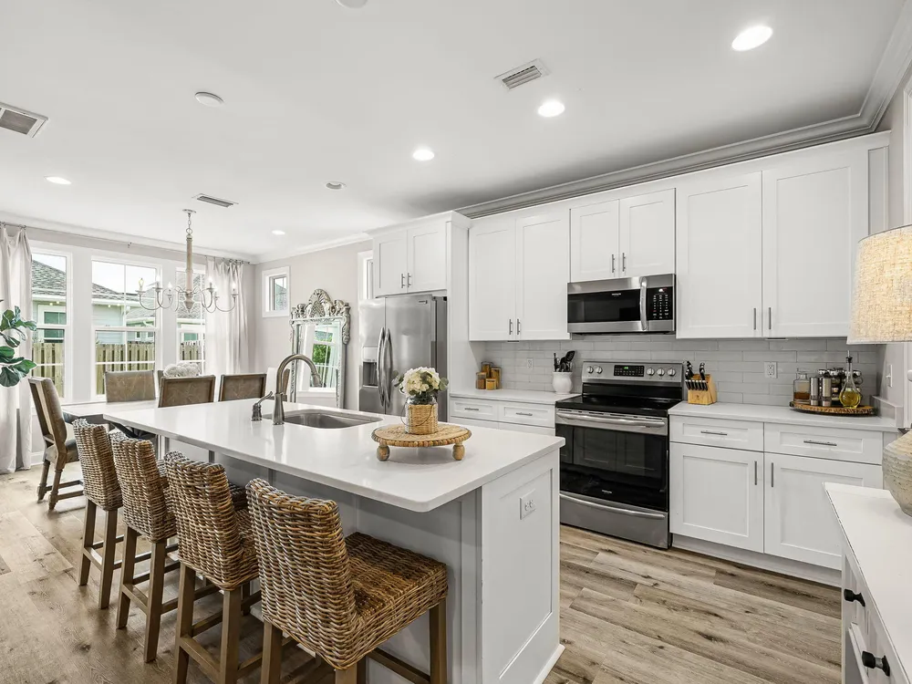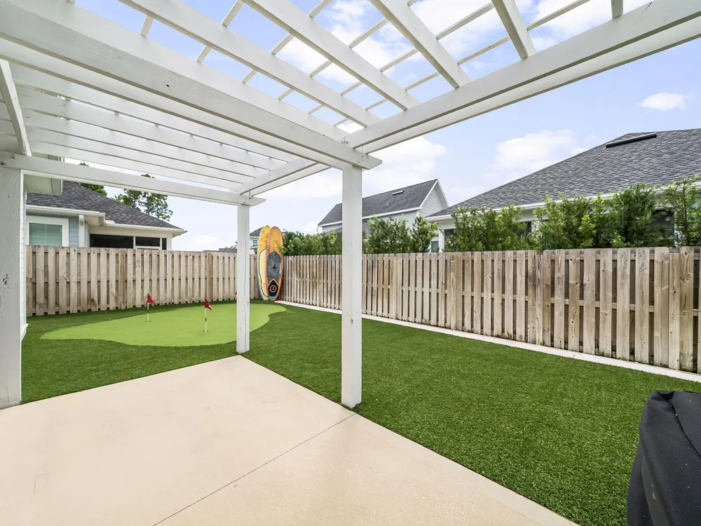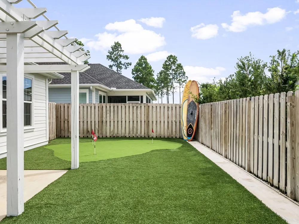 Rare opportunity to own a stunning 4-bedroom, 3.5-bath, 2,430 sq ft Huff Home in the Stillwater neighborhood of Watersound Origins. Privately tucked away, this residence captures unobstructed pond views from both floors, creating a serene and elegant backdrop. The open plan showcases quartz countertops, luxury vinyl flooring throughout, and a first-floor master suite. Over $54,000 in professional upgrades include a freshly painted interior, new sod and landscaping, and a fully turfed backyard with custom putting green and shaded outdoor living designed for both relaxation and entertaining. Watersound Origins is one of the area's most thoughtfully designed communities, offering golf, a zero-entry pool, tennis, biking trails, volleyball, and Lake Powell access--blending resort-style