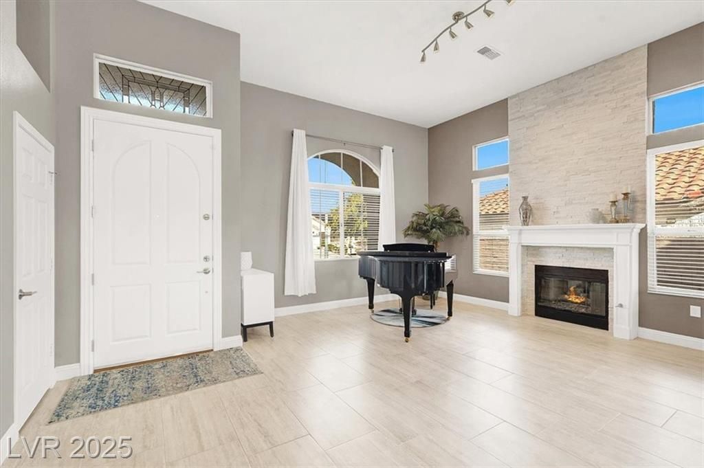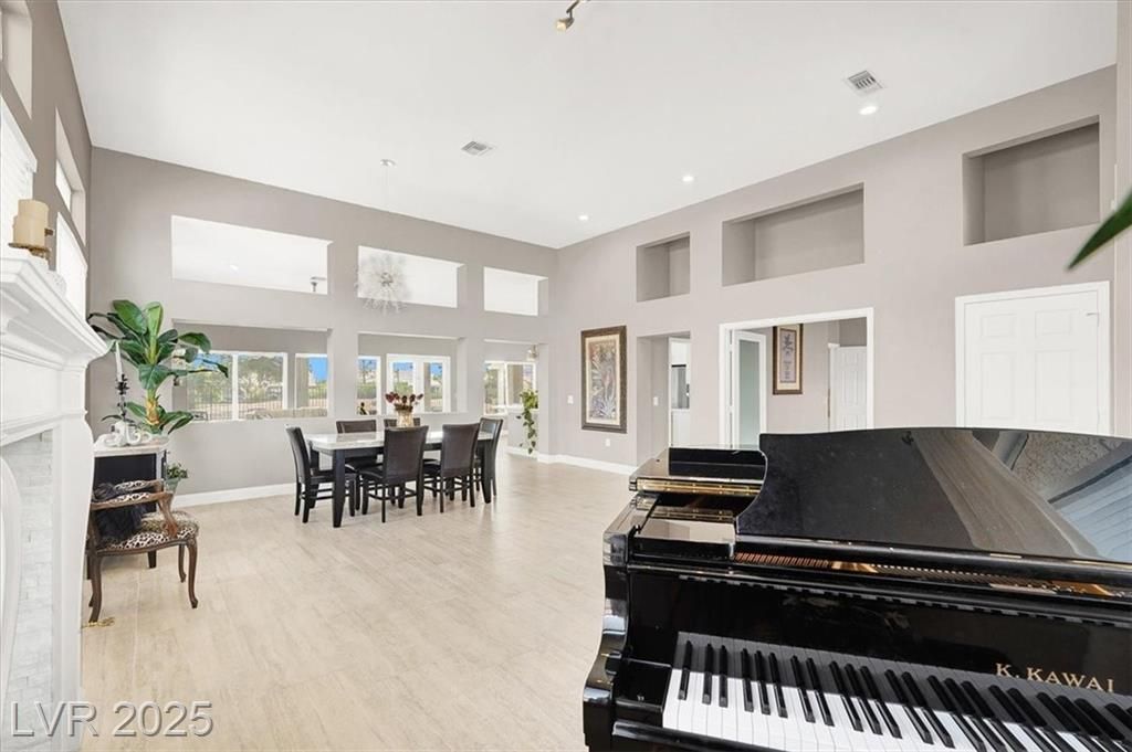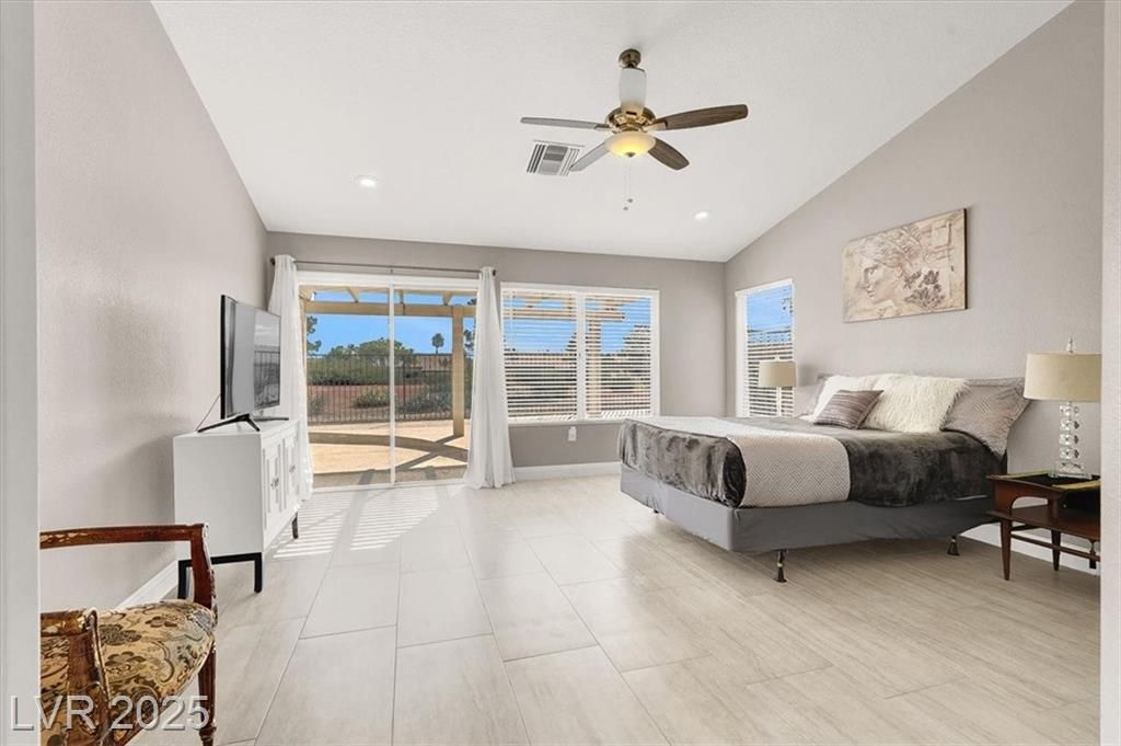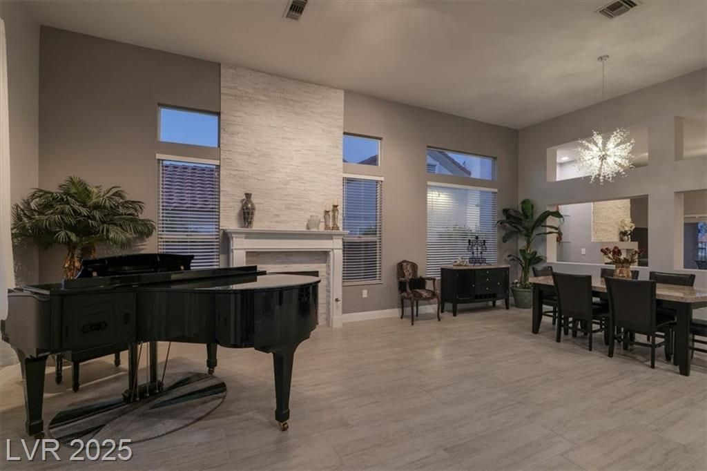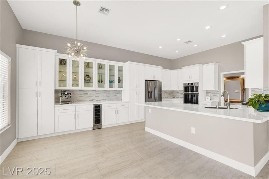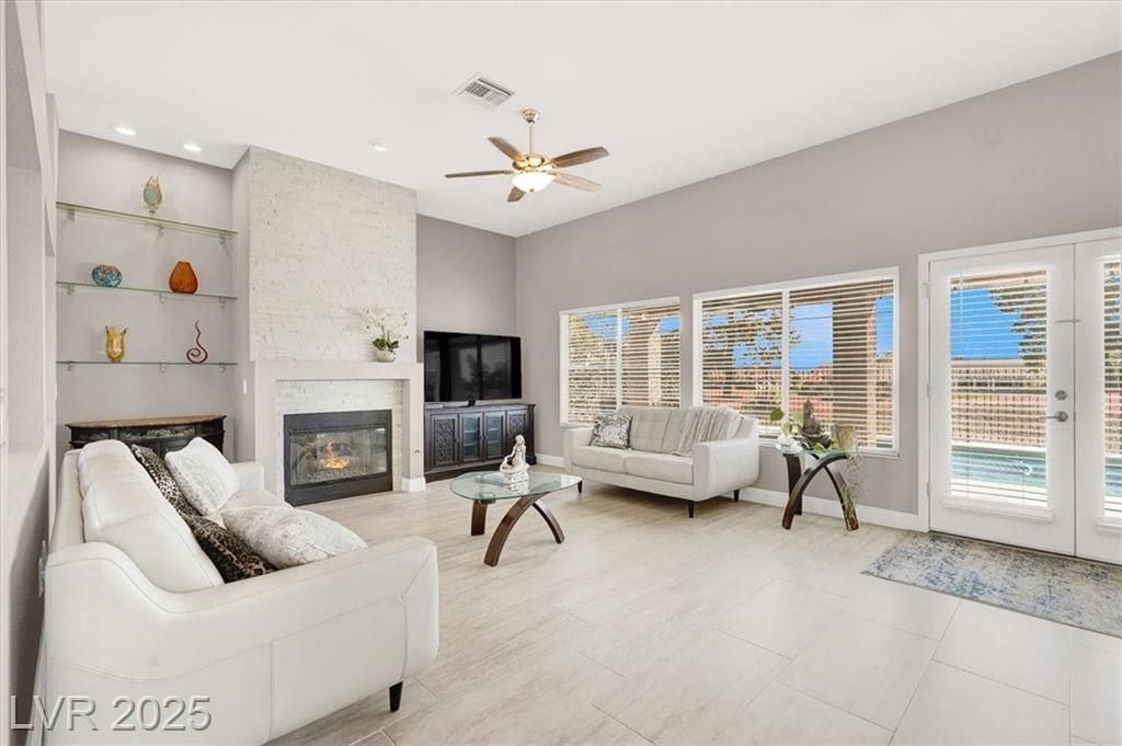 This beautifully reimagined residence offers unmatched views of the 12th fairway and surrounding mountains in the age-qualified Sun City Summerlin community, just a short walk from the clubhouse this fully remodeled 2,486 sq. ft. home is not a flip or production property—it's been renovated from the studs out with a new roof lining, custom flooring, designer paint and lighting, +carefully selected faucets & finishes to elevate the kitchen & baths. The open floor plan offers dual fireplaces in the formal living and family rooms. The chef’s kitchen with quartz counters, 42" flat-panel cabinets, custom backsplash, an oversized island & WiFi-enabled appliances & wine refrigerator. The spacious primary suite features a spa-like BA & generous walk-in closet, while a 3RD BD can serve office, or gym. Outside, the backyard oasis features a sparkling pool, spa, and landscape lighting—ideal for relaxation or entertaining. Truly one of the finest offerings in Sun City Summerlin.