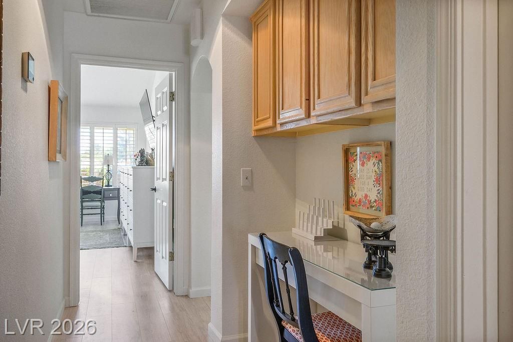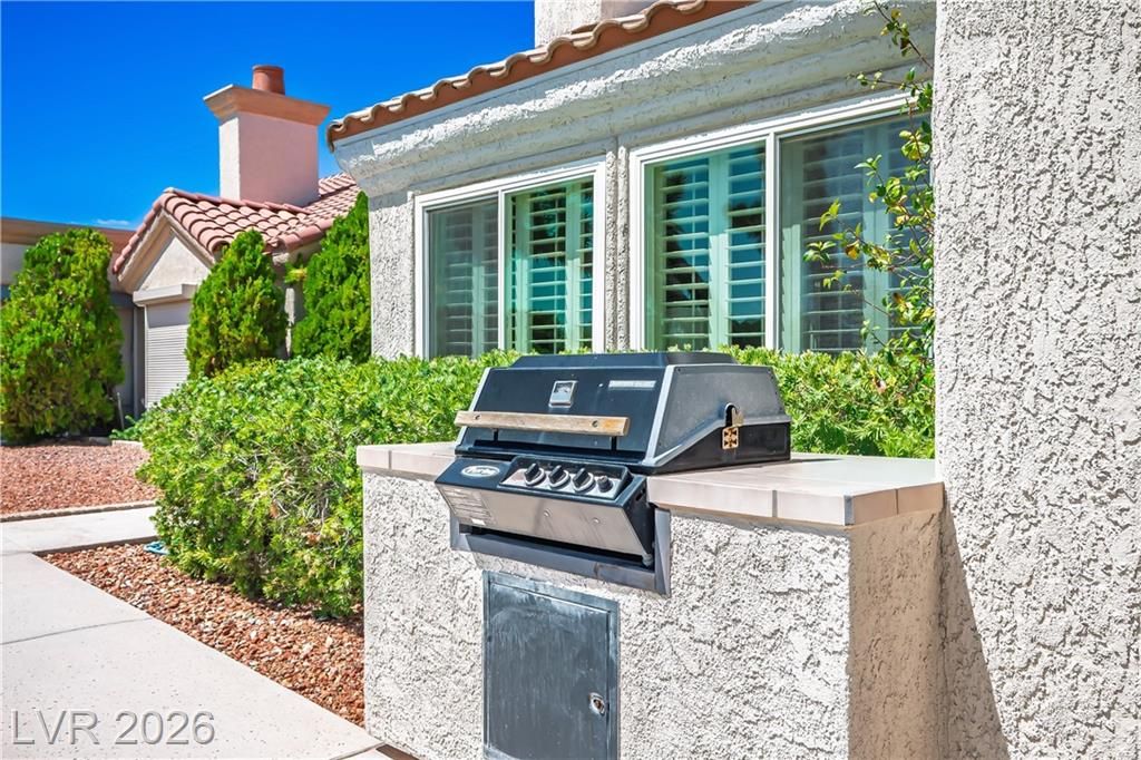 This exquisite home is perfect for those who adore both indoor & outdoor entertainment, this property is designed to impress. The first thing to greet you is synthetic grass lawn & pavered driveway & walkways. Then pass into the gated & expanded courtyard. Once inside discover a lavish interior that has been carefully curated for elegance & functionality. The kitchen features quartz countertops, a quartz covered island w/waterfall sides, tiled backsplash & stainless steel appliances, it is a culinary dream. The house is equipped w/Smart Cameras, Low-E windows, Plantation Shutters & a newer HVAC system emphasizing efficiency & modernity. The owners suite features a walk-in closet and redesigned twin sink & cabinet en suite. The Guest Bathroom has also been redesigned & remodeled. The third bedroom has been equipped w/a built office for added convenience. The backyard is an entertainer's dream w/A Built In BBQ Island, artificial turf, & extended patio cover. This home truly has it all.