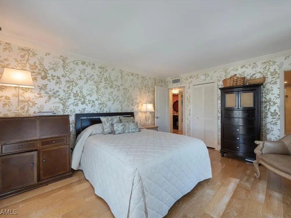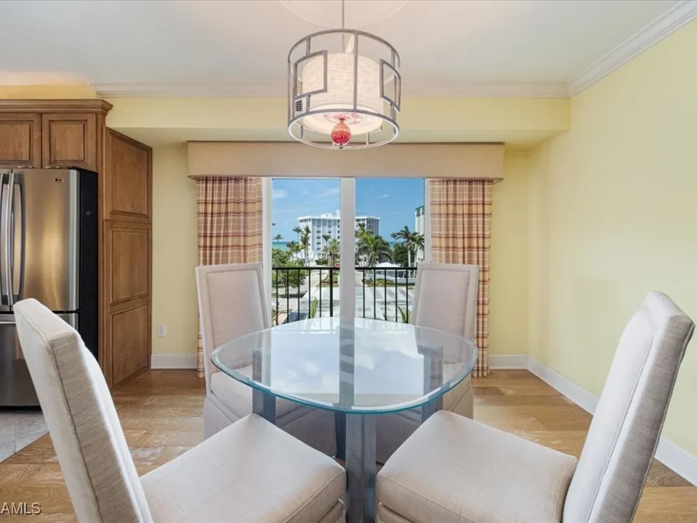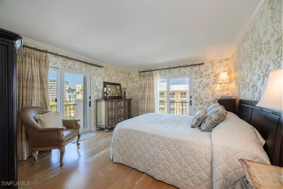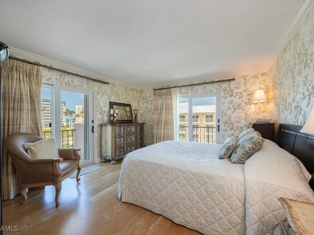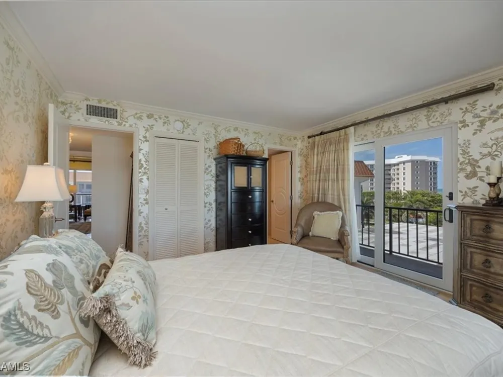 Discover coastal living at its finest in this exquisite top floor end-unit in the Bordeaux Club! Nestled within the prestigious Moorings neighborhood, this residence offers breathtaking views of the sparkling Gulf and direct access to pristine sandy beaches. Brand new Impact resistant windows and sliders were just installed! This thoughtfully designed unit features an open floor plan that seamlessly blends indoor and outdoor spaces, allowing natural light to flood the interiors. The modern kitchen is equipped with high-end appliances, sleek countertops, and ample storage, catering to both casual dining and entertaining. The primary suite serves as a serene retreat with expansive windows offering panoramic ocean vistas. It includes a luxurious en-suite bathroom with a glass shower enclosure and a walk-in closet. The guest bedroom is well-appointed, providing comfort and privacy for all. Residents of Bordeaux Club enjoy a range of amenities, including a heated swimming pool, fitness center, and beach access. The property is conveniently located near upscale shopping, fine dining, and cultural attractions, ensuring a vibrant lifestyle. Experience the epitome of Naples’ beachfront living in this remarkable condominium, where luxury meets tranquility.