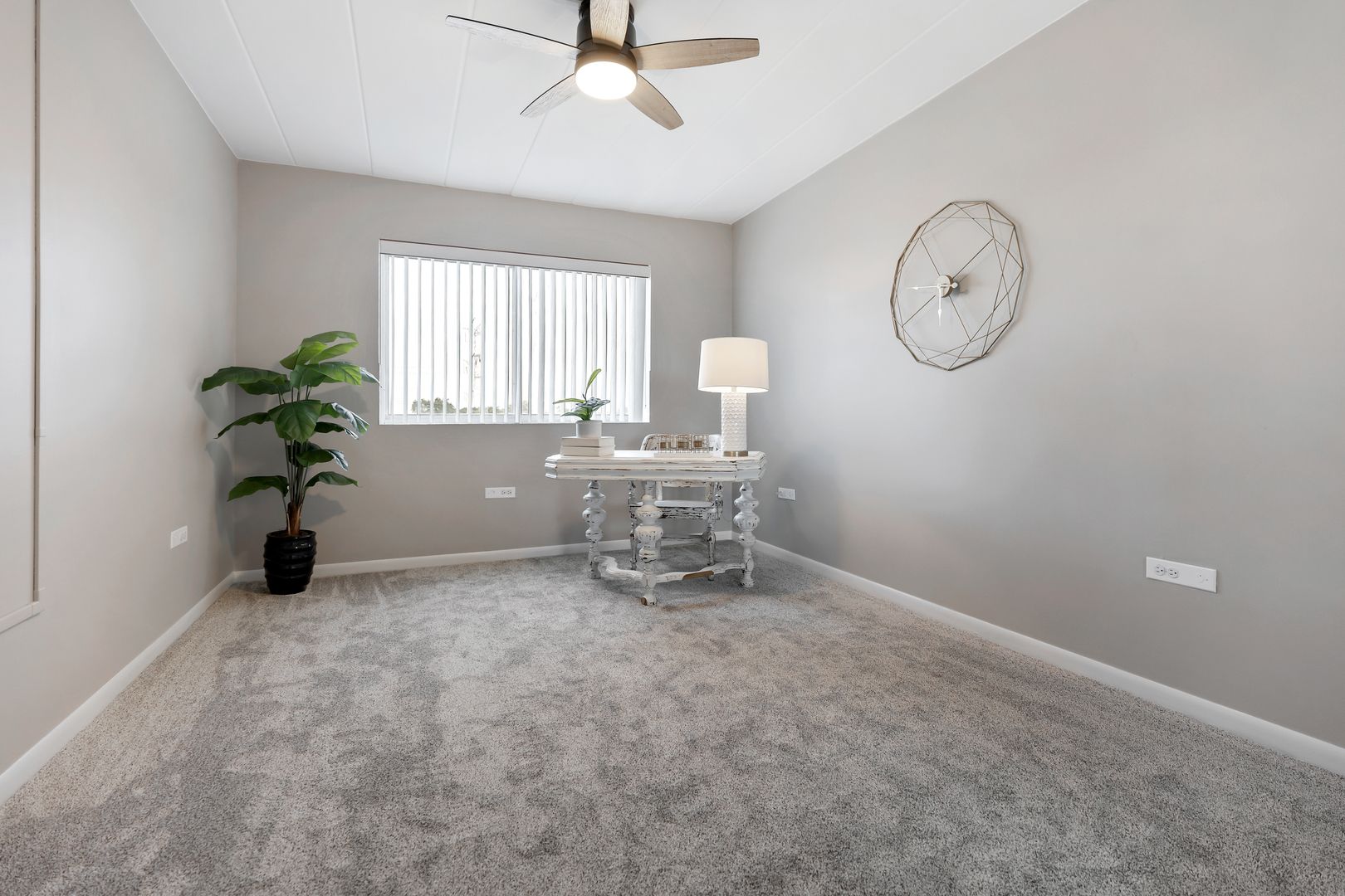NEWLY REMODELED 2-bedroom, 1-bathroom condo in a vibrant 55+ community in Downers Grove. This top-floor unit offers great convenience with same floor laundry. The newly renovated kitchen is a chef's delight, featuring elegant granite countertops, bright white cabinetry, and brand new appliances. The spacious living area flows seamlessly to the generously sized private balcony, perfect for entertaining or viewing. The master bedroom also boasts direct balcony access. The entire condo has just been re-painted and brand new carpet installed. Community amenities include a convenient first-floor library/community area for social gatherings and quiet reading, a well-maintained workout space for staying active, a community laundry room, and designated storage space. Enjoy the peaceful surroundings and easy access to Downers Grove's shops, restaurants, and parks. Experience living in this 55+ exceptional condo!