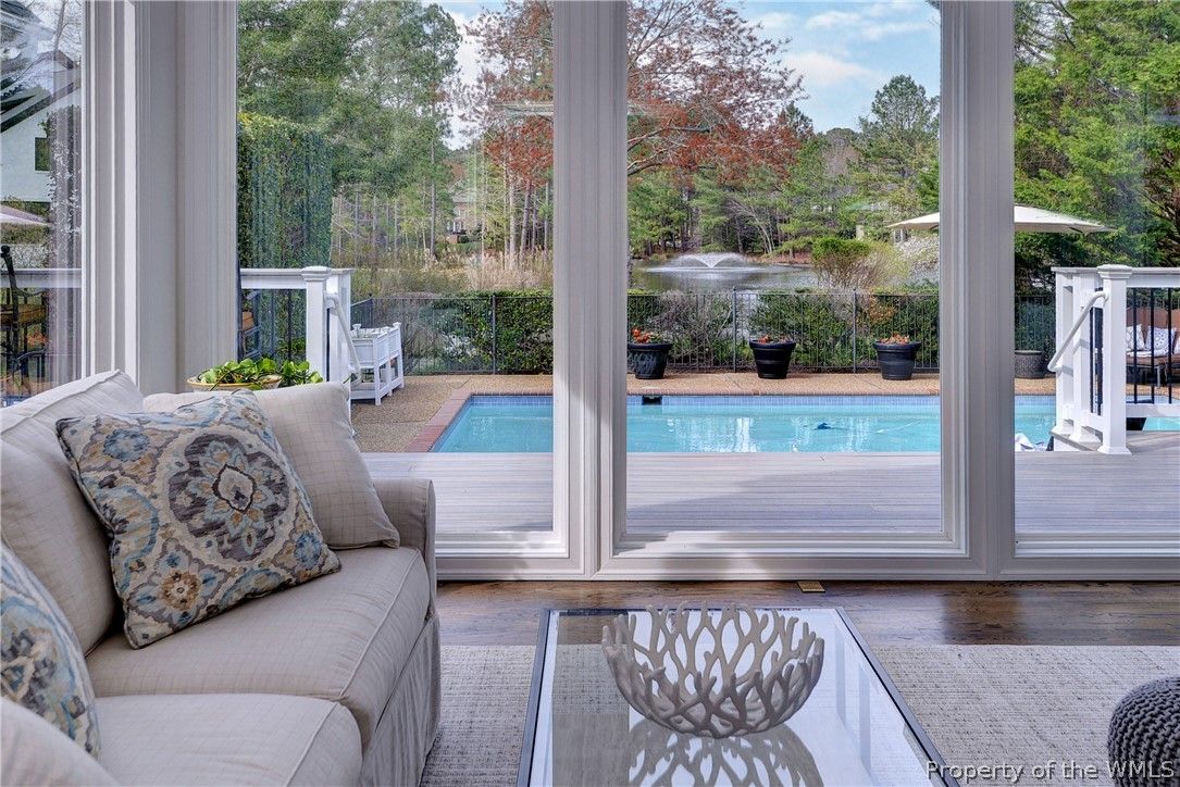 Fully renovated waterfront home overlooking a tranquil lake in the private country club community of Governor’s Land at Two Rivers, offering exceptional value for a fully renovated waterfront property with pool in one of Williamsburg’s most sought-after communities. Designed for both comfortable everyday living and effortless entertaining, this beautifully updated residence offers approximately 4,700+ square feet of light-filled living space. A welcoming entry opens to bright, open interiors with immediate views of the lake, creating a striking first impression. The renovated marble kitchen is equipped with Sub-Zero refrigeration, a Wolf range, and generous workspace, seamlessly connecting to the main living and dining areas. Expansive windows frame peaceful water views, enhancing the home’s sense of space, light, and tranquility. The spacious primary suite provides a private retreat with serene lake views and a spa-like bath. Additional bedrooms offer flexibility for guests, family, or home office needs. Outdoor living is a highlight, featuring a pool, terrace, and landscaped setting overlooking the water—ideal for relaxing, entertaining, or enjoying quiet evenings. The .65-acre corner lot offers both privacy and a sense of openness. Located within the prestigious Governor’s Land community, residents enjoy 24-hour security, scenic walking trails, and access to the renowned Two Rivers Country Club with golf, marina access, tennis, and dining. A rare opportunity to own a fully renovated, move-in ready waterfront home with pool in one of Williamsburg’s premier private communities.