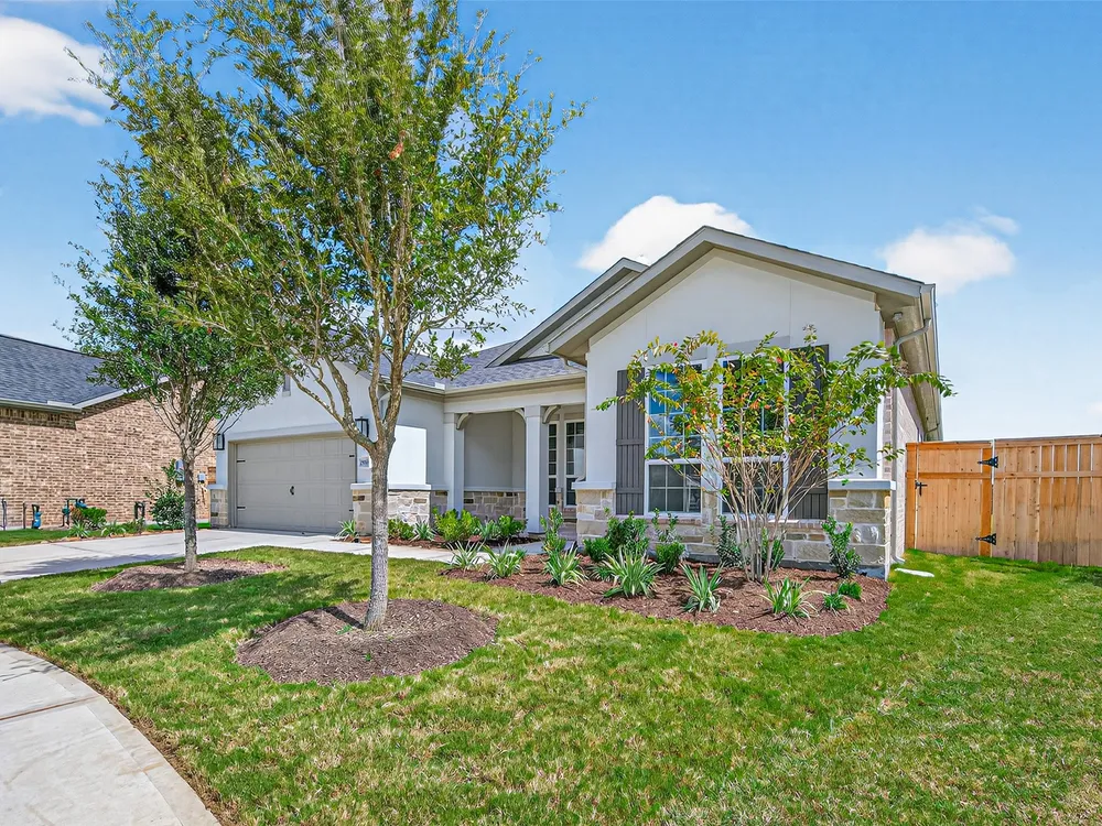 New Construction Built by Taylor Morrison. This stylish new home in Fulshear, Texas features the Cumberland floor plan with two bedrooms, a study, and 2,632 square feet of thoughtfully designed living space. Bonterra at Cross Creek Ranch is a gated 55+ community offering resort-style living just 32 miles west of Downtown Houston. Enjoy single-story homes, scenic trails, lakes, and amenities like a clubhouse, dog park, tennis courts, and a full-time Lifestyle Director. With access to both private and master-planned features, residents can relax with neighbors or entertain visiting family. Shopping and dining are minutes away. Additional Highlights Include: fireplace, study, bay window, 4' extension at garage, and walk in primary shower.