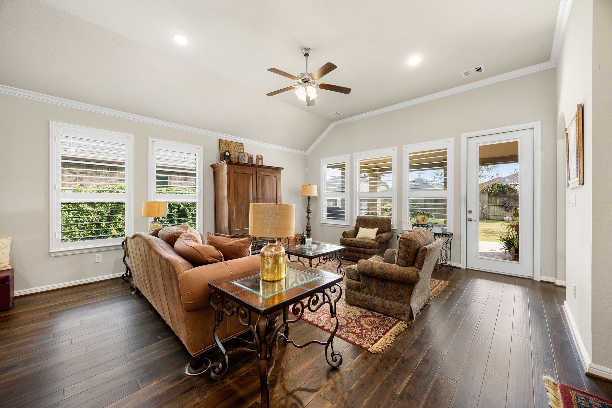 - Breakfast Bar, Double Vanity, Entrance Foyer, Handicap Access, Kitchen Island, Kitchen/Family Room Combo, Pantry, Quartz Countertops, Separate Shower, Tub Shower, Makeup/Vanity Space, Walk-In Pantry, Window Treatments, Ceiling Fan(s), Living/Dining Room, Programmable Thermostat