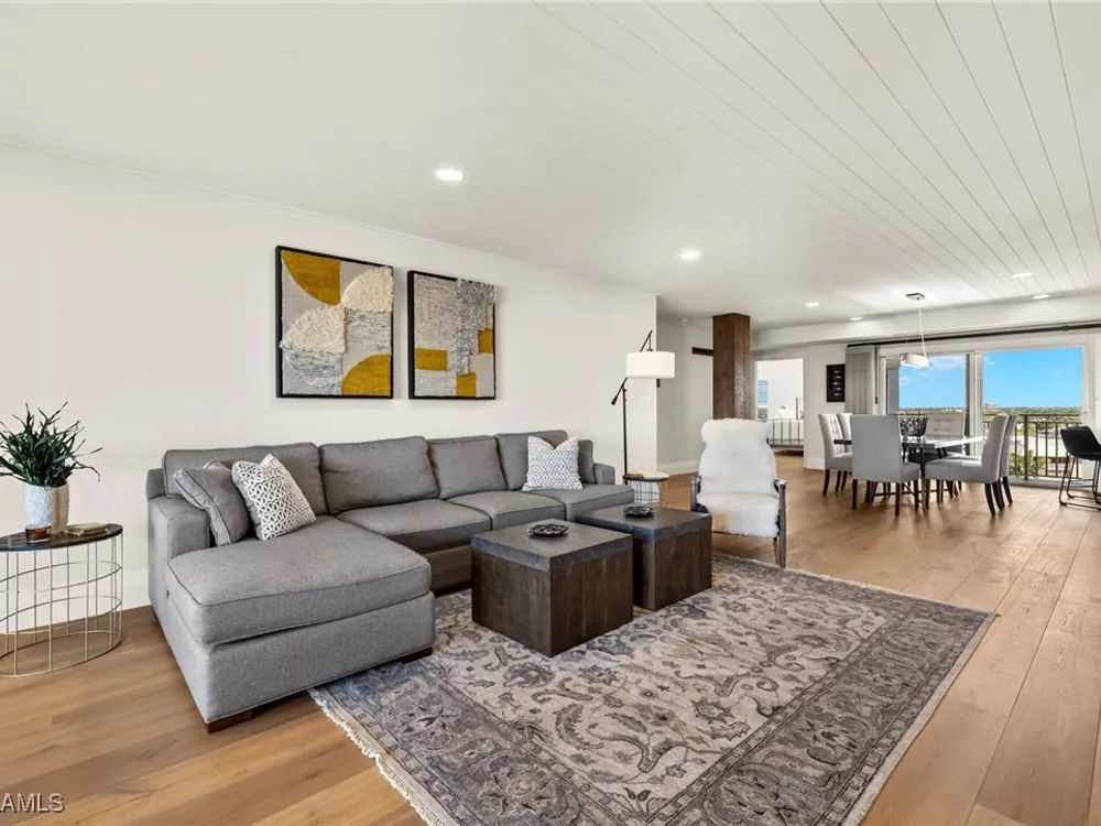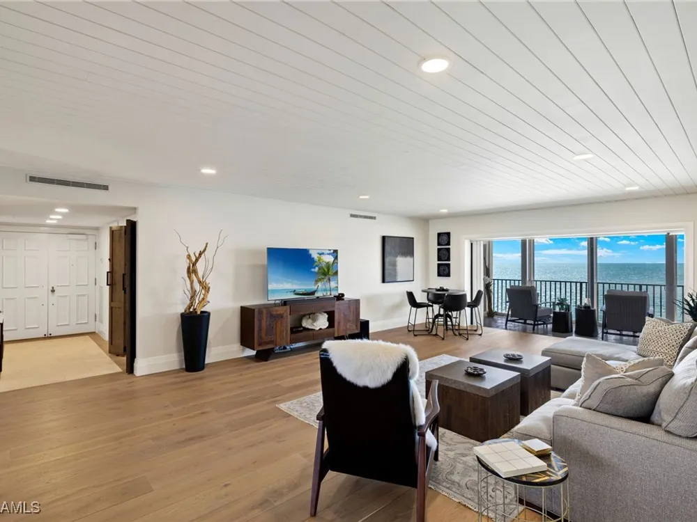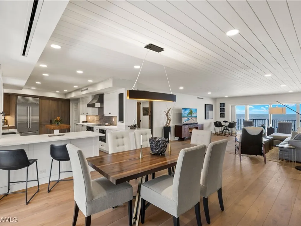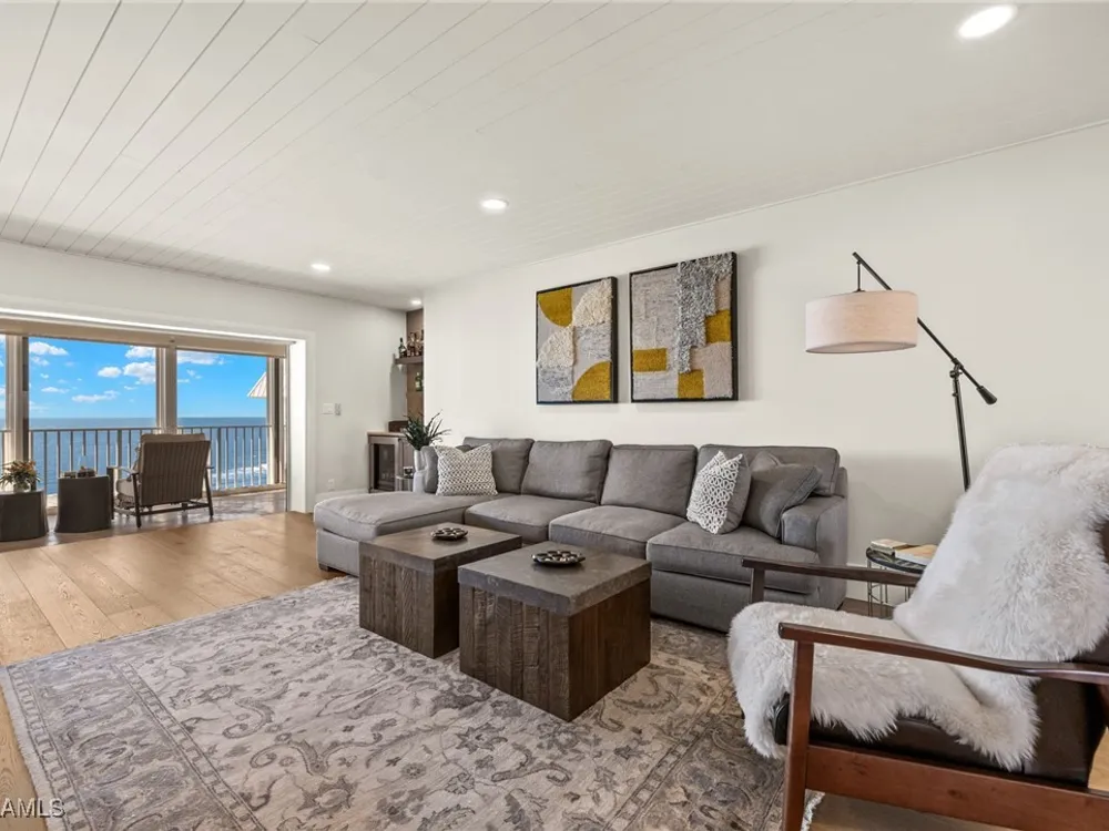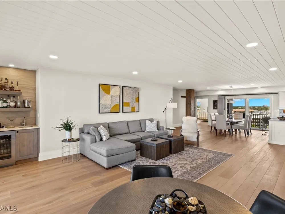 Welcome to Westgate - This penthouse end unit boasts stunning gulf and bay views to enjoy both sunrise and sunsets. This 3 Bedroom/3.5 Bathroom unit in over 2800 square feet of casually elegant living space has been thoughtfully redesigned and recreated ideal for today's modern living. This fully custom renovation is brought to you by renowned Borelli Construction of Naples. Enter into a welcoming foyer which opens to a fabulous open-concept living space redesigned in order to capture the expansive gulf and bay views. Gorgeous light oak wide plank hardwood floors imported from Italy, reclaimed barn wood columns and doors. Spacious living/dining rooms with wet bar ideal for entertaining. A true chef's eat-in kitchen replete with custom shaker cabinetry, Sub-Zero refrigerator, Sub-Zero column wine refrigerator, ice maker, Bosch cooktop, oven and dishwasher, honed quartz countertops and breakfast bar. Master suite oasis with spacious bedroom with gulf views and access to lanai, walk-in closet with custom built-ins and a spa-like bathroom including oversized walk-in shower, double vanity and tranquil gulf view. 2 Brand new Air Conditioners! With a desirable split floor plan the 2 guest suites are on the opposite side of the unit and each feature spacious bedrooms with walk-in closets and en-suite baths. Convenient full-sized laundry room with great storage and a very chic powder room with reclaimed wood double doors. Large enclosed lanai is ideal to gaze at the gulf with your morning coffee or evening cocktails. Oversized 1-car carport plus storage. Gorgeous newly designed lobby, full-time desk receptionist plus incredible amenities including a sunset deck overlooking the beach and gulf, club room perfect for entertaining including 2 built-in outdoor kitchens including Viking grills, fitness room, pool and convenient bike/gear storage. No expense spared in this truly exceptional custom renovation with meticulous attention to detail with only the highest quality materials and craftsmanship. Convenient location with easy access to Venetian Village, Waterside Shops and downtown Naples renowned worldwide for its fine dining and shopping.