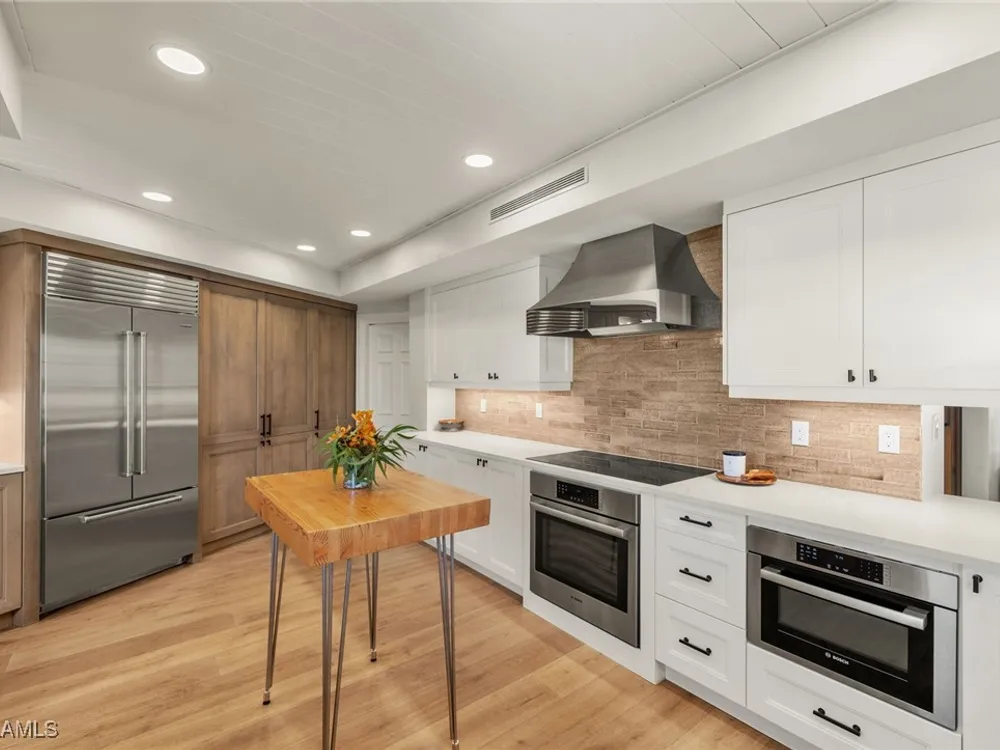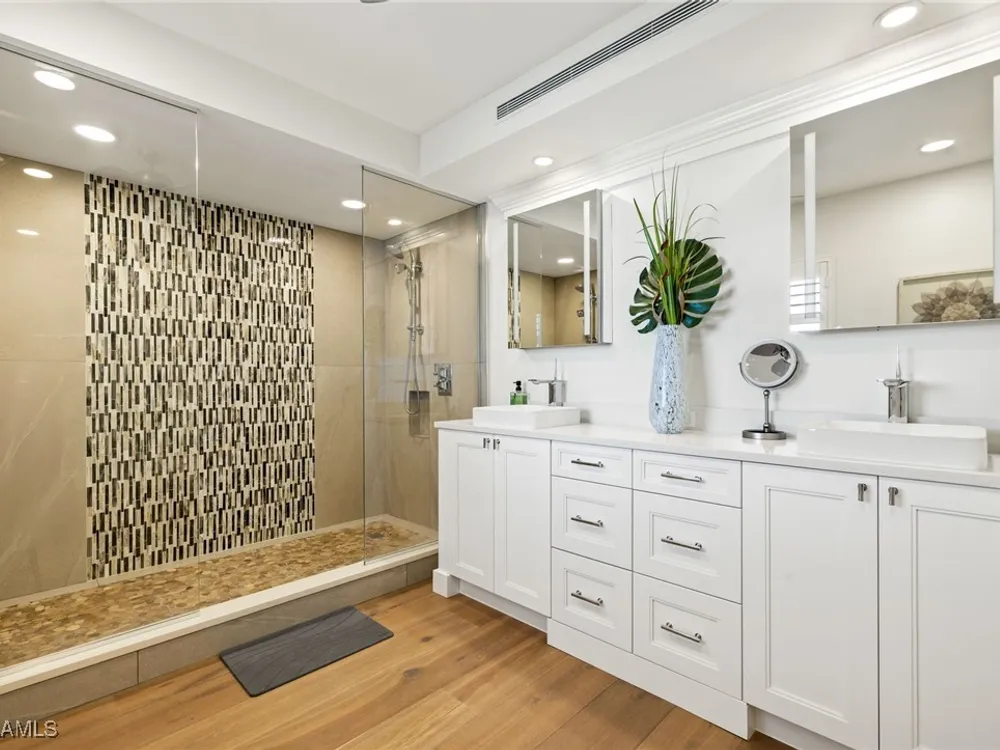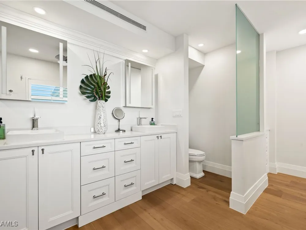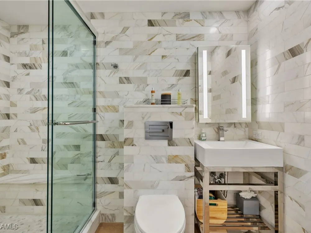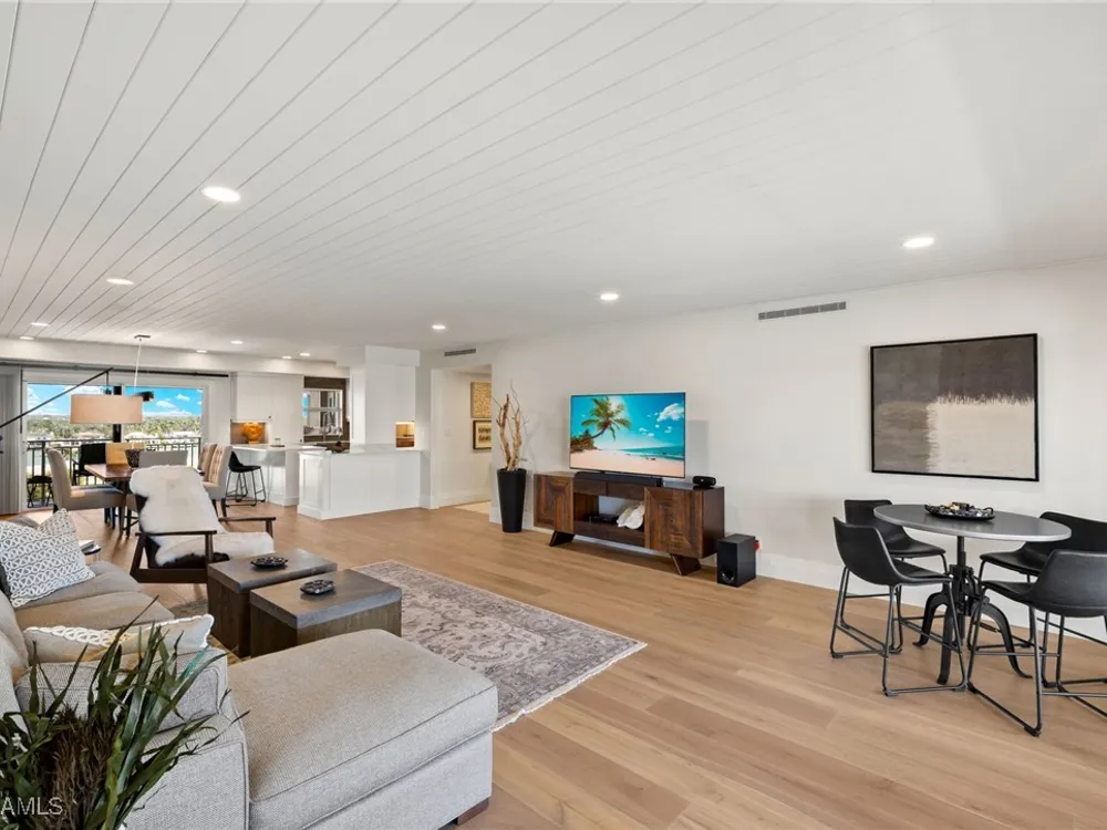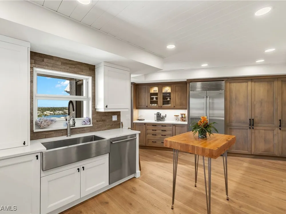 Welcome to Westgate - This penthouse end unit boasts stunning gulf and bay views to enjoy both sunrise and sunsets. This 3 Bedroom/3.5 Bathroom unit in over 2800 square feet of casually elegant living space has been thoughtfully redesigned and recreated ideal for today's modern living. This fully custom renovation is brought to you by renowned Borelli Construction of Naples. Enter into a welcoming foyer which opens to a fabulous open-concept living space redesigned in order to capture the expansive gulf and bay views. Gorgeous light oak wide plank hardwood floors imported from Italy, reclaimed barn wood columns and doors. Spacious living/dining rooms with wet bar ideal for entertaining. A true chef's eat-in kitchen replete with custom shaker cabinetry, Sub-Zero refrigerator, Sub-Zero column wine refrigerator, ice maker, Bosch cooktop, oven and dishwasher, honed quartz countertops and breakfast bar. Master suite oasis with spacious bedroom with gulf views and access to lanai, walk-in closet with custom built-ins and a spa-like bathroom including oversized walk-in shower, double vanity and tranquil gulf view. 2 Brand new Air Conditioners! With a desirable split floor plan the 2 guest suites are on the opposite side of the unit and each feature spacious bedrooms with walk-in closets and en-suite baths. Convenient full-sized laundry room with great storage and a very chic powder room with reclaimed wood double doors. Large enclosed lanai is ideal to gaze at the gulf with your morning coffee or evening cocktails. Oversized 1-car carport plus storage. Gorgeous newly designed lobby, full-time desk receptionist plus incredible amenities including a sunset deck overlooking the beach and gulf, club room perfect for entertaining including 2 built-in outdoor kitchens including Viking grills, fitness room, pool and convenient bike/gear storage. No expense spared in this truly exceptional custom renovation with meticulous attention to detail with only the highest quality materials and craftsmanship. Convenient location with easy access to Venetian Village, Waterside Shops and downtown Naples renowned worldwide for its fine dining and shopping.
