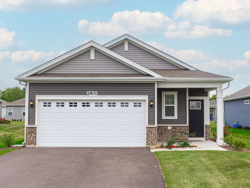 Excellent Location! Welcome to 2901 Harnish Dr, a brand-new construction home just minutes from Target, Trader Joe's, Walmart, and all the shopping and dining along Randall Road. This single-level home is loaded with modern features, including stainless steel appliances (refrigerator with ice maker, front-load washer and dryer), quartz countertops, and durable luxury vinyl plank flooring throughout the main living areas. The kitchen is a true highlight with an oversized island with stool seating, 42-inch designer cabinetry with crown molding, and soft-close drawers. Additional upgrades include a Rinnai tankless water heater, custom light fixtures, designer hardware, and fresh custom paint. The spacious primary suite offers a private bath with a raised dual-sink quartz vanity, walk-in seated shower with ceramic tile walls, and clear glass shower doors. Enjoy the convenience of America's Smart Home Technology, featuring a video doorbell, Honeywell smart thermostat, Amazon Echo Pop, smart door lock, and Deako smart light switches. Other features include a fully finished 2-car garage with an extra-long driveway, full sod and landscaping, a covered front and back porch, and beautiful park views with no future building planned in front. A transferable builder warranty provides peace of mind, allowing the new owner to address even the smallest items directly with the builder. Located in a 55+ community (only one resident must be 55 or older).
