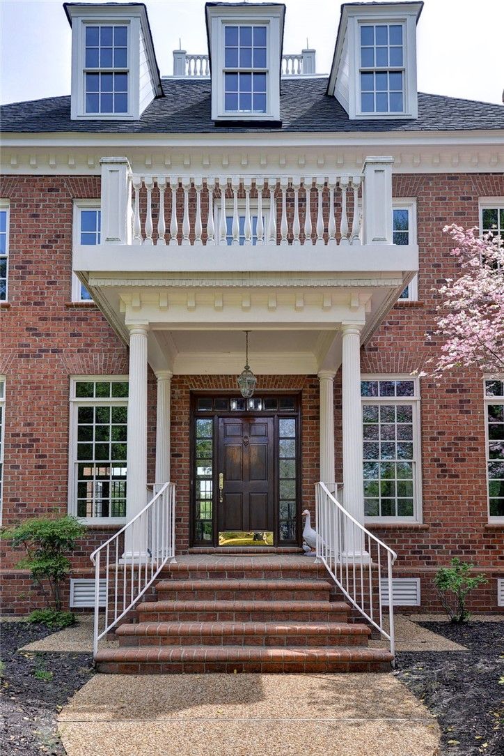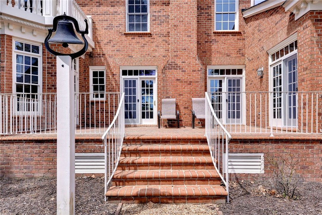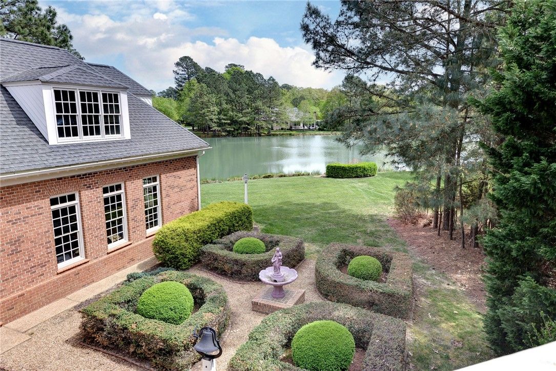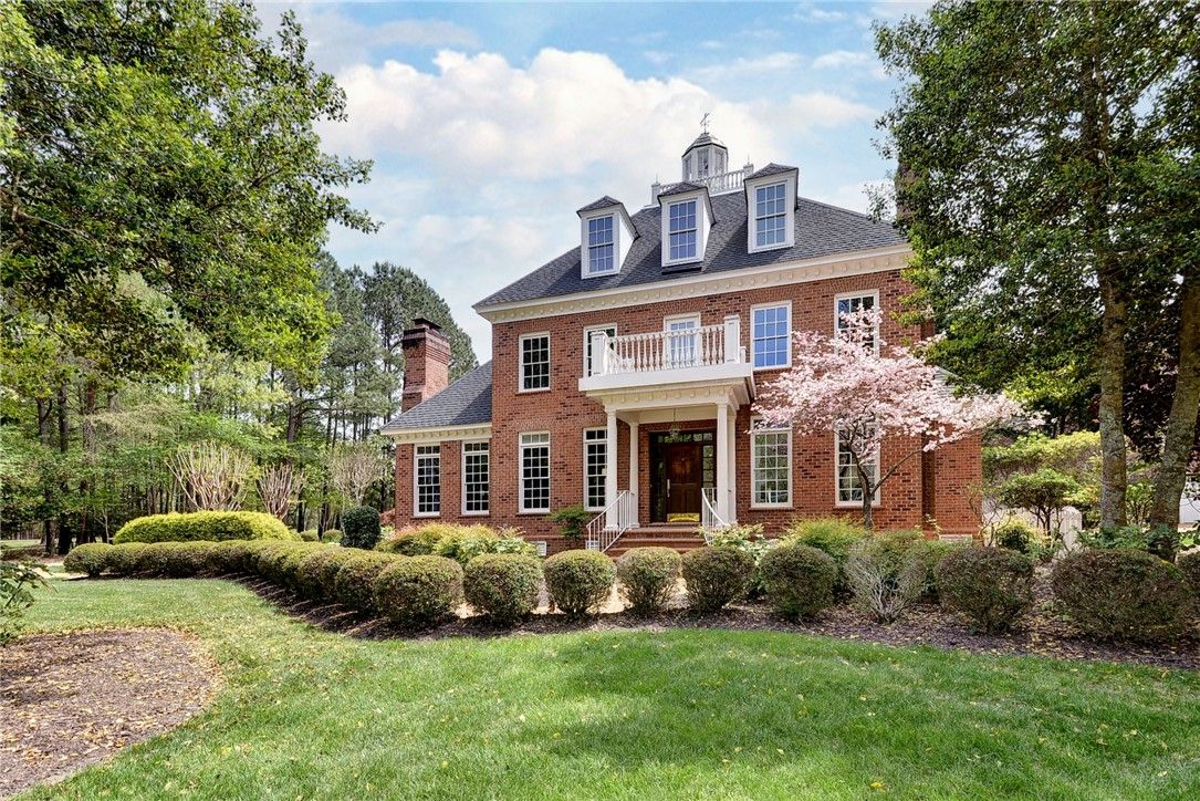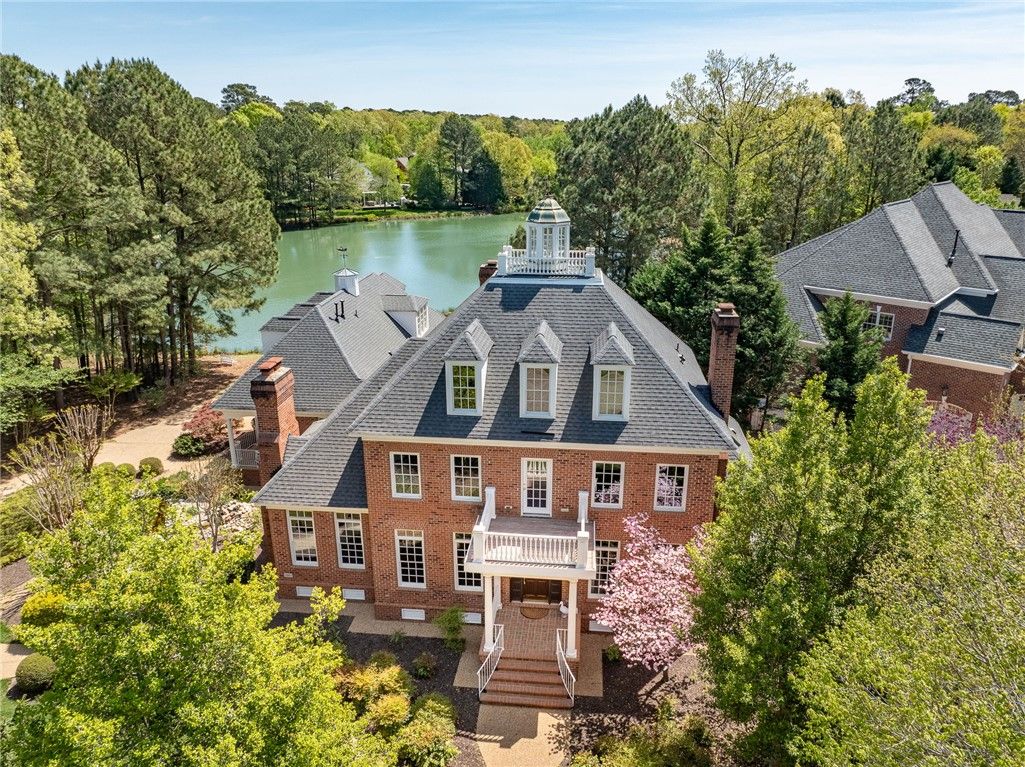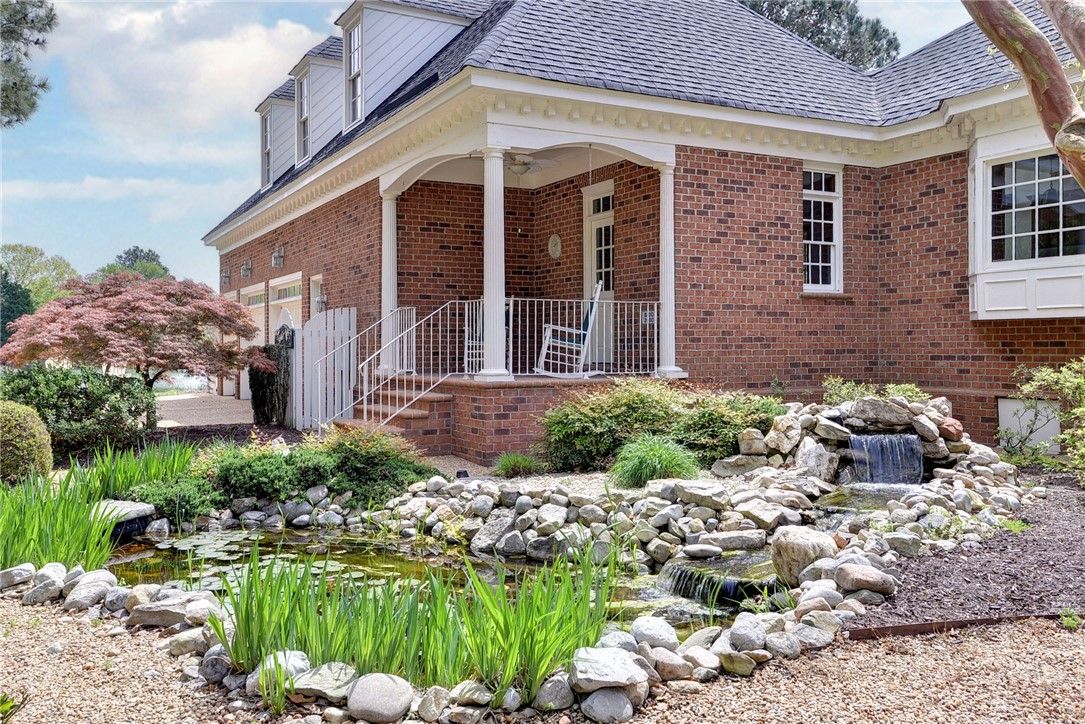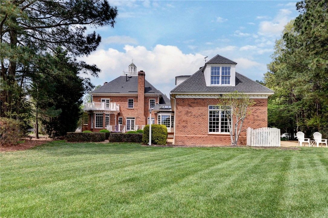 Beautifully Built Custom Colonial with Water Views! This Brick Home is Fashioned after the Governors Palace right up to the Copper Cupola!. 4 Fireplaces , Custom Archways & Moldings,Tray Ceilings and Unique Colonial Character abound. The Front Living Room Flows into the Cozy Family Room w/Gas Fireplace. Step into the Kitchen with Barn Wood Beams, Stainless appliances and a Cathedral Ceiling Dining Area. The Kitchen Fireplace is a replica of the John Randolph Kitchen Fireplace. The 1st Floor Primary Bedroom has its own Fireplace, Huge Walk In Closet and Attached Bath with 2 Sinks a Soaking Tub and Separate Tiled Shower. Upstairs are 3 Bed, a Full Bath and a Cozy Den Fireplace. There are also 2 Balconies. There is a Bonus Room over garage. The 3rd Floor offers an abundance of Storage & access to the Cupola for additional views. Enjoy evenings on the side Porch or Brick Deck overlooking the private Oasis w/ Water Views. 2.5 Car Garage.