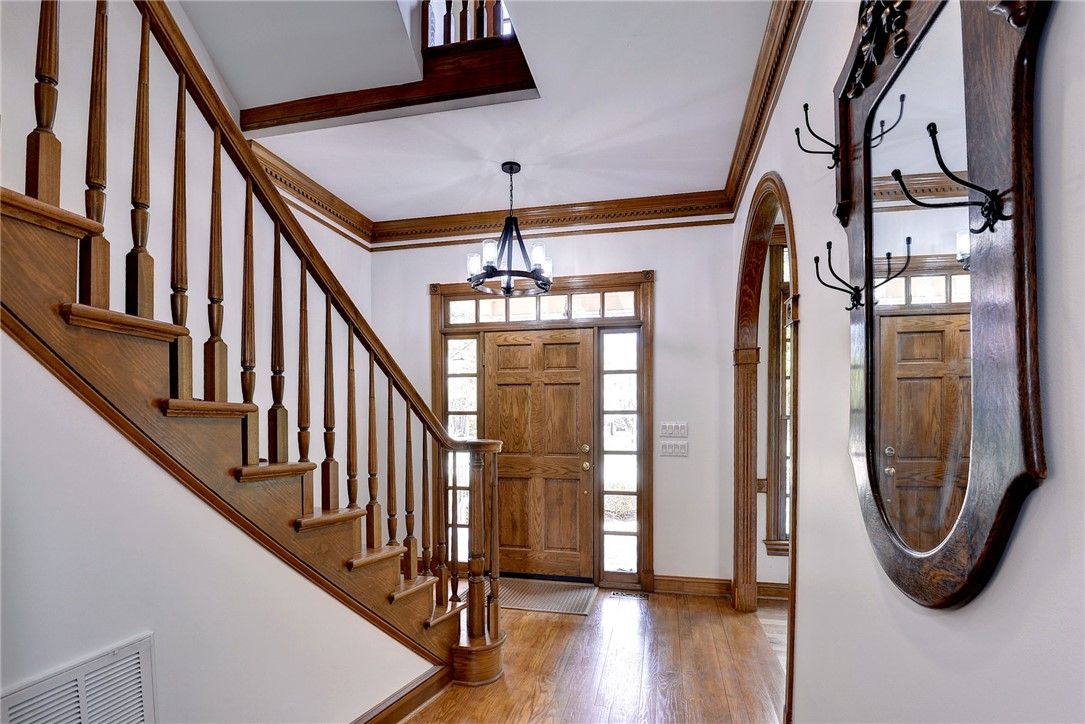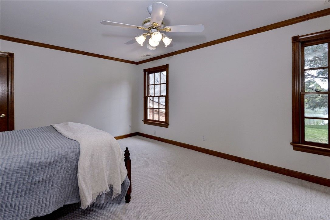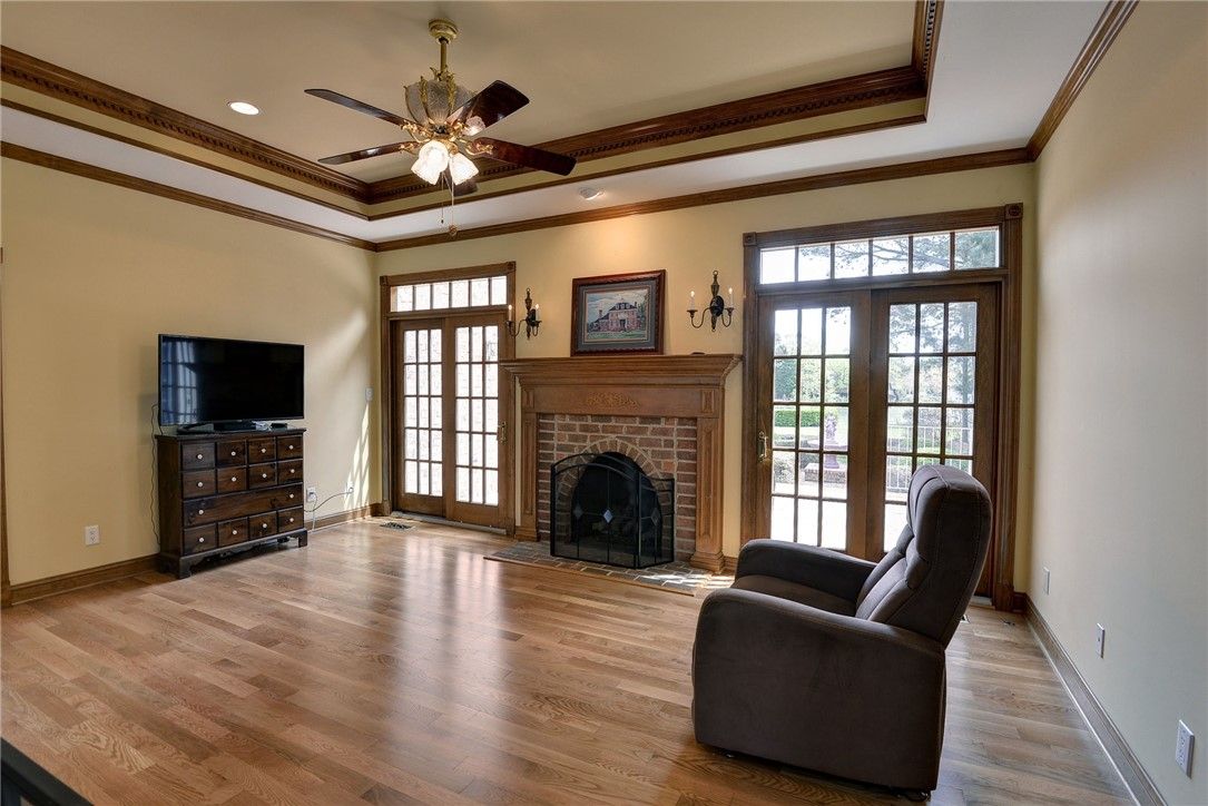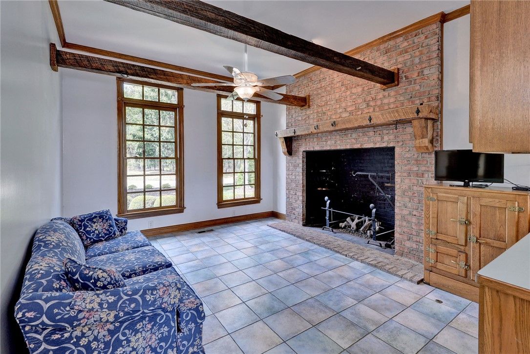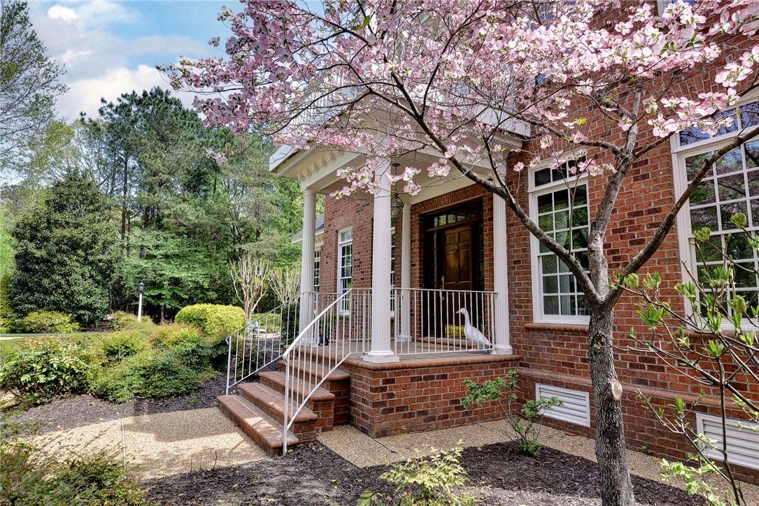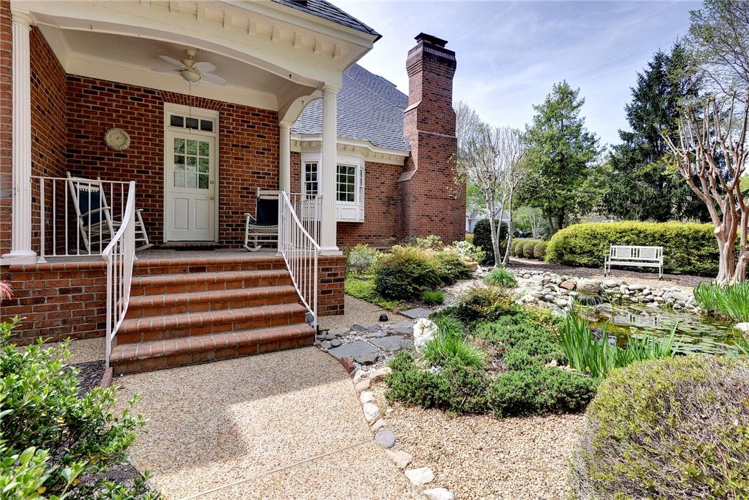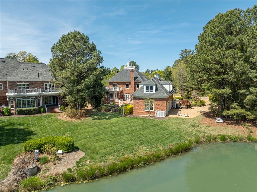 Beautifully Built Custom Colonial with Water Views! This Brick Home is Fashioned after the Governors Palace right up to the Copper Cupola!. 4 Fireplaces , Custom Archways & Moldings,Tray Ceilings and Unique Colonial Character abound. The Front Living Room Flows into the Cozy Family Room w/Gas Fireplace. Step into the Kitchen with Barn Wood Beams, Stainless appliances and a Cathedral Ceiling Dining Area. The Kitchen Fireplace is a replica of the John Randolph Kitchen Fireplace. The 1st Floor Primary Bedroom has its own Fireplace, Huge Walk In Closet and Attached Bath with 2 Sinks a Soaking Tub and Separate Tiled Shower. Upstairs are 3 Bed, a Full Bath and a Cozy Den Fireplace. There are also 2 Balconies. There is a Bonus Room over garage. The 3rd Floor offers an abundance of Storage & access to the Cupola for additional views. Enjoy evenings on the side Porch or Brick Deck overlooking the private Oasis w/ Water Views. 2.5 Car Garage.