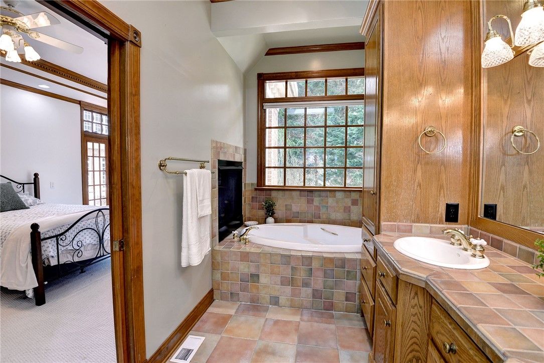 - Attic Access, Bookcases, Built-in Features, Tray Ceiling(s), Ceiling Fan(s), Cathedral Ceiling(s), Dining Area, Double Vanity, Eat-in Kitchen, High Ceilings, Kitchen Island, Pantry, Walk-In Closet(s), Window Treatments