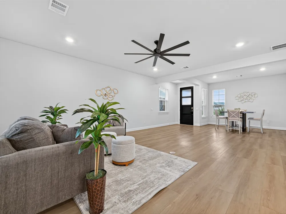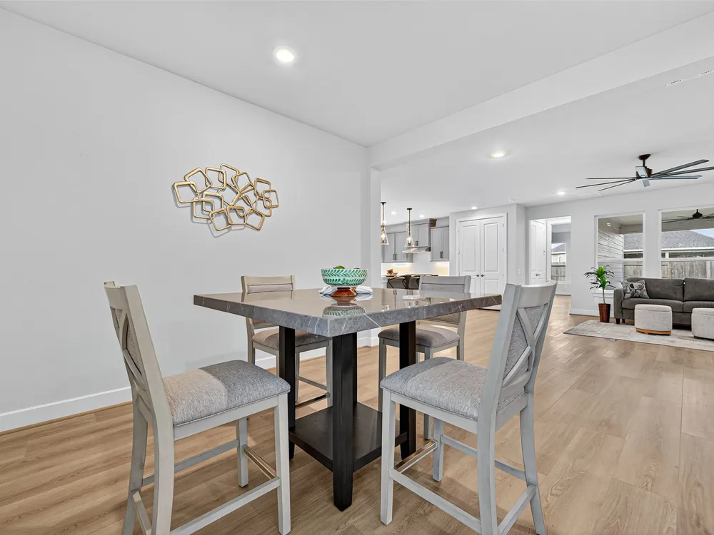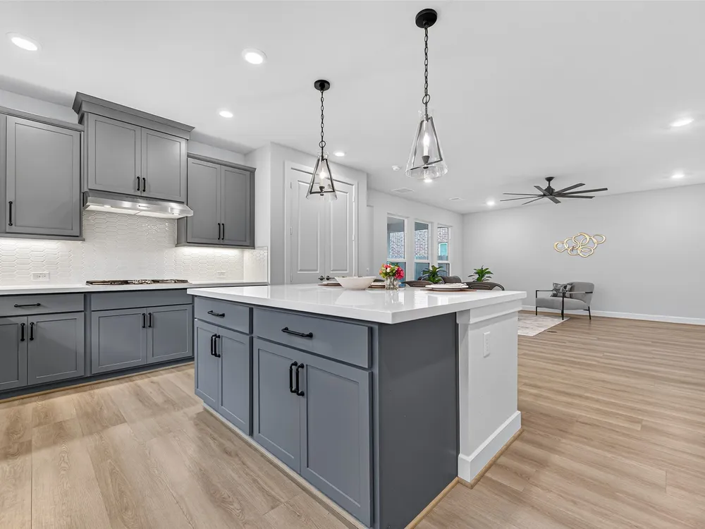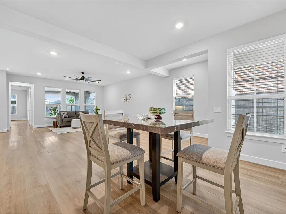 Welcome to this 2023-built single-story home in the sought-after Bonterra at Cross Creek Ranch 55+ community. Offering 2 bedrooms, 2 baths, and 1,791 sq. ft., this thoughtfully designed residence blends comfort with modern style. The open-concept floor plan features a spacious family room and dedicated dining area filled with natural light. The chef-inspired kitchen boasts quartz countertops, a large island with bar seating, a gas cooktop with vent hood, stainless steel appliances and under-cabinet lighting. The private primary suite offers a dual-sink granite vanity, large walk-in shower, and generous closet. Additional highlights include wide-plank flooring, designer lighting, laundry room with storage, and a 2-car garage. Outdoors, relax on the covered patio with ceiling fan overlooking the fully fenced backyard. Bonterra residents enjoy resort-style amenities including a clubhouse, pool, and pickleball courts.