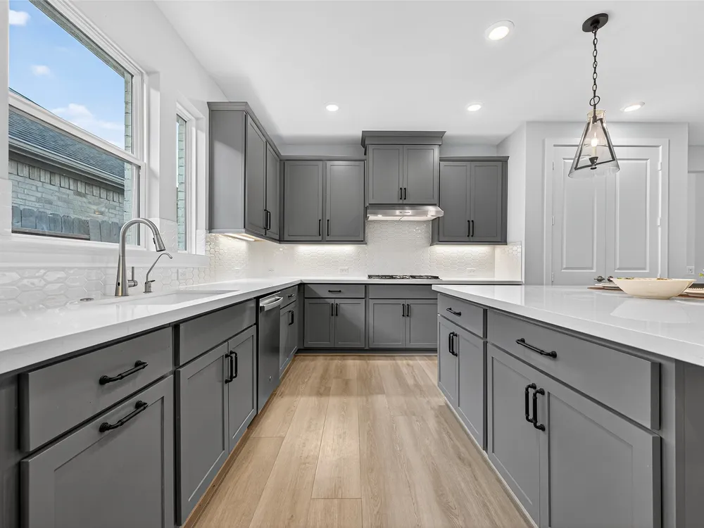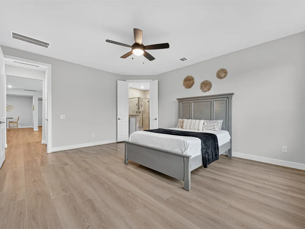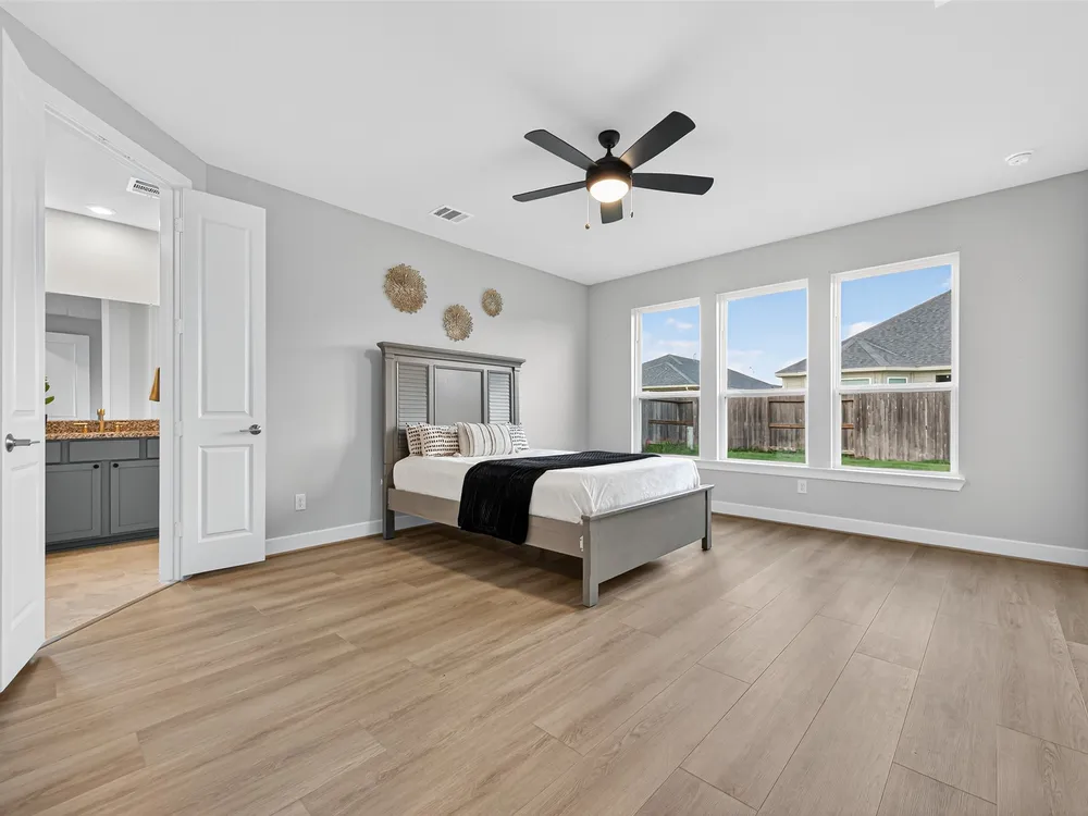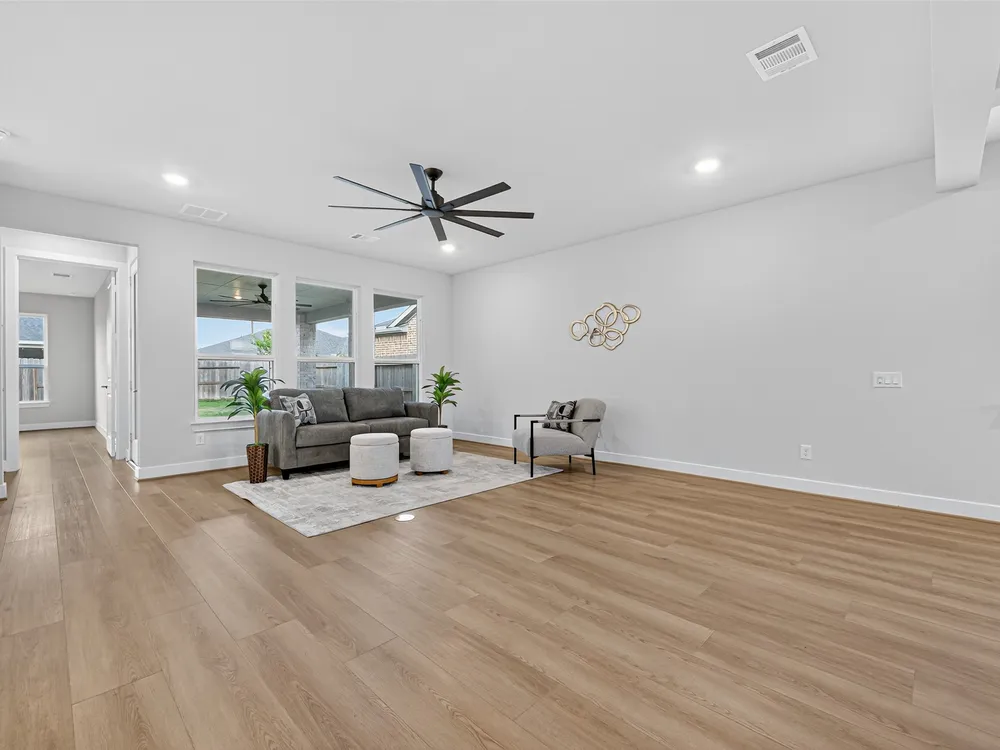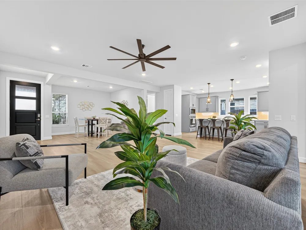 - Breakfast Bar, Double Vanity, High Ceilings, Kitchen Island, Kitchen/Family Room Combo, Pantry, Quartz Countertops, Tub Shower, Window Treatments, Ceiling Fan(s)