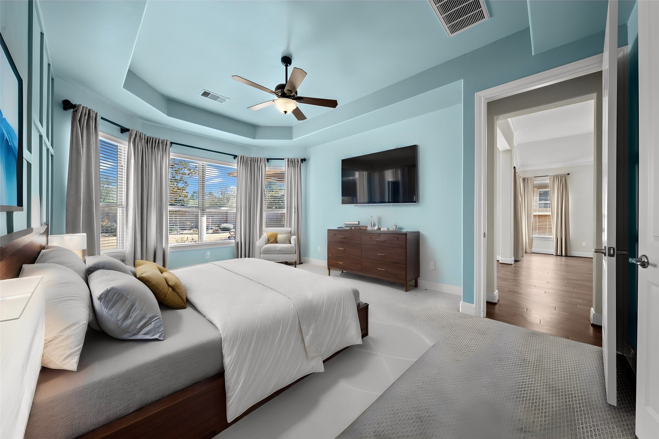 Over $36,000 in upgrades!! A/C replaced in 2025 carpet and paint in 2024! Relaxing outdoor living with an oversized covered patio plus additional space. Immerse yourself in the pinnacle of downsized luxury at Bonterra's exclusive 55+ gated community! Step into a world of opulence in this meticulously crafted 1-story home featuring 2 bedrooms, 2 baths, and beautiful finishes at every turn. From soaring ceilings to artisanal accent walls, every detail exudes elegance and charm. Step outside to your private oasis, complete with a tranquil covered patio and double ceiling fans—a sanctuary from the Texas sun. But the indulgence doesn't end there—Bonterra's Clubhouse offers refreshing poolside lounging to spirited games of bocce and pickleball. Embrace a lifestyle of leisure and sophistication at 29019 Turning Springs Ln.—your gateway to unparalleled bliss!