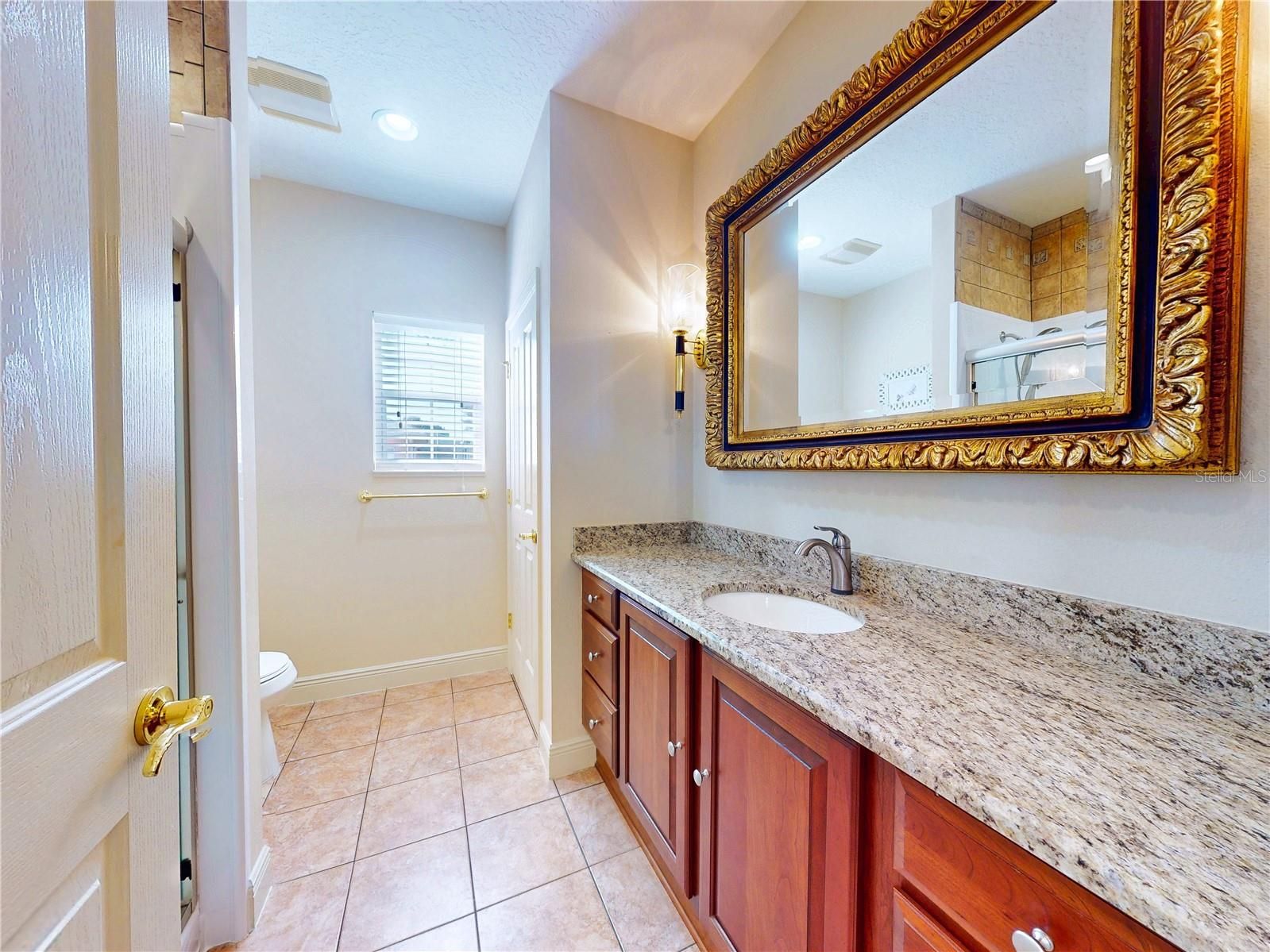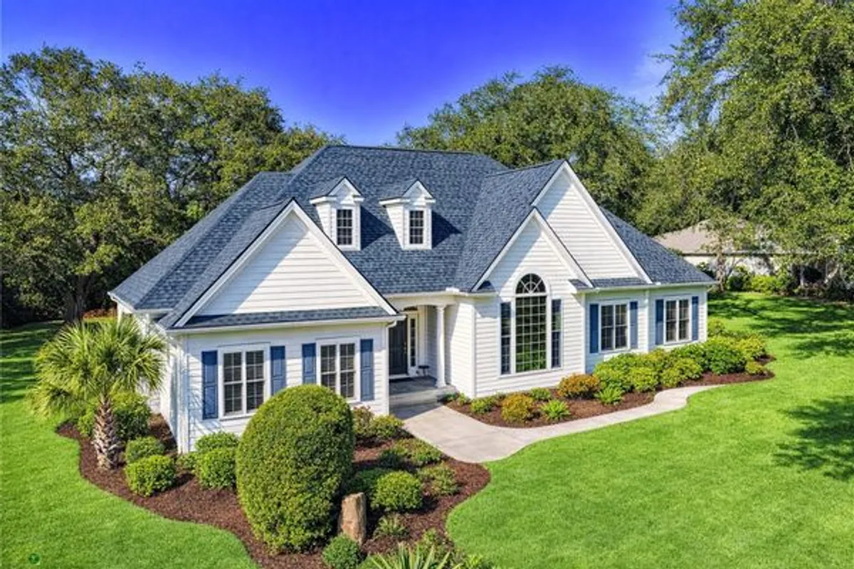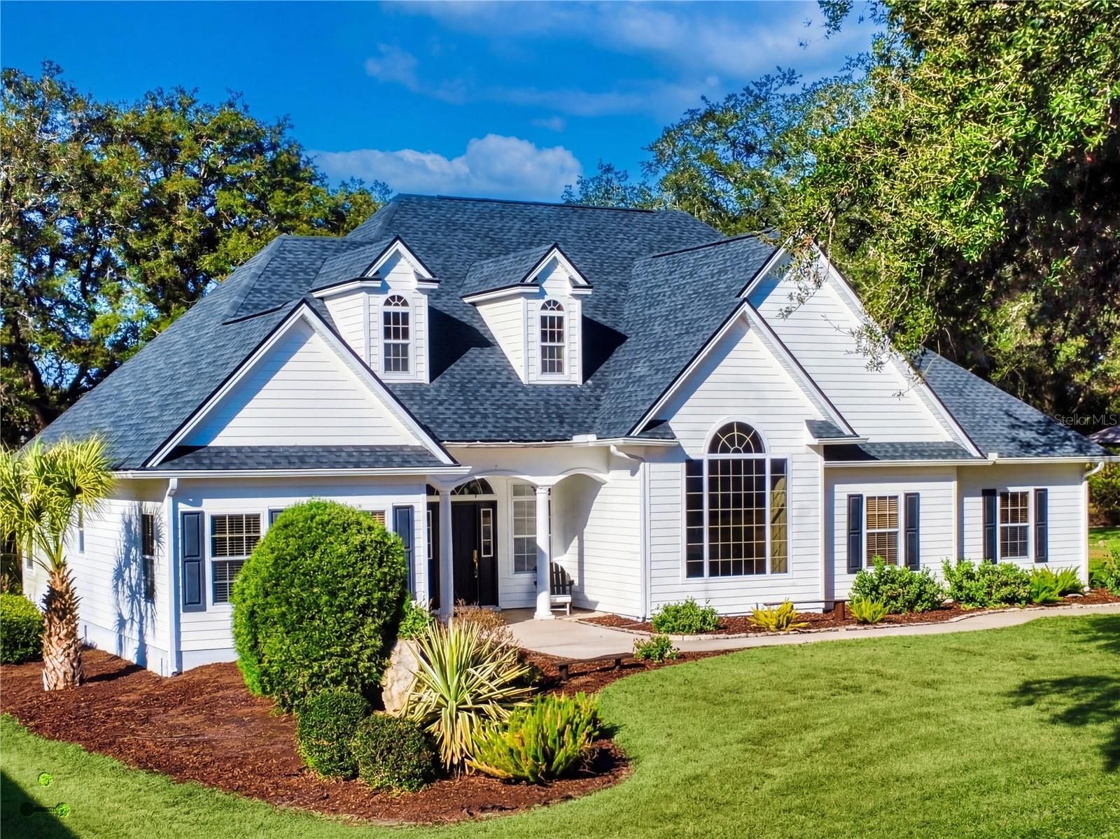 TRUE TO ITS NEW ORLEANS name and Southern charm, this LOVELY PREMIER home is nestled beneath majestic live oak trees on an OVERSIZED ¾ ACRE lot in the ALL PREMIER VILLAGE OF HARMESWOOD. Opportunities like this are rare in The Villages. Offering 3 BEDROOMS plus a versatile BONUS ROOM, this home provides comfortable living space while maintaining a warm, quaint feel. LAMINATE flooring flows through the living room, dining room, kitchen, casual dining area, primary bedroom, and bonus room, with plush carpet in the two guest bedrooms. The formal dining room features a striking PALLADIAN window that fills the space with natural light. The spacious living room opens through sliding glass doors to a very private lanai and EXPANSIVE backyard — a peaceful retreat surrounded by mature trees. With nearly three-quarters of an acre, there is ample room to design and build your dream pool. The open kitchen is beautifully appointed with rich CHERRY cabinetry, GRANITE countertops, custom TILE backsplash, STAINLESS appliances with double drawer dishwasher, SPECTACULAR DCS GAS range with HOOD, side by side refrigerator, TOUCHLESS faucet, REVERSE OSMOSIS filtration system with dedicated filtered water spigot at sink, and pendant lighting over the breakfast bar! A casual dining area just off the kitchen opens to the lanai through elegant French doors, creating seamless indoor-outdoor flow. The primary suite features a tray ceiling, French doors to the lanai, a spacious walk-in closet, and an EN-SUITE bath with dual sinks, soaking tub, and separate shower. The adjoining bonus room offers flexible space for a home office, den, workout room, or private retreat. This thoughtfully designed split floor plan ensures privacy for guests. The front guest room includes a QUEEN-SIZE MURPHY BED and generous closet space. The second guest bedroom overlooks the serene backyard. The guest bath is finished with granite countertops, a shower, and ornate mirror and fixtures. The backyard is truly special — quiet, private, and expansive — the perfect place to relax and enjoy the gentle rustling of the trees and birdsong. This is a very unique Village offering 3 spring fed lakes, gorgeous landscaping all around and one of the most PRIVATE spots you will find. Close to the Mulberry Grove shopping center, the Savannah Center, Glenview Country Club, Nancy Lopez Legacy Country Club, Polo Club, and so much more! A distinctive property in a premier location — refined, private, and full of charm.