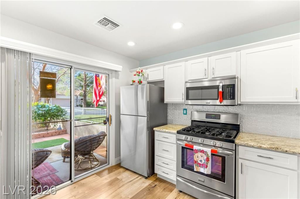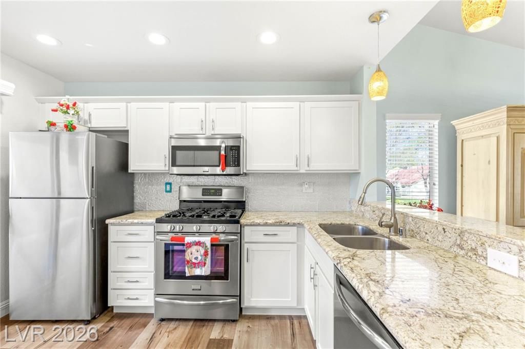 Beautiful townhome in Sun City Summerlin! This highly desirable floor plan offers a gated front courtyard, a tranquil covered balcony, and a bright open-concept living area ideal for both everyday living and entertaining. Additional highlights include a separate laundry room and spacious, well-appointed bedrooms, providing comfort, functionality, and ease of living throughout the home. The stunning kitchen serves as the heart of the home, complemented by upgraded flooring and vaulted ceilings that create a bright, open atmosphere. Enjoy the exceptional lifestyle Sun City Summerlin is known for, with world-class amenities, golf, recreation, and social activities just moments away.