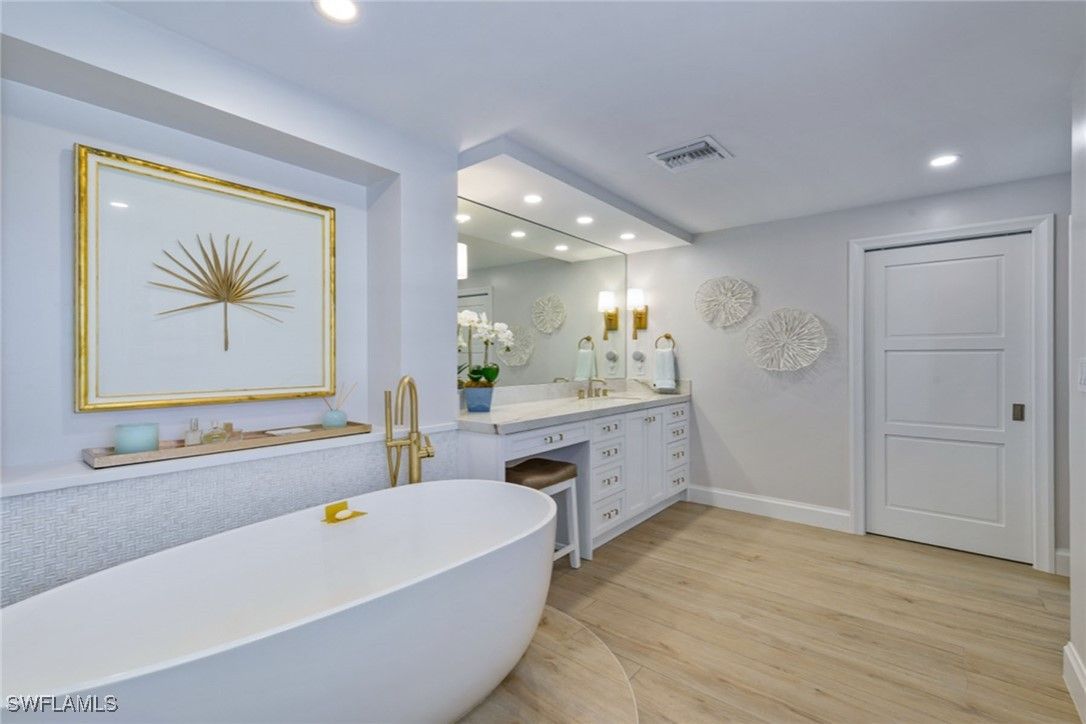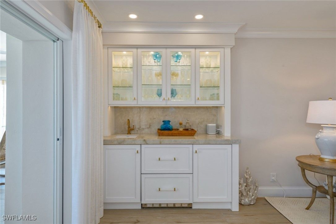 Every detail of this Westgate condominium has been thoughtfully reimagined, seamlessly blending luxury, comfort and coastal charm. This redesigned home offers an effortless beachfront lifestyle in the heart of the Moorings. Positioned on the seventh floor of the north building, experience a glistening Gulf and sunrise-to-sunset view. The stunning kitchen is equipped with Monogram appliances, a wine cooler, quartz countertops, ample storage space, a quartzite island doubling as a dining table, under-cabinet lighting and a filtered water system. Additional highlights include porcelain tile throughout, a laundry room with commercial-grade appliances, a wet bar featuring porcelain countertops and water filtration, and an all-new wiring, plumbing and HVAC system. The main suite offers Gulf views, enclosed balcony access and custom dual closets. Its spa-inspired primary bath invites relaxation with a soaking tub, porcelain slab shower, heated towel racks and a view of the Gulf. Have peace of mind with electric hurricane shutters, under-building parking, secured entry and on-site management. Westgate’s boutique setting includes only 24 residences per building, a large pool and deck with an outdoor grilling area, social room, fitness center, a serene sunset deck near the sand, two guest suites, bike storage, kayak and paddleboard storage, and vehicle wash area. Enjoy being just minutes from top-tier shopping and dining at Venetian Village, Waterside Shoppes, 5th Avenue South and 3rd Street South.