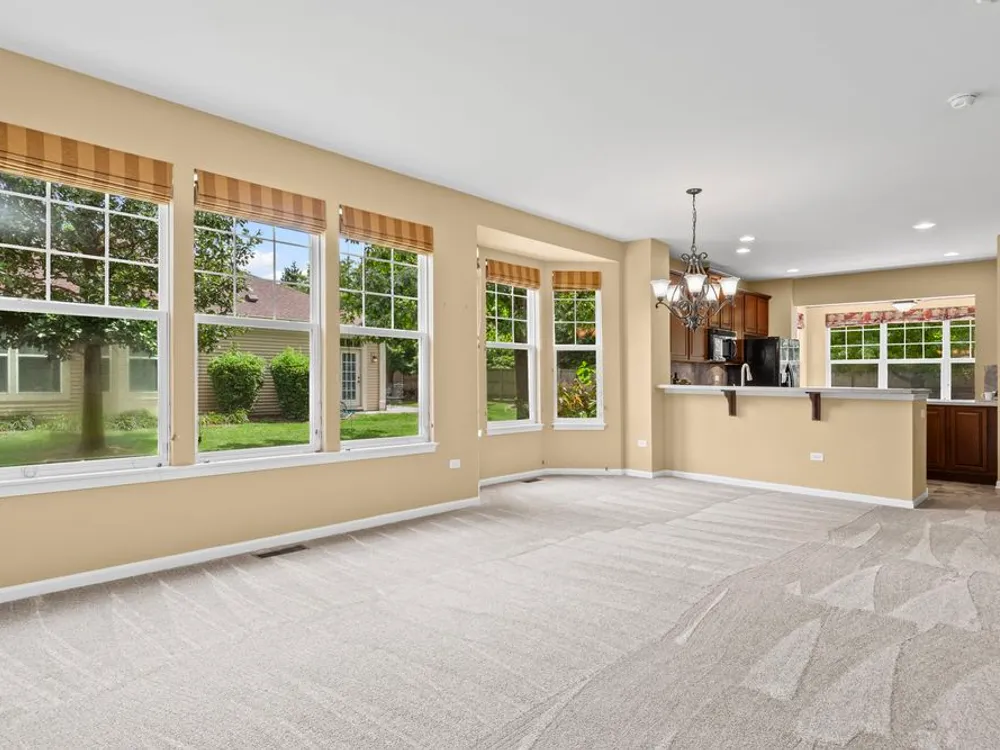 Your Wait is Over ... 'PALMER' RANCH + FULL BASEMENT @ the Prestigious 55+ Active Adult Resort Community of CARILLON CLUB NAPERVILLE is Here! This HIGHLY DESIRED & RARELY AVAILABLE Maintenance Free Townhome Spans 1885 sq ft of Convenient Main Level Living & Just Steps to the Coveted Clubhouse! Featuring 3 True Bedrooms with CUSTOM ADJUSTABLE 'Elfa Shelving' - 2 Full Bathrooms, Open & Flexible Floor Plan, an Abundance of Windows + Storage Galore at your fingertips on the Main Level or in the Full Basement with Rough-In! The Well-Designed Kitchen is like No Other, Featuring Neutral & Timeless Corian Countertops, Custom Peninsula, Warm Cabinetry including Crown Overlay, Recessed Lighting, Bright Sun Room or Breakfast Room Overlooking the Private Outdoor Space & an Elevated Breakfast Bar that doubles as a Great Serving Spot while Entertaining Many Guests - This Custom Kitchen is Open to your Formal Dining Room & Spacious Living Room with 2025 NEW CARPET. Comfortable & Private Primary Ensuite includes Ceiling Fan, 2 Closets & Extra-Large Luxury Bathroom - The 2nd & 3rd Bedrooms & 2nd Full Bathroom are nicely appointed for Overnight Guests, Private Workspace, Crafts ... The Options are Endless!! **2025 SUMP PUMP WITH 1 YR TRANSFERABLE WARRANTY** **2019 WATER HEATER** ! Professional Maintenance Agreement for the HVAC System has been On-Going & All Works Perfectly!! This Model Is the MOST DESIRED ATTACHED HOME IN CARILLON CLUB!! Don't miss your opportunity to own this home with all the upscale amenities you desire. CARILLON CLUB INCLUDES 24 HOUR GUARD/GATED ENTRY, LAWN & SNOW MAINTENANCE, CLUBHOUSE, INDOOR AND OUTDOOR POOLS, OUTDOOR GRANDCHILDREN'S POOL, 3 HOLE GOLF COURSE, WALKING PATHS, PONDS, PLAYGROUND, EXERCISE FACILITY, ACTIVITIES, TRIPS, CLUBS AND SO MUCH MORE .... THIS IS THE LIFE YOU'VE WORKED FOR!!!!