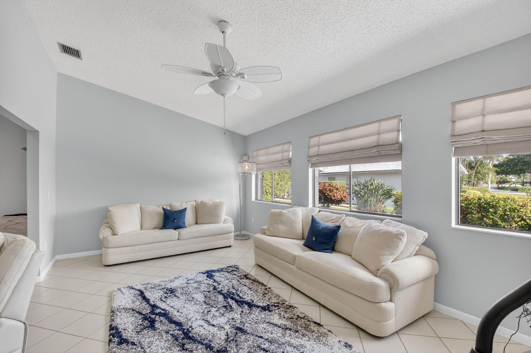 STUNNING UPDATED HOME IN RAINBERRY BAY ESTATE SECTION WITH A BLEND OF COMFORT AND STYLE, 2 BDRM, 2.5 BATHS, FAMILY RM, SCREENED FLORIDA ROOM. INVITING DOUBLE DOOR ENTRY OPENS TO WIDE OPEN LIVING AND DINING ROOM, VOLUME CEILINGS. MASSIVE KITCHEN AMPLE CABINETS, ISLAND FOR ENTERTAINING. SS APPLIANCES, GRANITE COUNTERS. LEADS TO GLASS, SCREENED FLORIDA ROOM, LOOKS OUT TO NEWLY PAVED PATIO FOR RELAXING. SPLIT BDRM FLOORPLAN, WALK IN AND EXTRA CLOSETS, HOUSE TILED THRUGHOUT, SEPARATE LAUNDRY ROOM, ROOF AND GUTTERS 2025. 2 CAR GARAGE WITH STORAGE, CORNER LOCATION PROFESSIONALLY LANDSCAPED. ENJOY FRIENDLY ACTIVE RESORT STYLE LIVING, TENNIS, BOCCE, PICKLEBALL, CLUBHOUSE WITH GYM, 5 POOLS, THEATER WITH ENTERTAIMENT, LAKE WITH WLKING PATH. PERFECT DELRAY BEACH LOCATION, METICULOUS, MOVE IN READY.