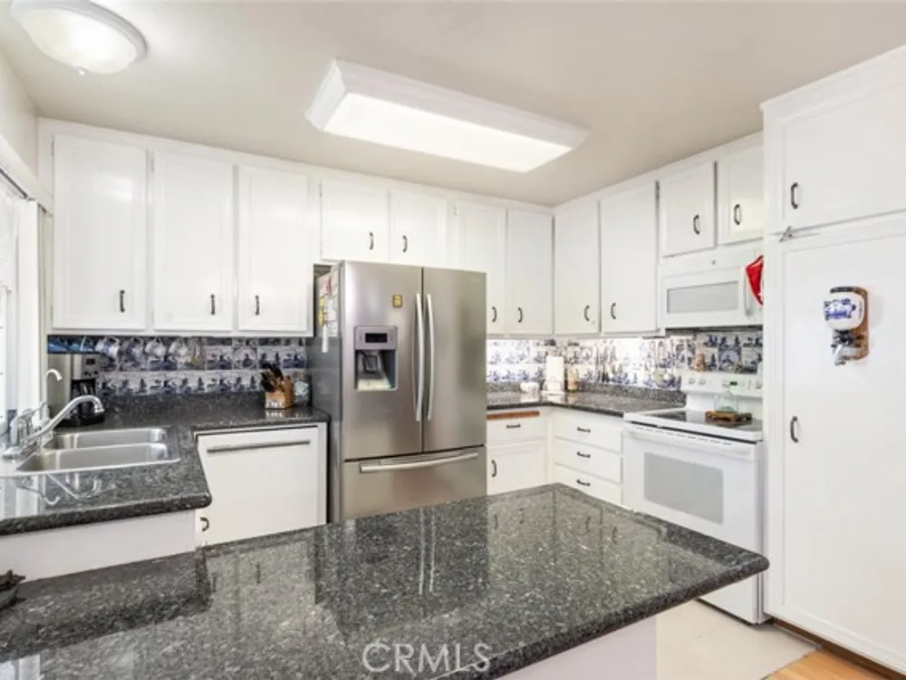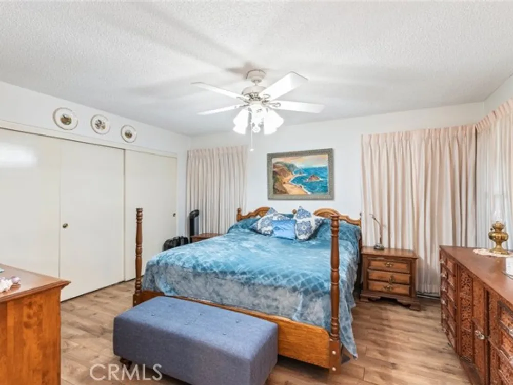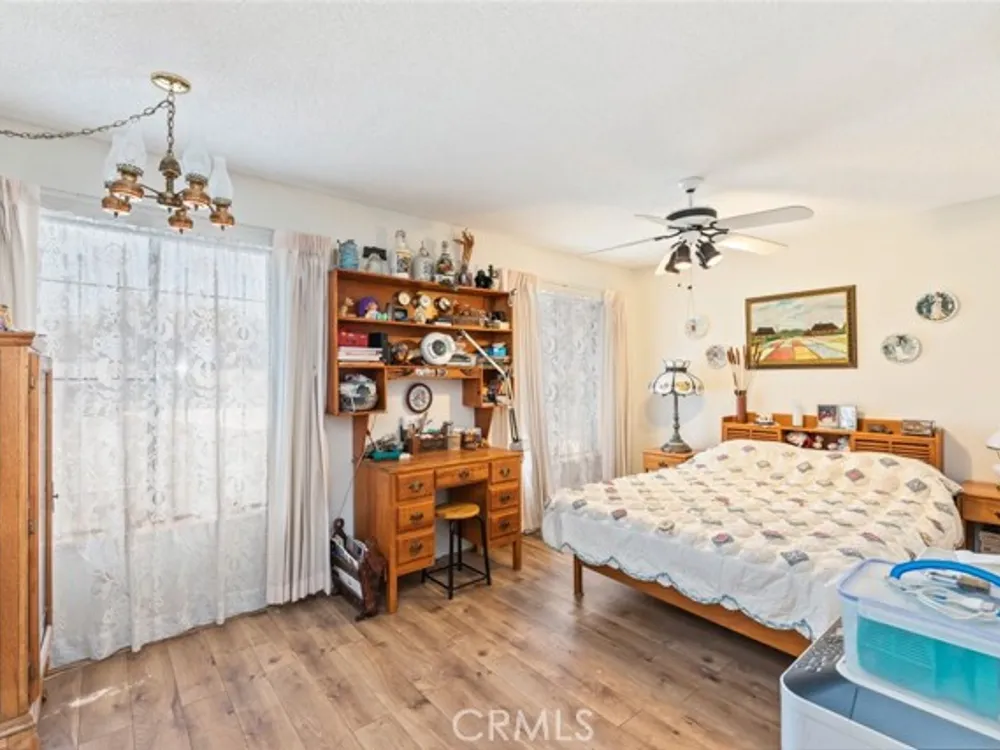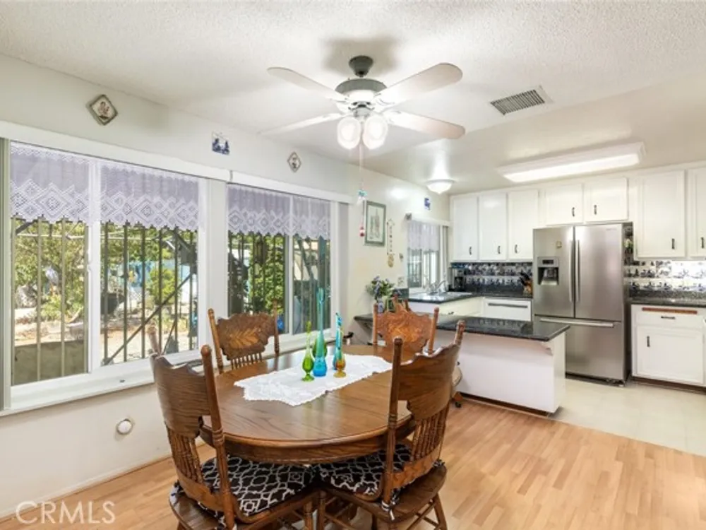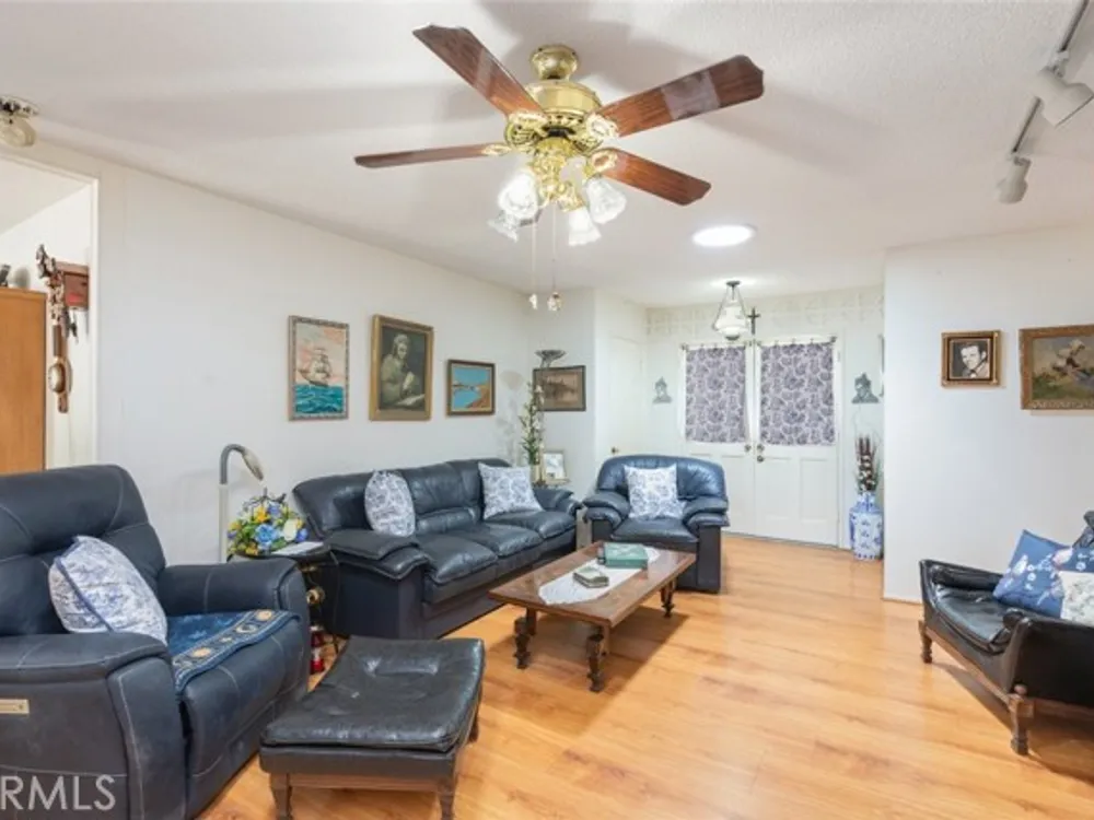 Welcome to this charming 2-bedroom, 2-bath home located in the highly desirable 55+ community of Sun City Civic Association in Menifee featuring gated RV parking, LOW taxes, and LOW HOA. From the moment you arrive, the inviting double-door entry sets the tone for the warm and welcoming atmosphere inside. Step into a thoughtfully designed layout featuring good-sized bedrooms, ample storage throughout, and a light-filled sunroom that extends the living space and creates the perfect spot to relax with a morning cup of coffee or enjoy an afternoon with friends. Beyond the sunroom, a covered patio runs the entire length of the home, offering a seamless transition to the backyard and plenty of space for outdoor dining, entertaining, or simply taking in the fresh air. The kitchen stands out with its striking dark granite countertops, unique tile backsplash, and generous cabinetry, combining both function and style. Vinyl flooring flows throughout the home—meaning no carpet to worry about—while ceiling fans in nearly every room keep the interiors comfortable year-round. The spacious primary suite offers the convenience of an ensuite bathroom, and a private vanity station. Sitting on a large lot, this property also features gated RV parking, a chain-link fence with privacy slats for a