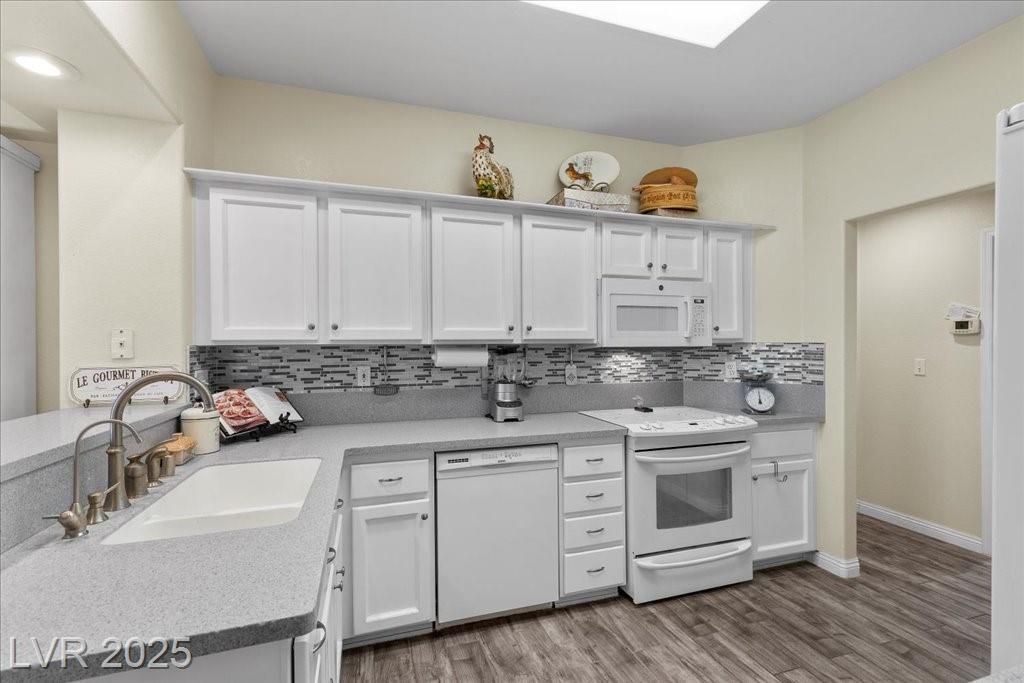 This beautifully maintained 2-bedroom, 2-bath home nestled in the heart of Sun City Summerlin, one of Las Vegas’ premier 55+ active adult communities. Open floor plan with upgraded tile flooring throughout, offering a seamless blend of comfort and elegance. The kitchen features ample cabinet space, a breakfast nook.The primary bedroom suite includes 2 closets walk-in closet and an en-suite bathroom with dual sinks and a walk-in shower, creating a private retreat. The guest bedroom is generously sized, ideal for visitors or a home office. A laundry room with extra storage adds functionality, while the attached two-car garage provides convenience and additional space. Outside, the covered patio and low-maintenance landscaping offer a peaceful setting to relax and enjoy the beautiful desert climate. As part of Sun City Summerlin, residents enjoy world-class amenities, including three championship golf courses and four clubhouses with state-of-the-art fitness center an dso much more.