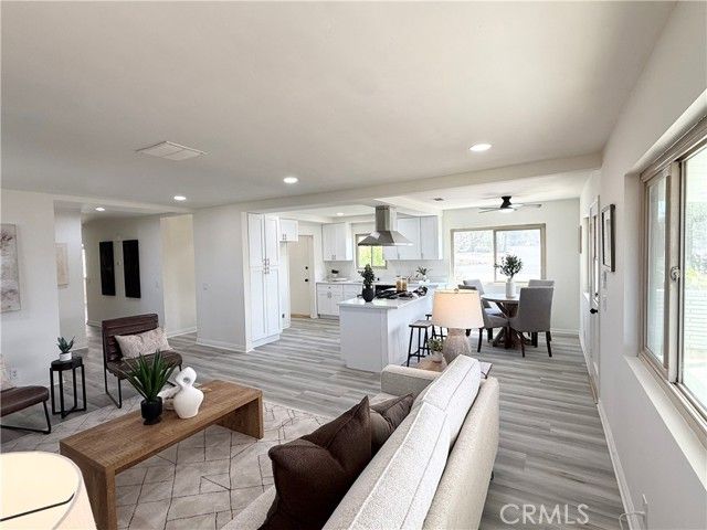 Don't miss out on this unique beautifully fully renovated 55+ single-family home that boasts 3 spacious Bedrooms, 2 full bathrooms with new roof, AC and furnace. Upon entry you will be greeted with a beautifully modernized updated very open floorplan that offers new laminate/wood flooring, new paint and baseboards throughout the entire house along filled with natural lighting thanks to new well-placed double pane windows that provide warm and welcoming atmosphere. The well-appointed kitchen opens up to both very spacious living room and dining area creating an ideal space for both relaxation and entertaining. Kitchen also offers all new modern stainless steel energy efficient appliances with new Quartz counter tops and brand-new cabinets that offers plenty of cabinet/pantry space. Enjoy outdoor living in the backyard patio area and take in the serene surroundings! This 55+ community offers many amenities and activities, including a clubhouse, fitness center and community events...also, very low taxes! This home is conveniently located near shopping, dining and medical facilities, and provides easy access to everything Menifee has to offer!